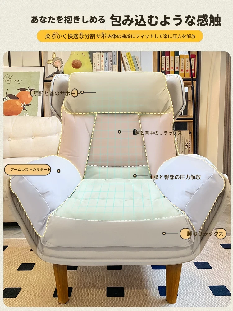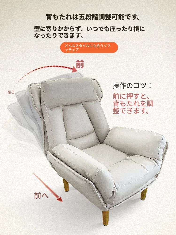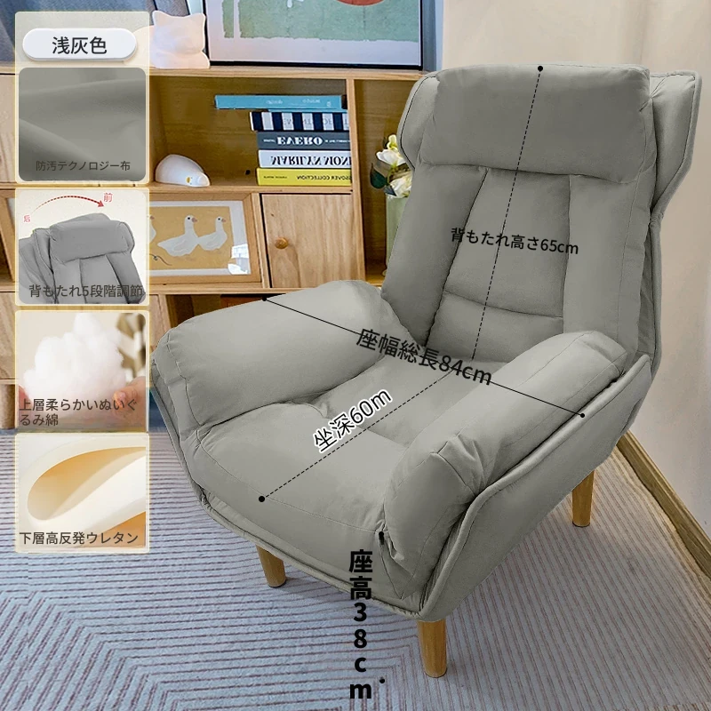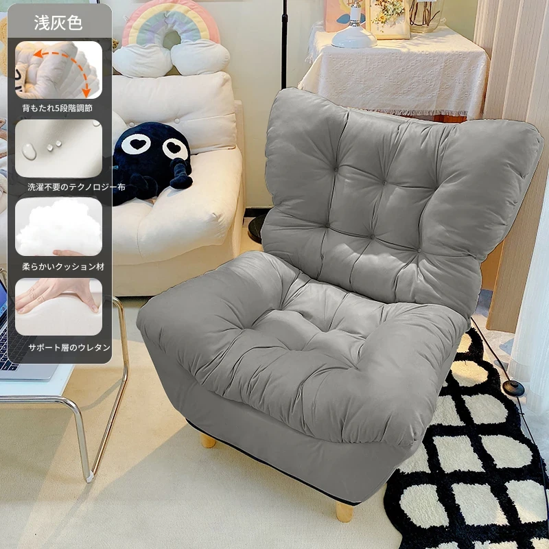 【ダブルレイヤー厚手】ライトグレー—折りたたみ式リクライニングソファチェア