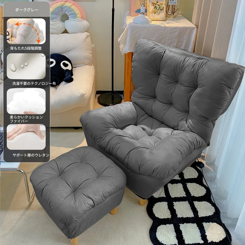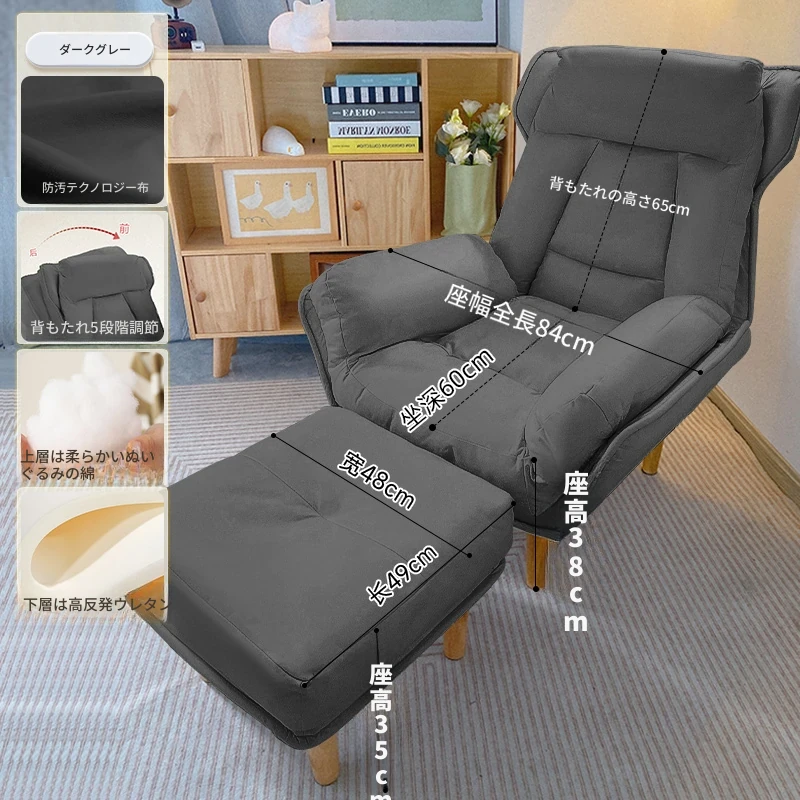 【ダブルレイヤー・厚手】ダークグレー+フットレスト付き—折りたたみリクライニングソファチェア