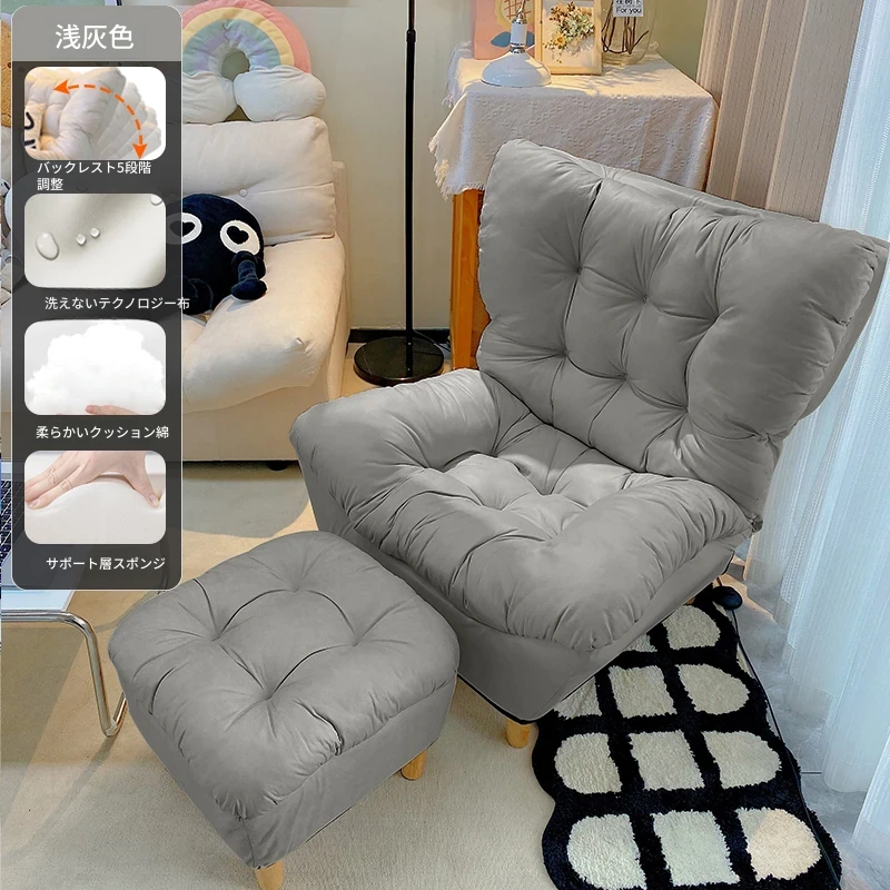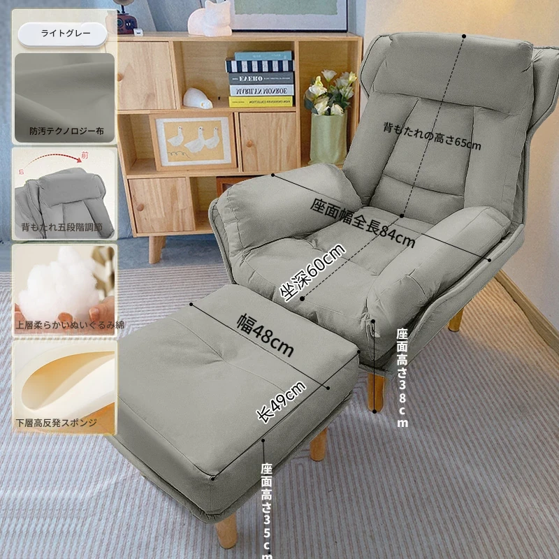 【ダブルレイヤー厚手】ライトグレー+フットレスト付き—折りたたみ式リクライニングソファチェア