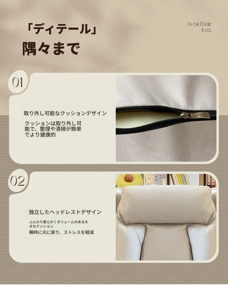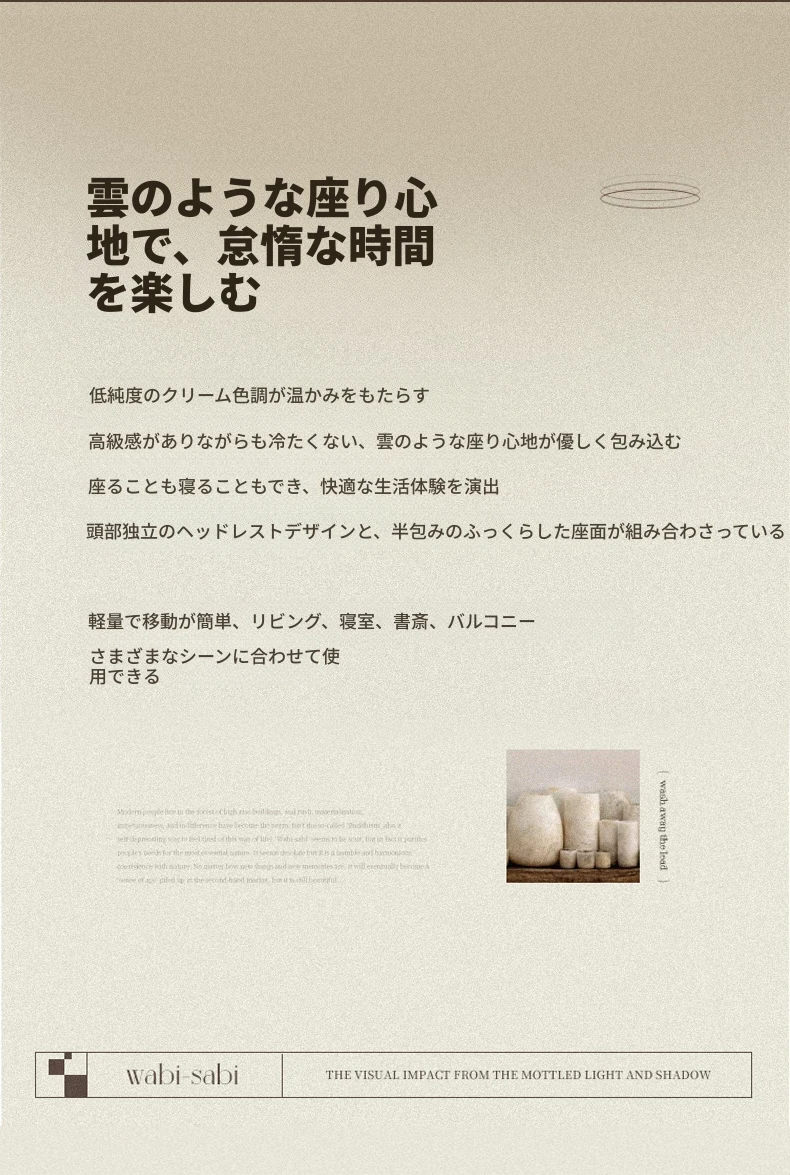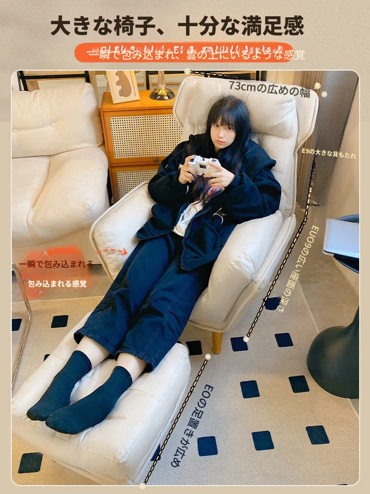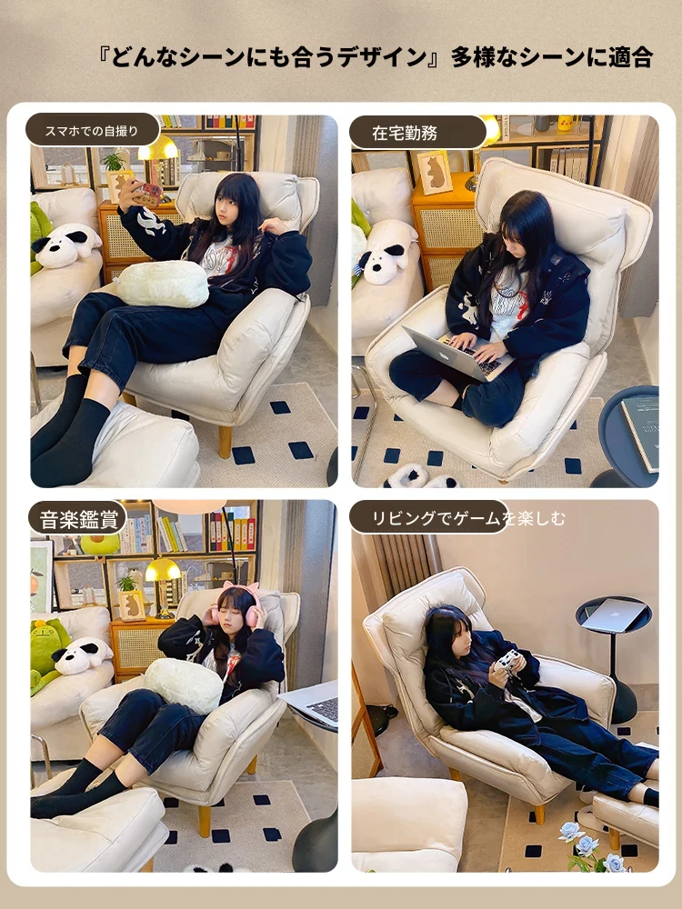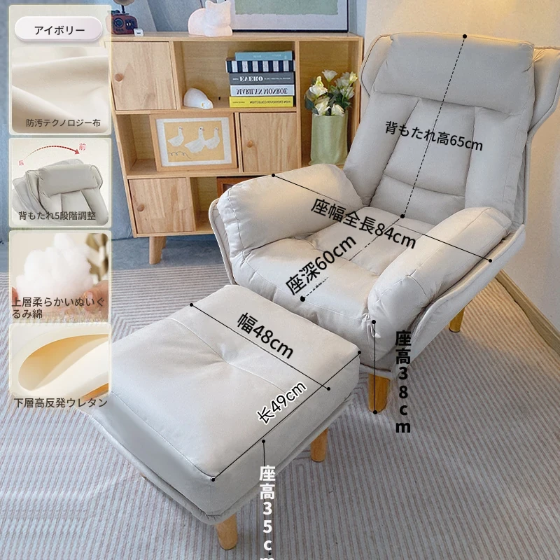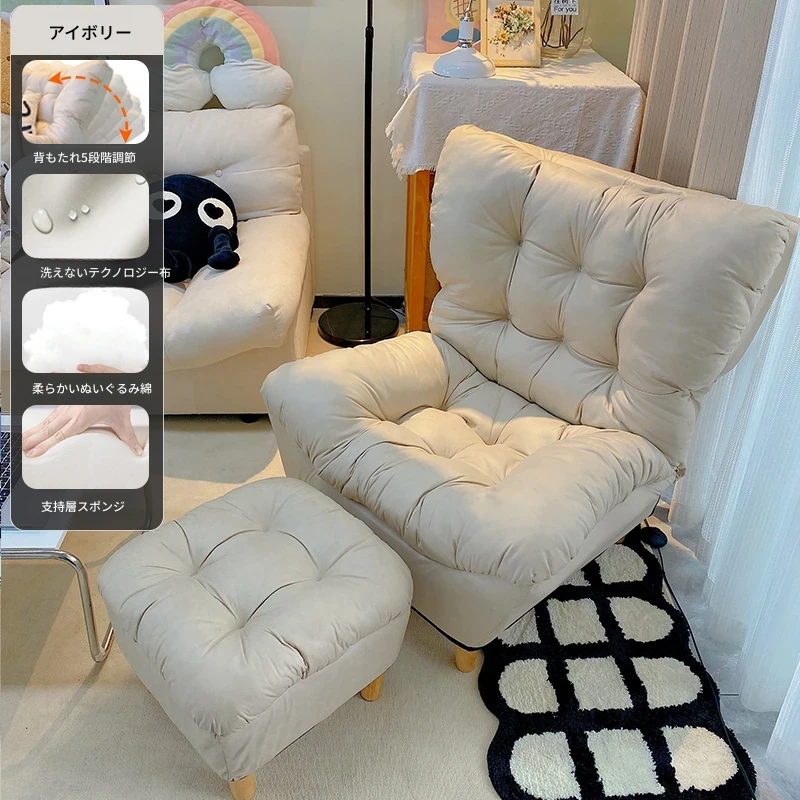 【ダブルレイヤー厚手】アイボリー + フットレスト付き—折りたたみリクライニングソファチェア