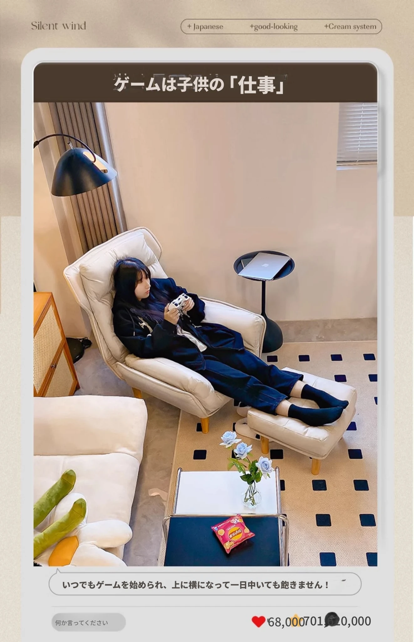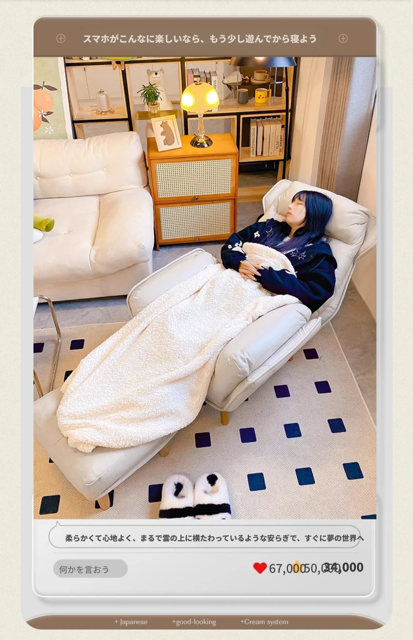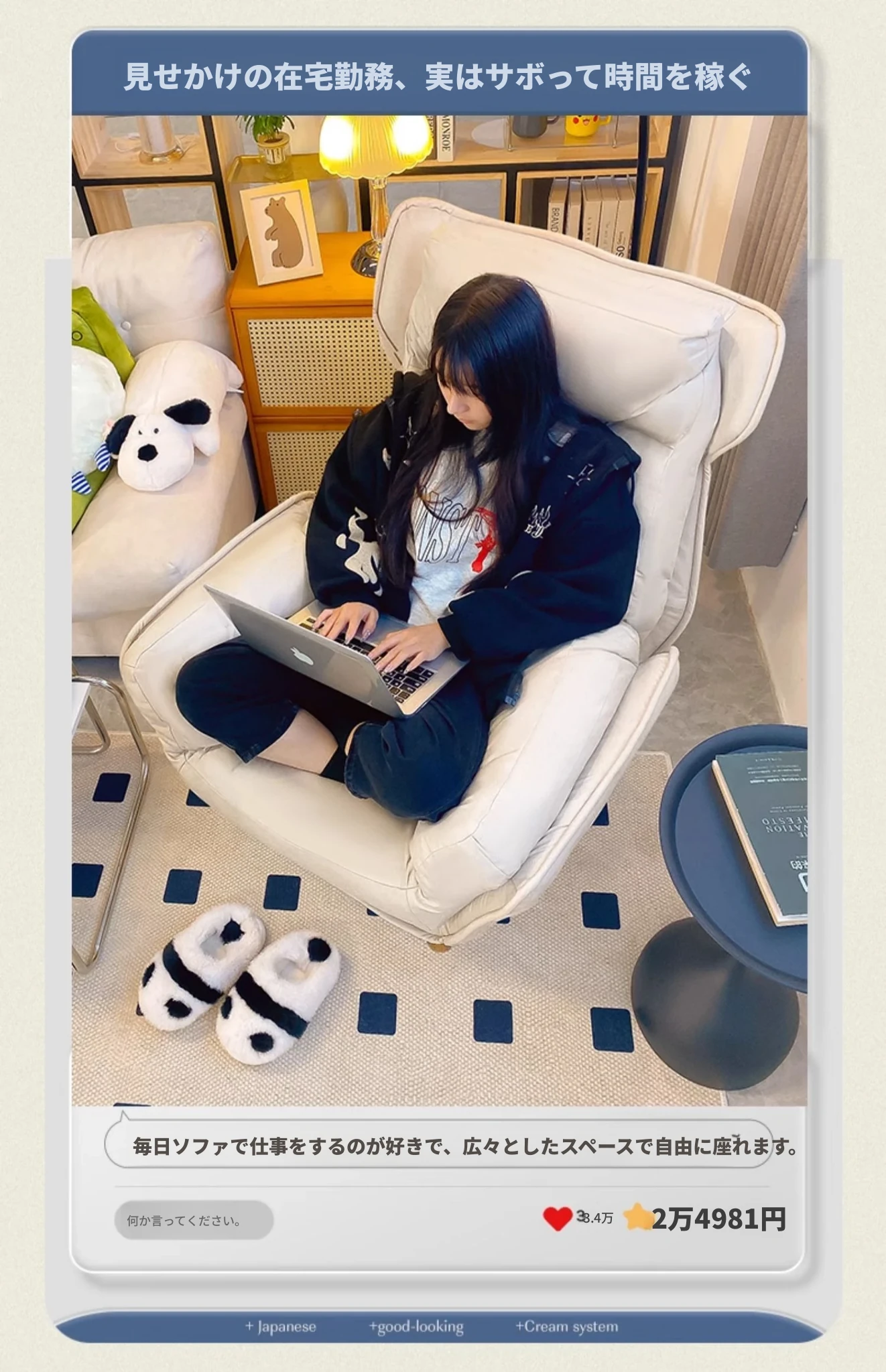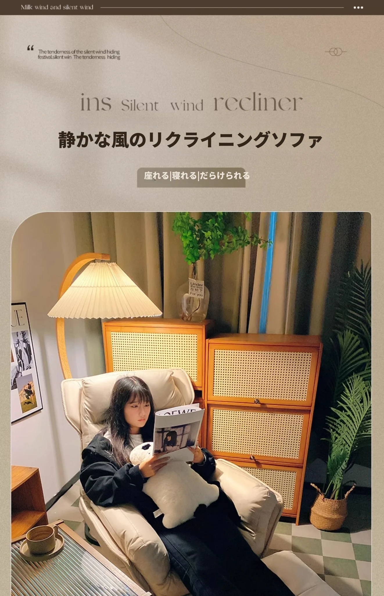 【ダブルレイヤー厚手】アイボリー + フットレスト付き—折りたたみリクライニングソファチェア