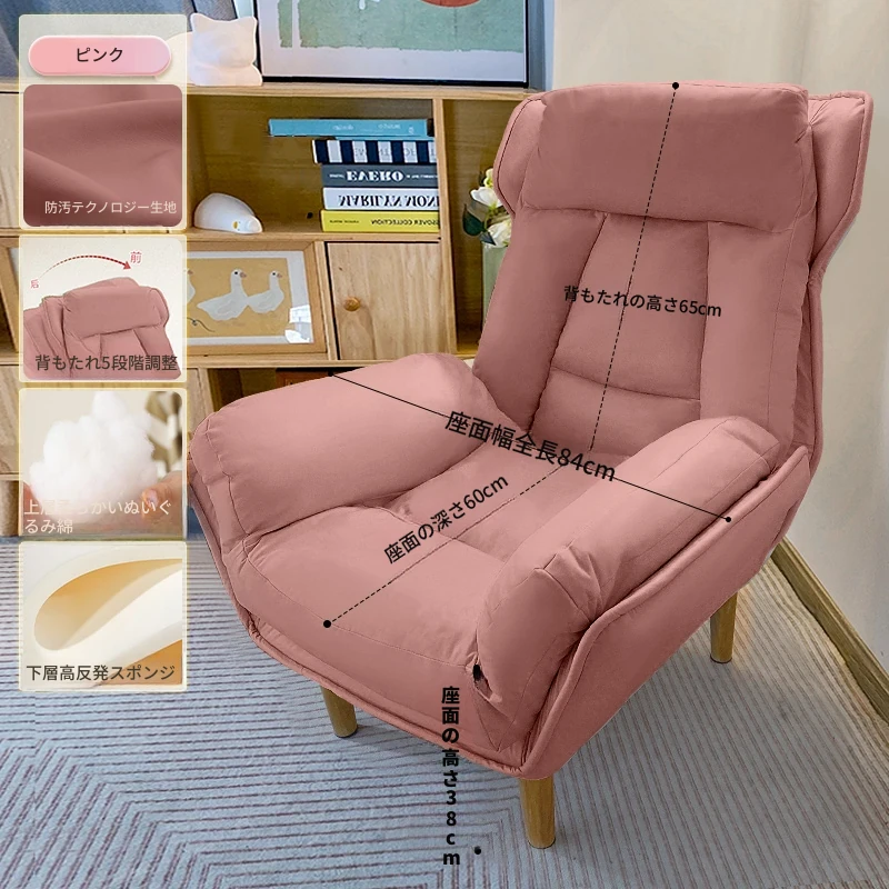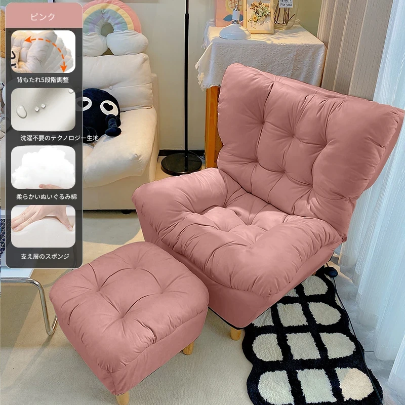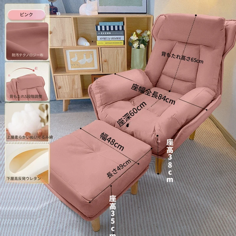 【二重厚手】ピンク+フットレスト—折りたたみリクライニングソファチェア