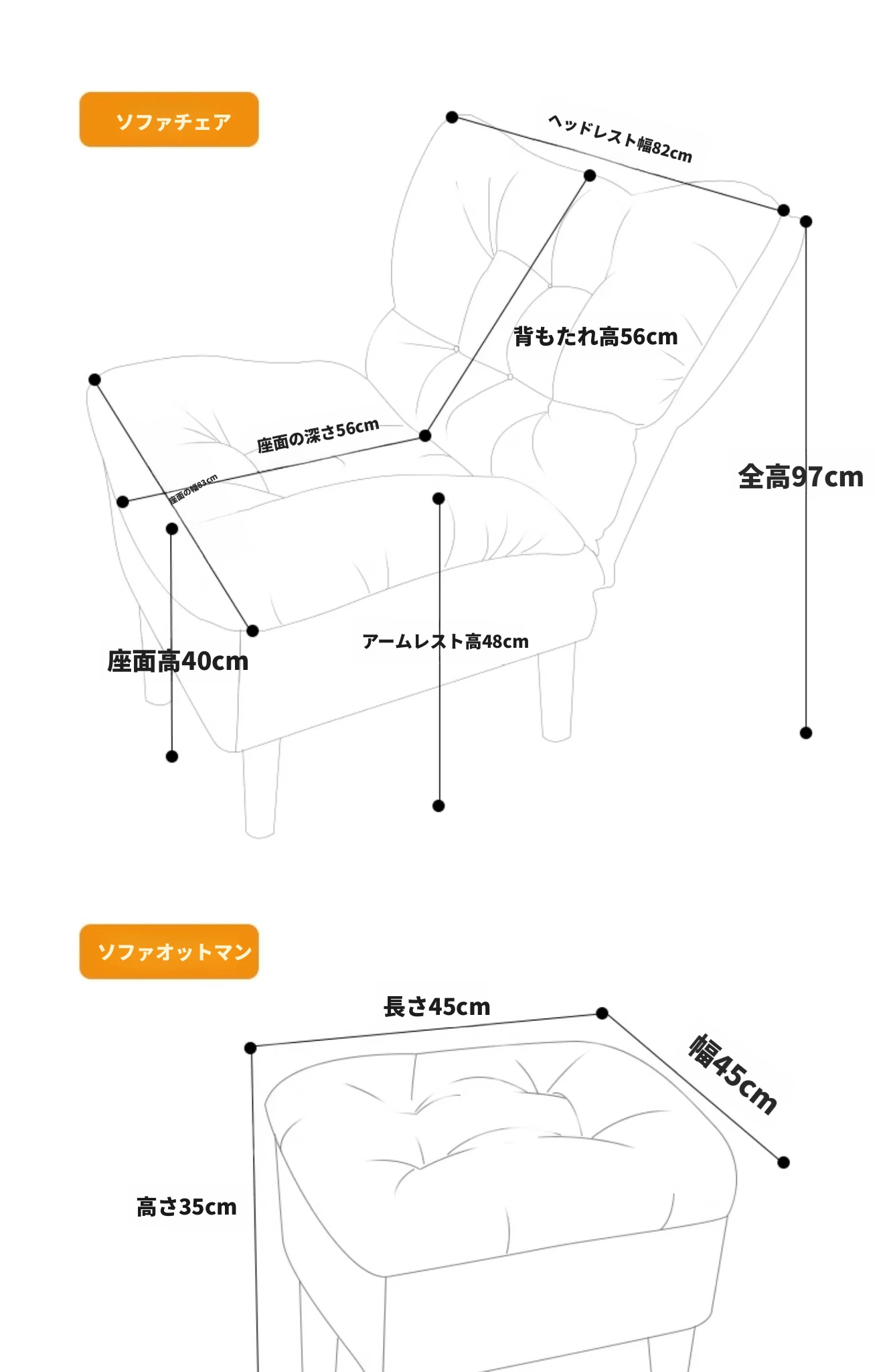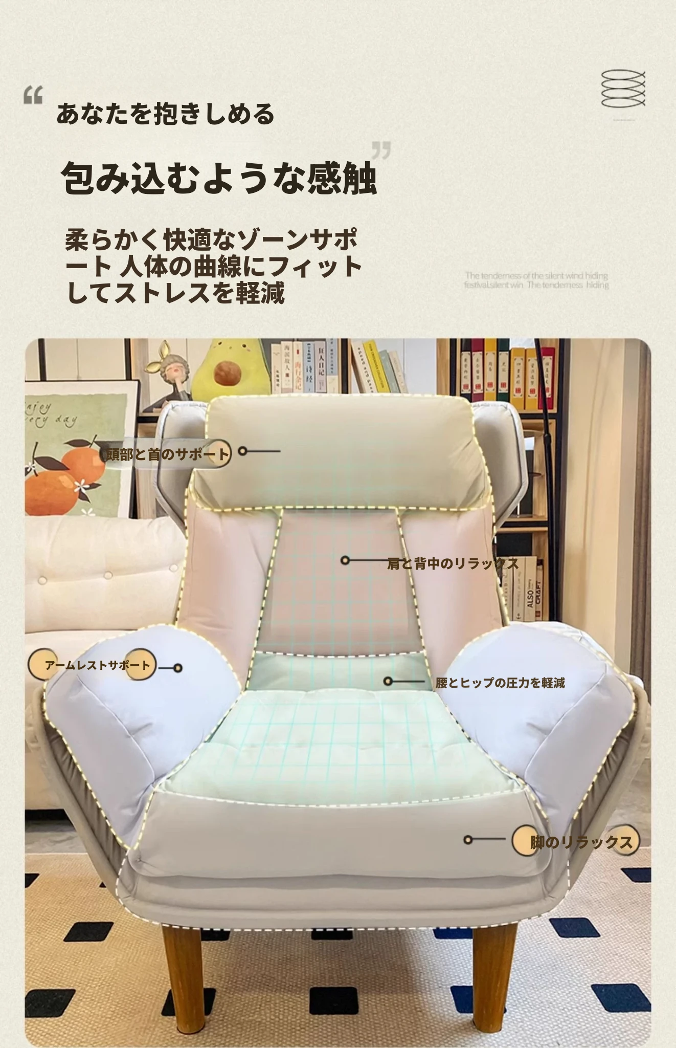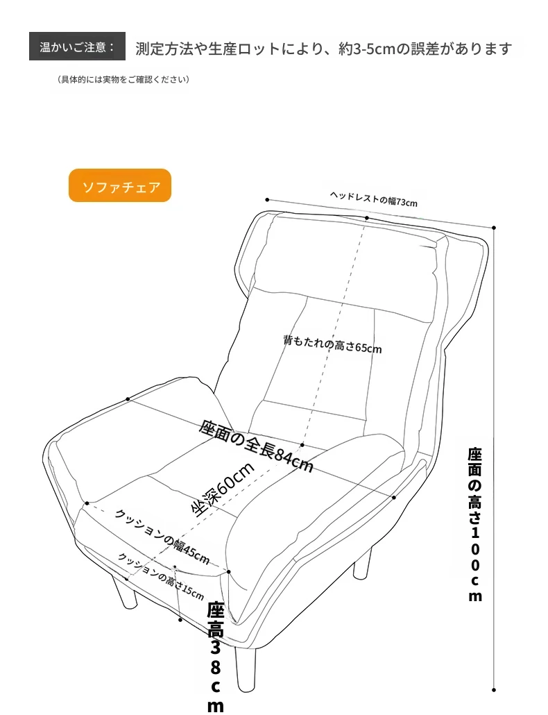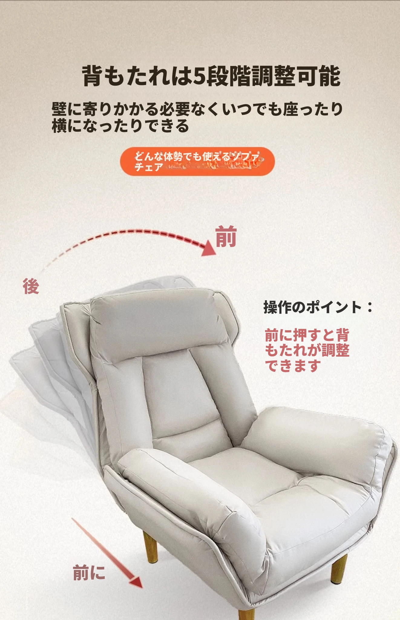 【ダブルレイヤー厚手】アイボリー - 折りたたみ式リクライニングソファチェア