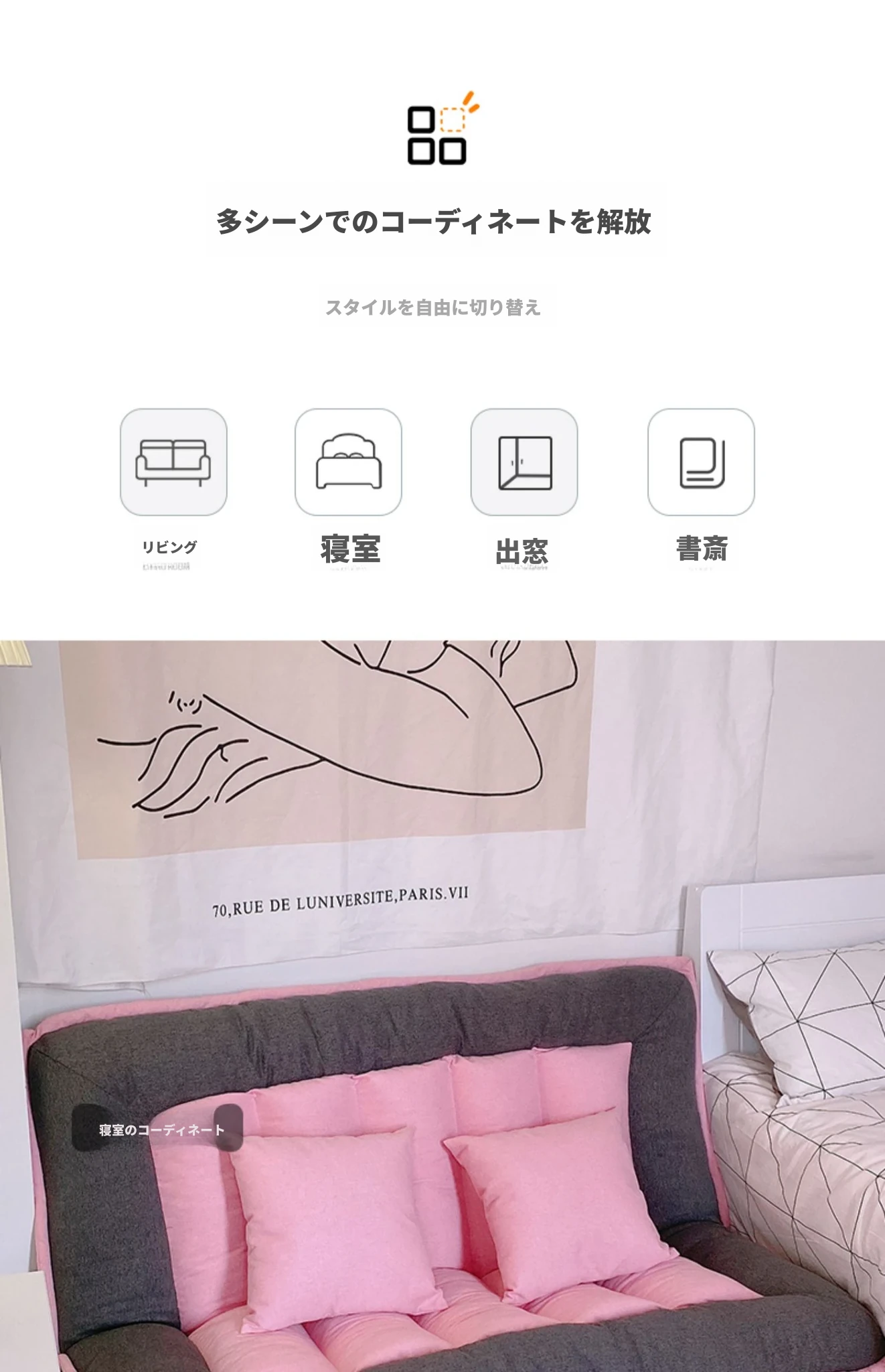 【ビッグタイプ】ピンク×ダークグレー【背もたれ多段階調節】
