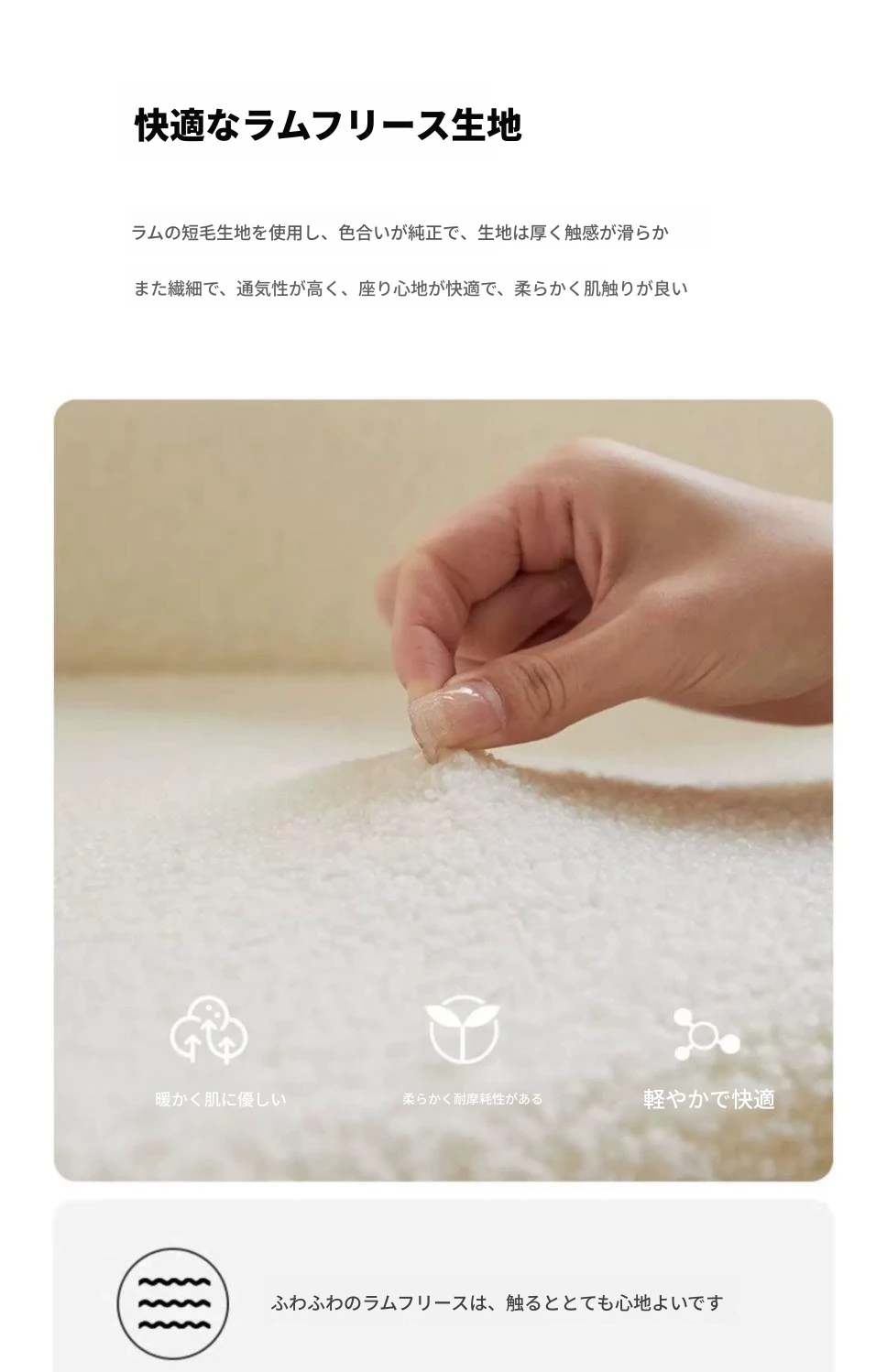 【肌触りの良いラムフリース】アイボリー195CM-抱き枕*2付き