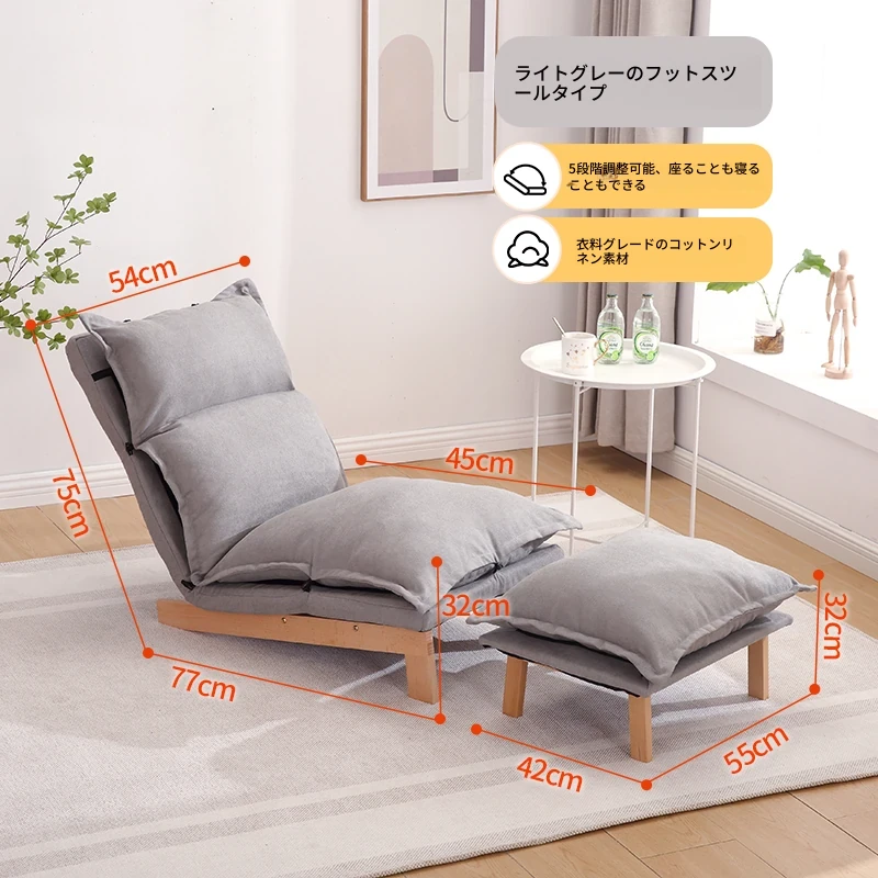 【スタンダード】ライトグレー+フットレスト(背もたれ調整可能) - 三年保証