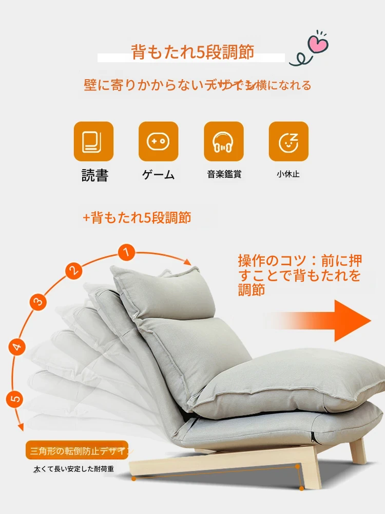 【スタンダード】ライトグレー(背もたれ調整可能) - 三年保証