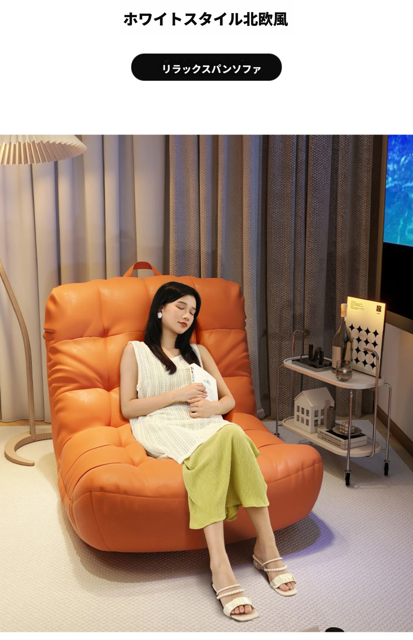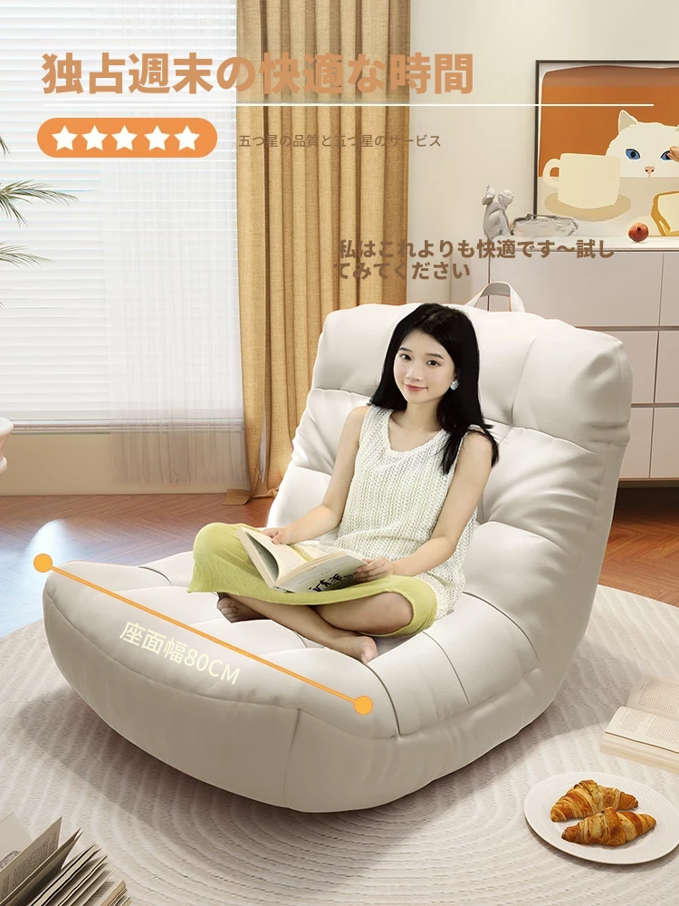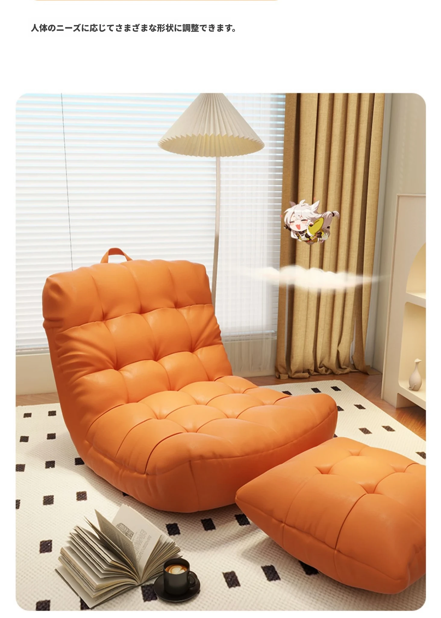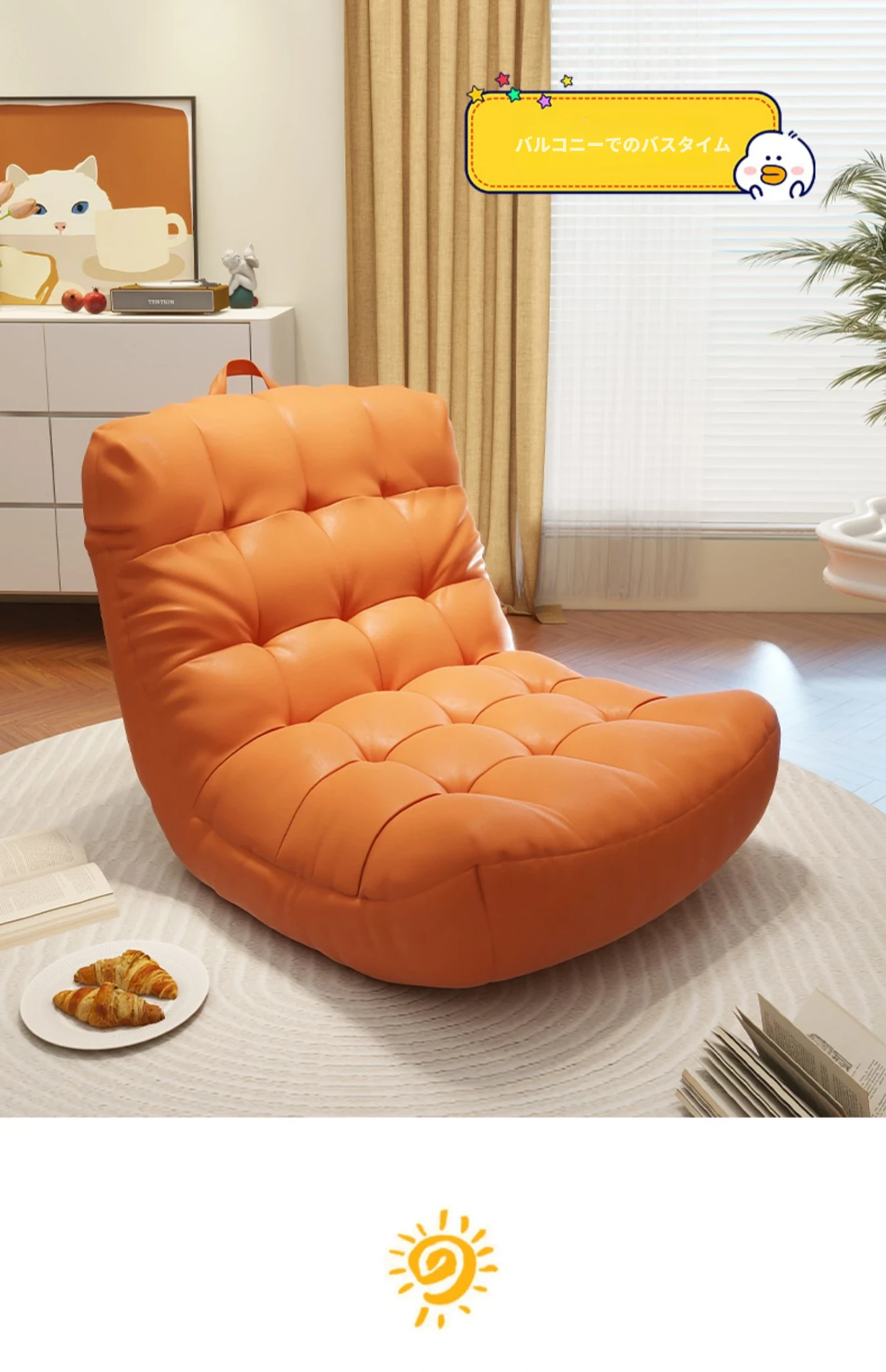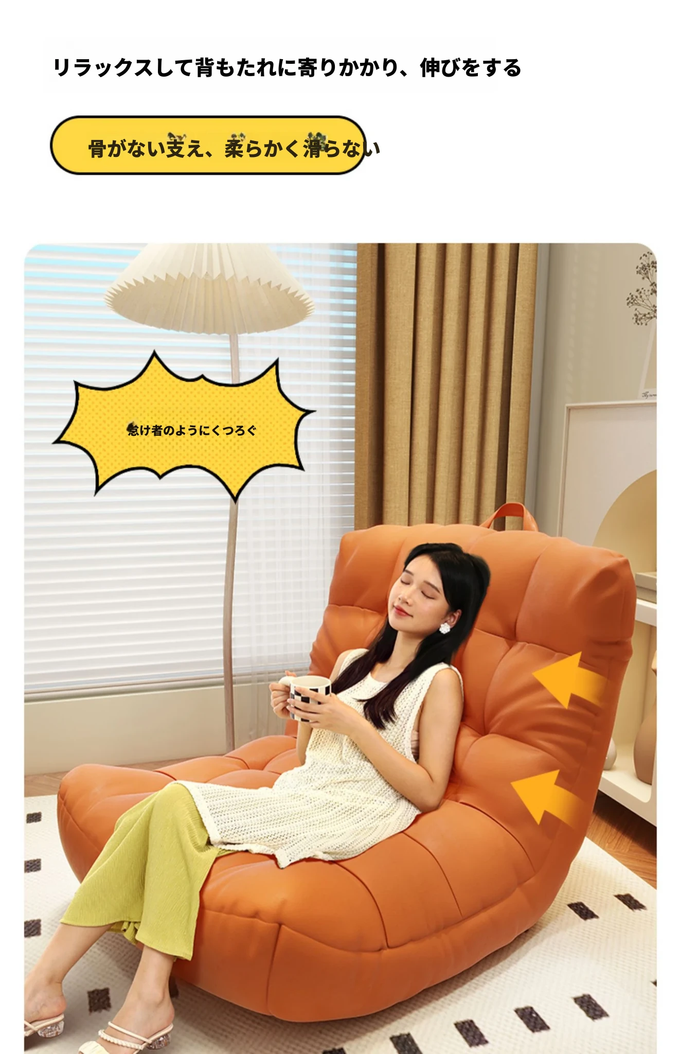 楽々リクライニングソファ|寝ても良し、座っても良し!毛虫デザインのシングルソファ|小さな部屋にぴったり|バルコニーや畳にも最適|快適な背もたれ付きでリラックス空間を演出!