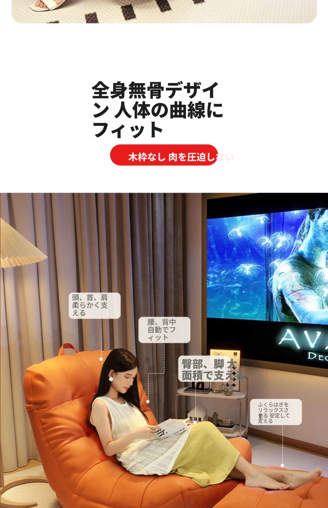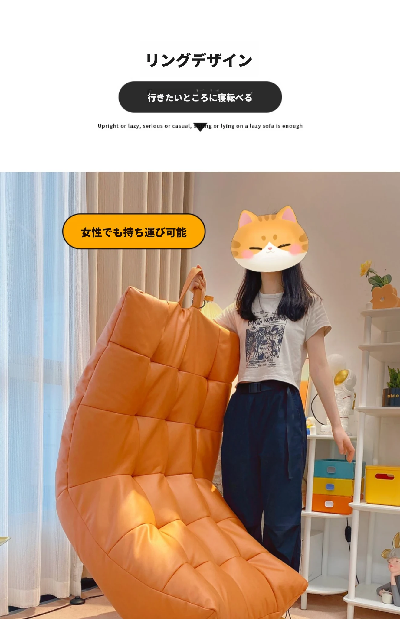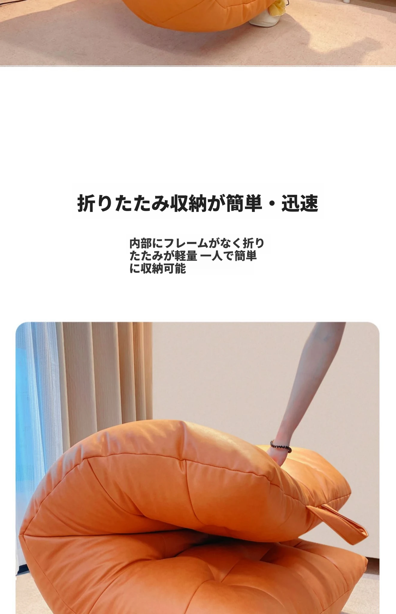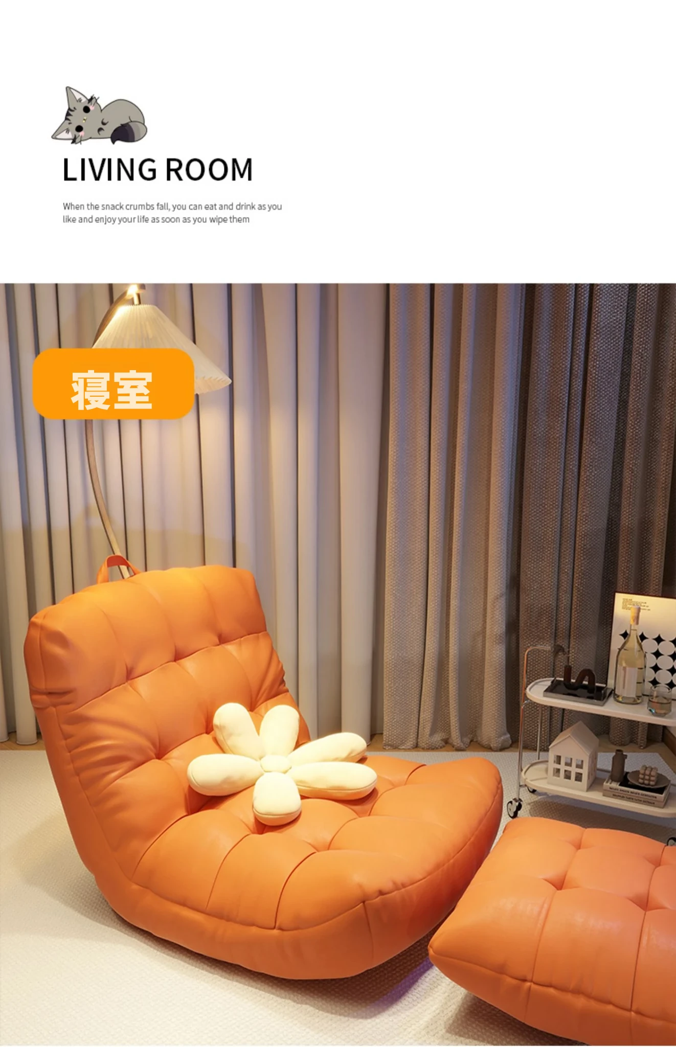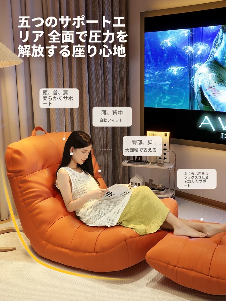 楽々リクライニングソファ|寝ても良し、座っても良し!毛虫デザインのシングルソファ|小さな部屋にぴったり|バルコニーや畳にも最適|快適な背もたれ付きでリラックス空間を演出!