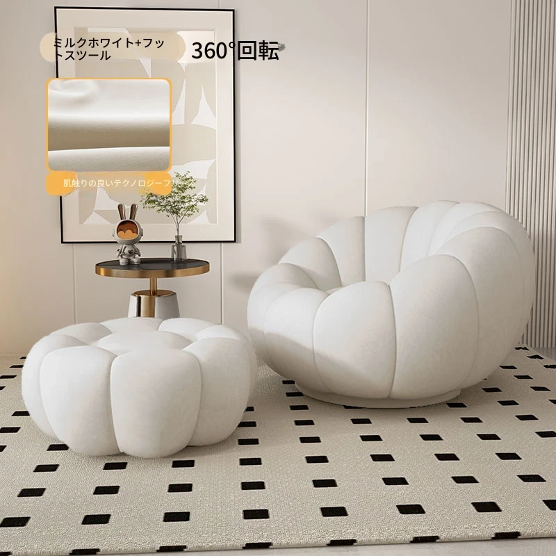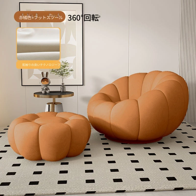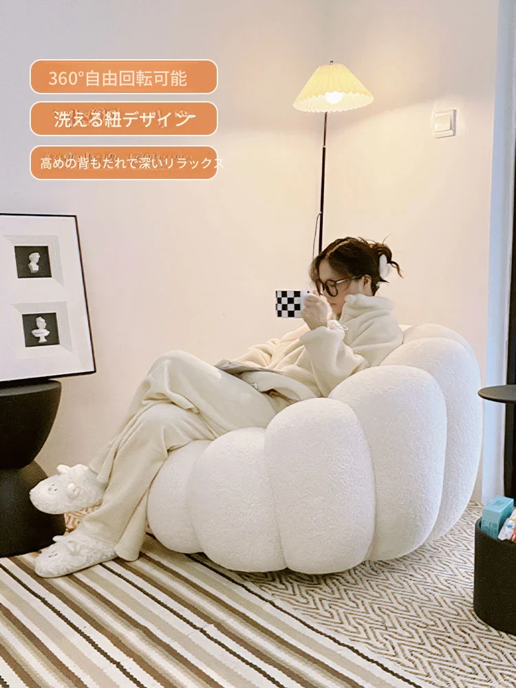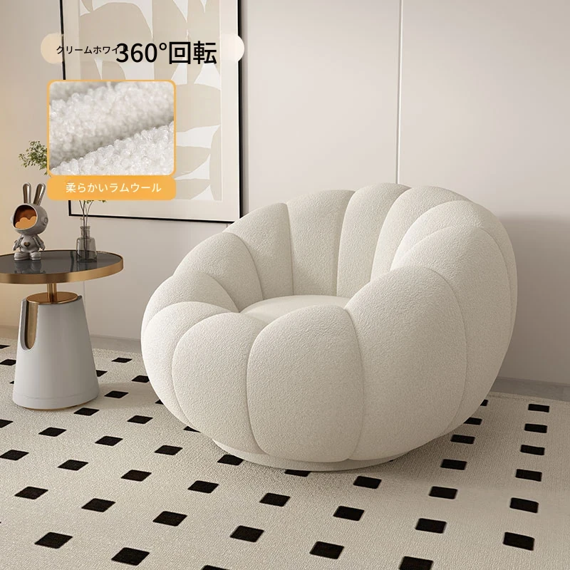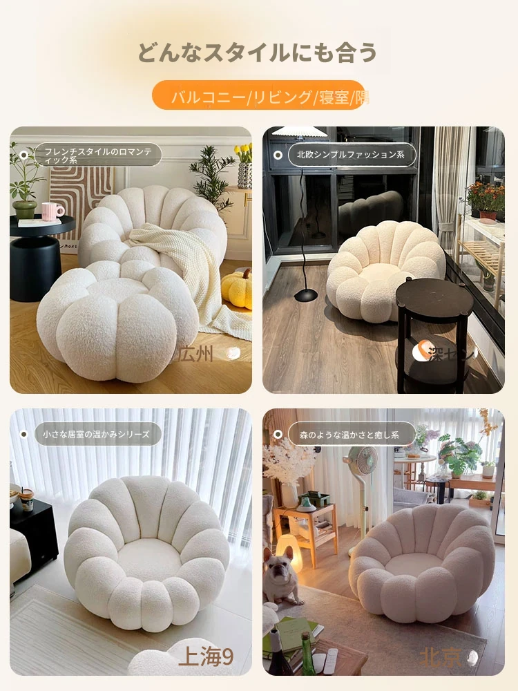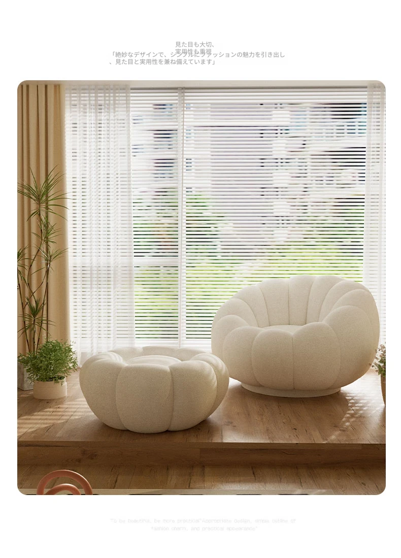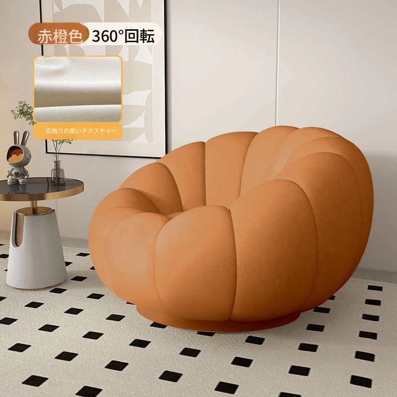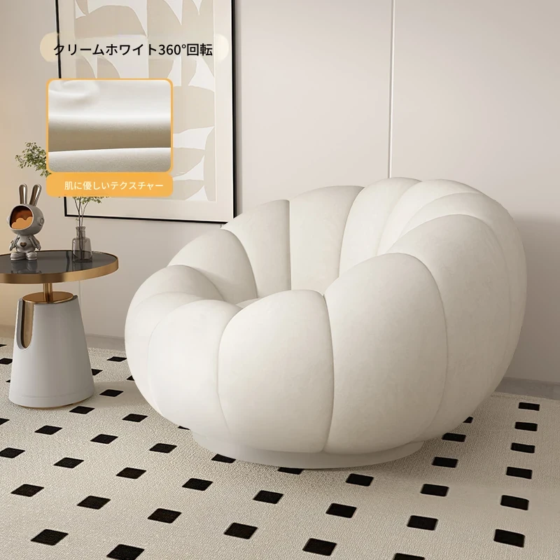 リラックスできる南瓜型ソファ【小型住宅向け】一人用・バルコニーや寝室に最適なクリーム風デザインのカジュアルチェア!快適なひとときをお届けします。