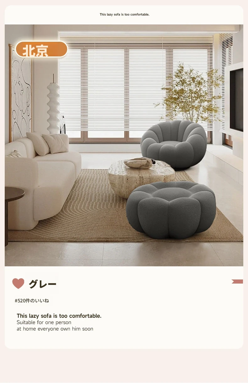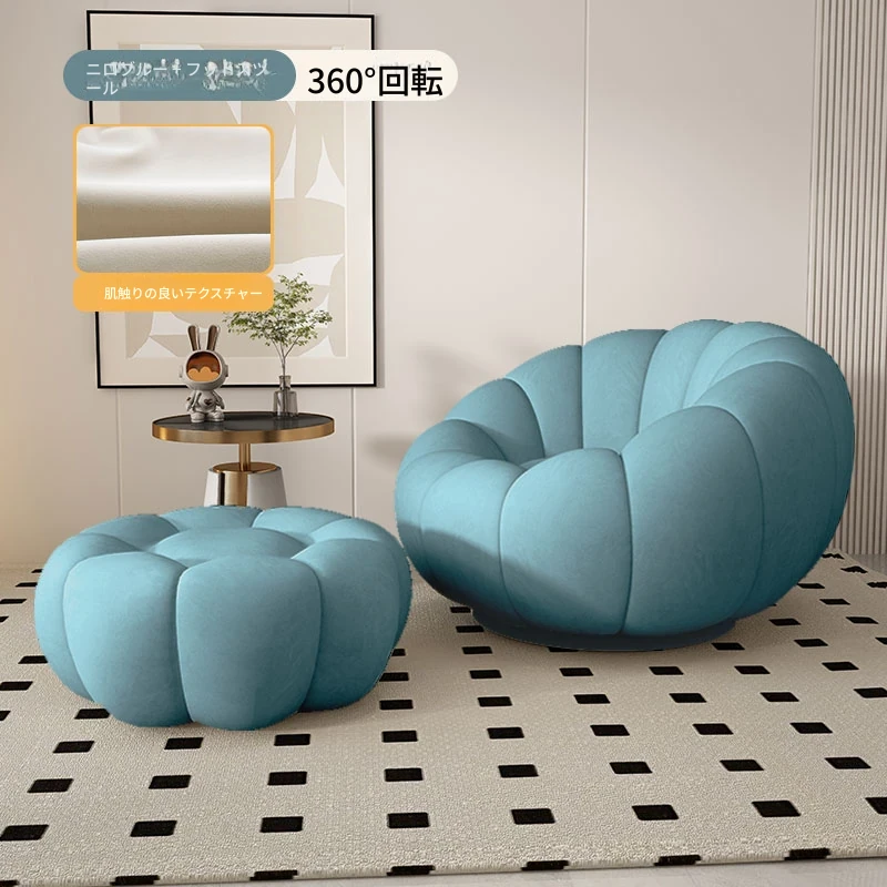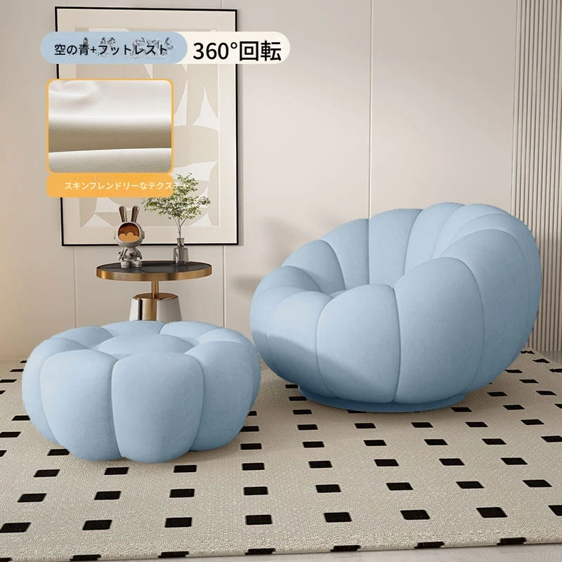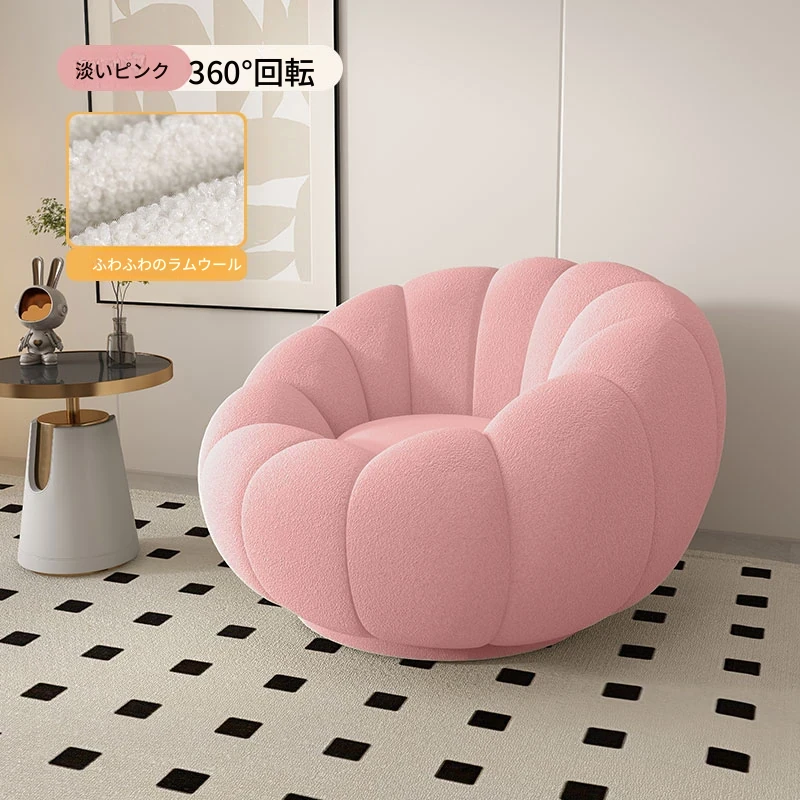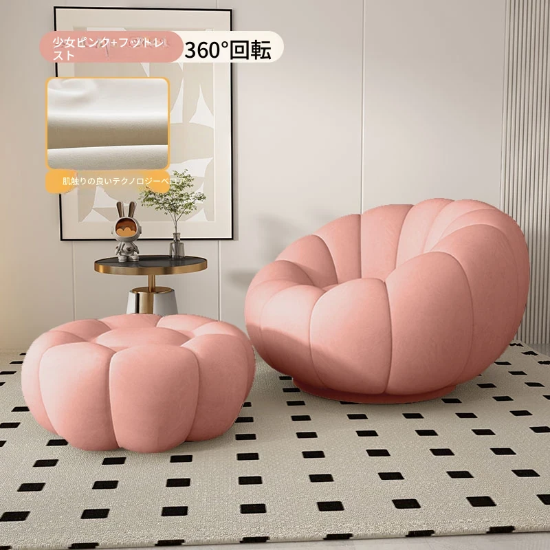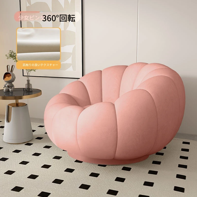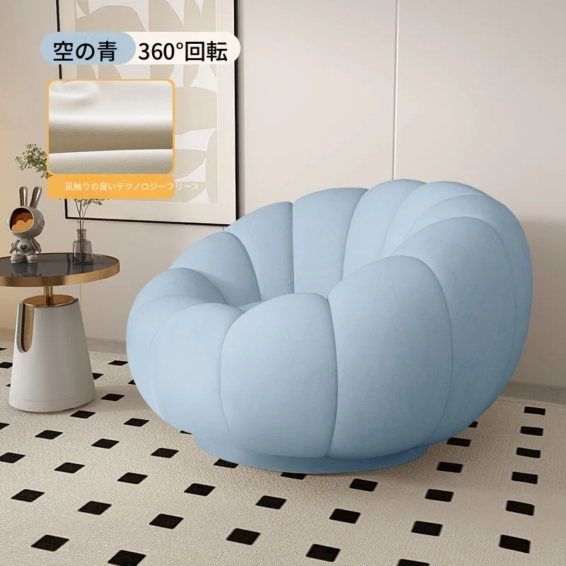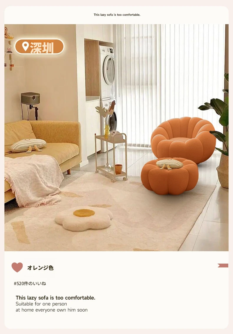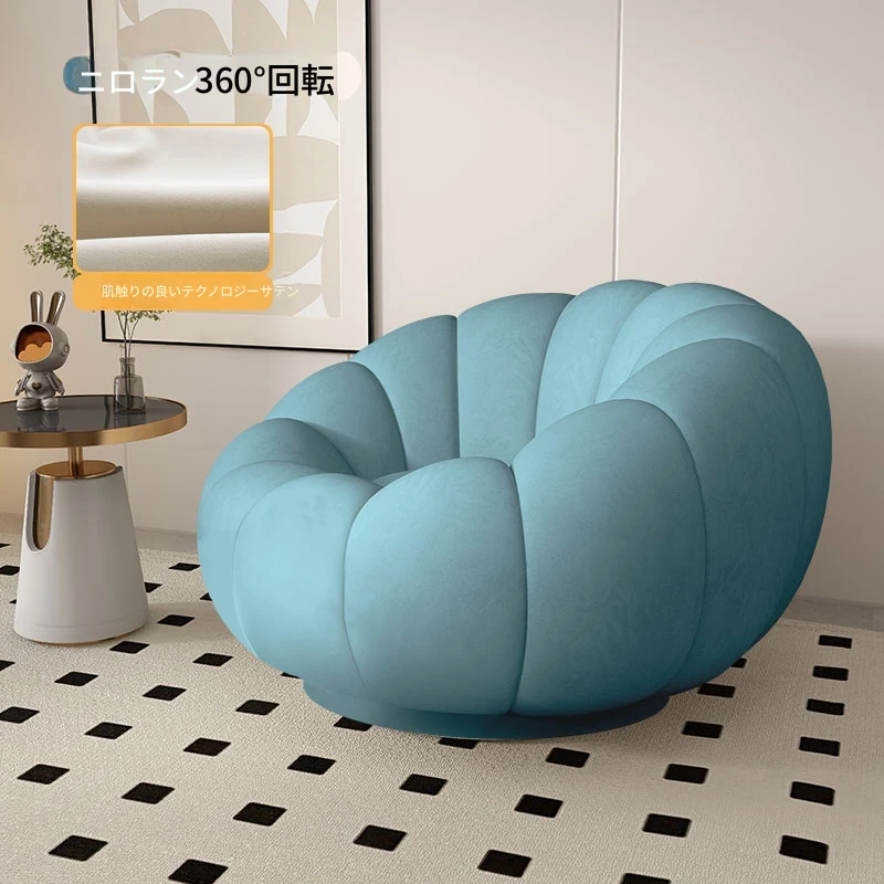 リラックスできる南瓜型ソファ【小型住宅向け】一人用・バルコニーや寝室に最適なクリーム風デザインのカジュアルチェア!快適なひとときをお届けします。