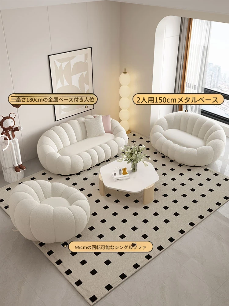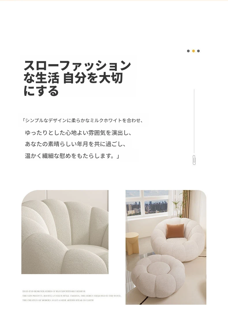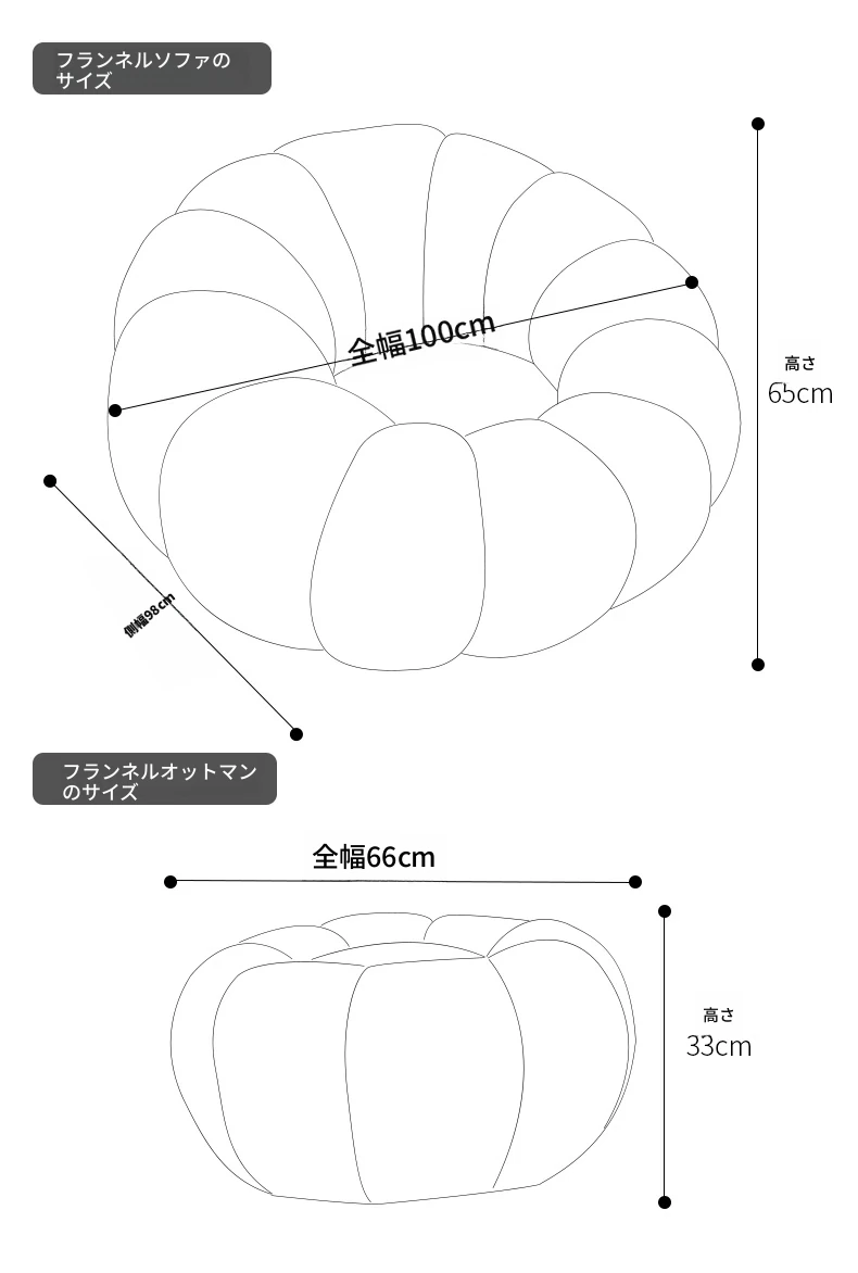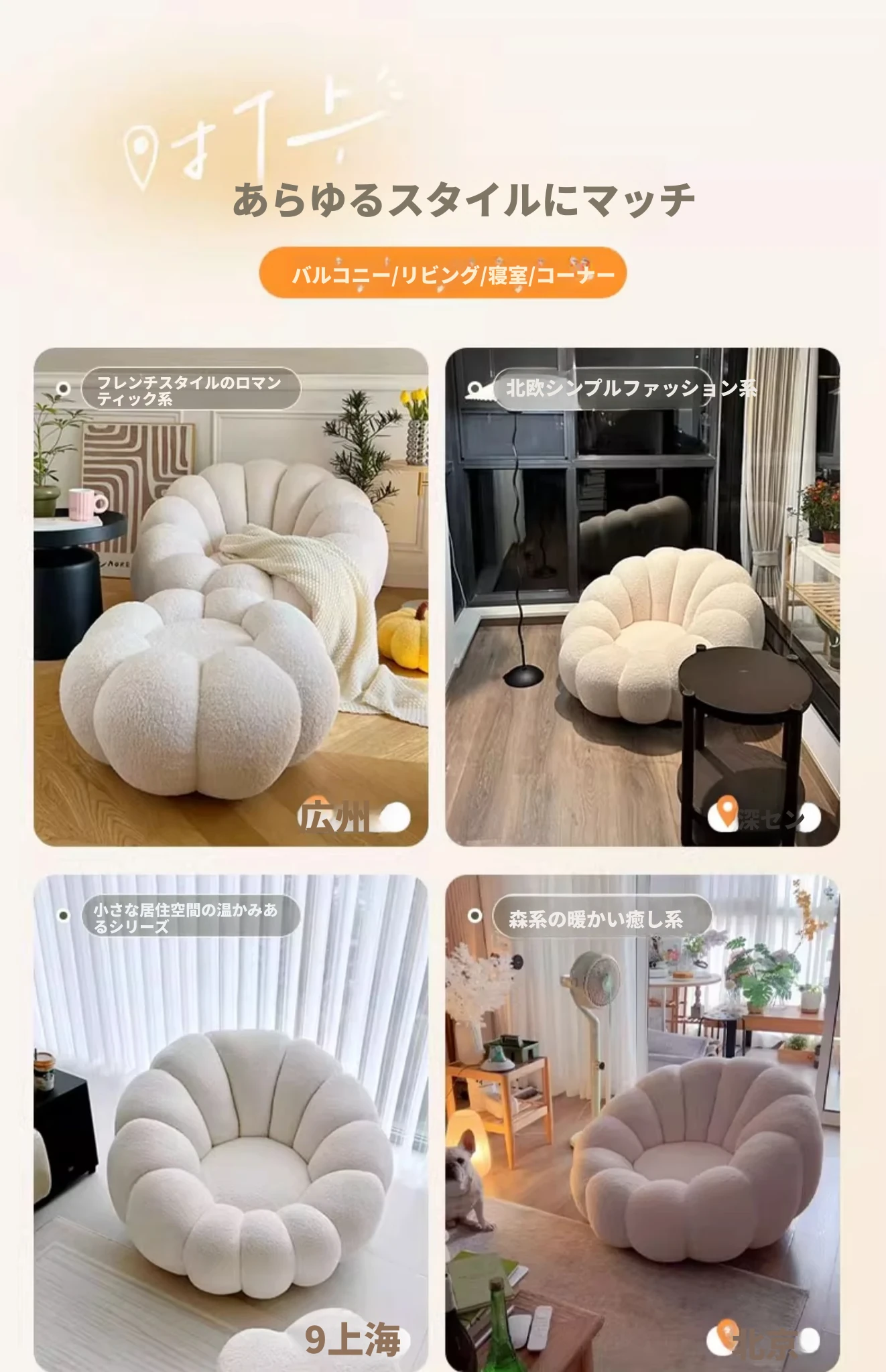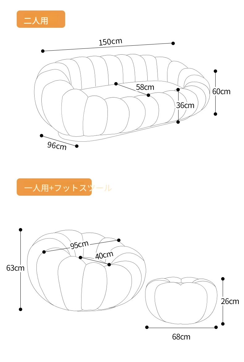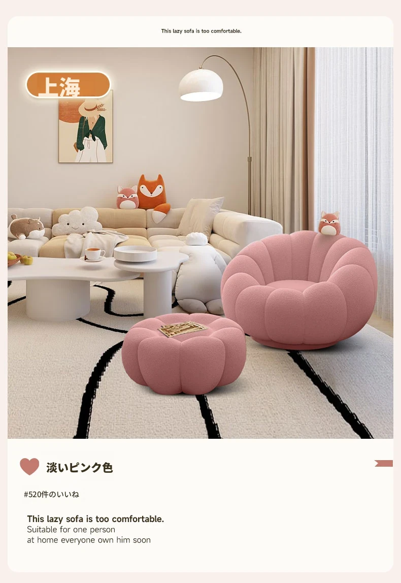 リラックスできる南瓜型ソファ【小型住宅向け】一人用・バルコニーや寝室に最適なクリーム風デザインのカジュアルチェア!快適なひとときをお届けします。