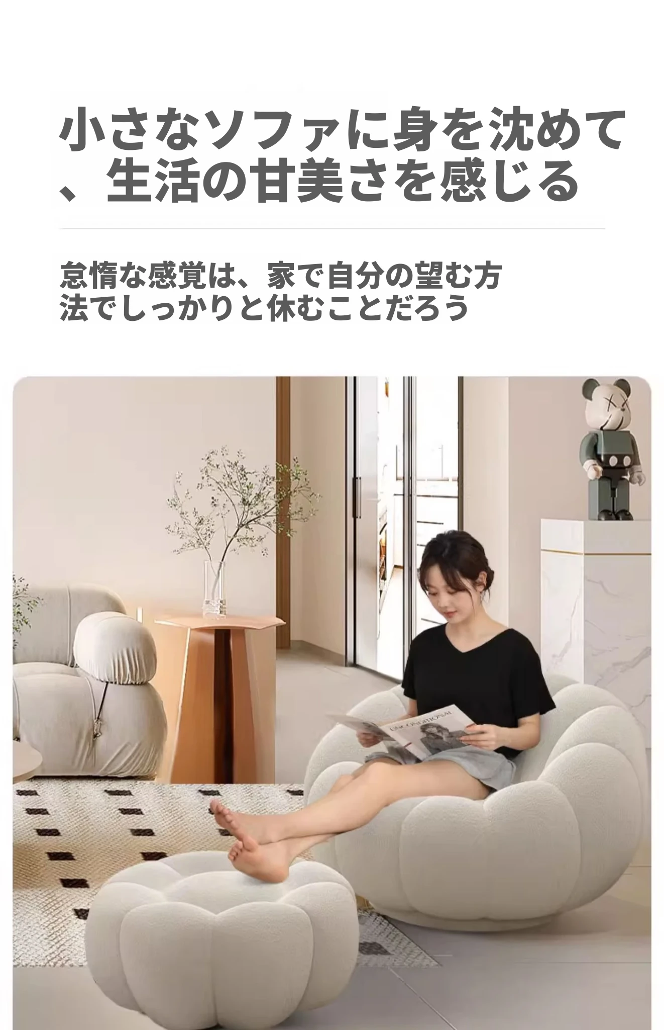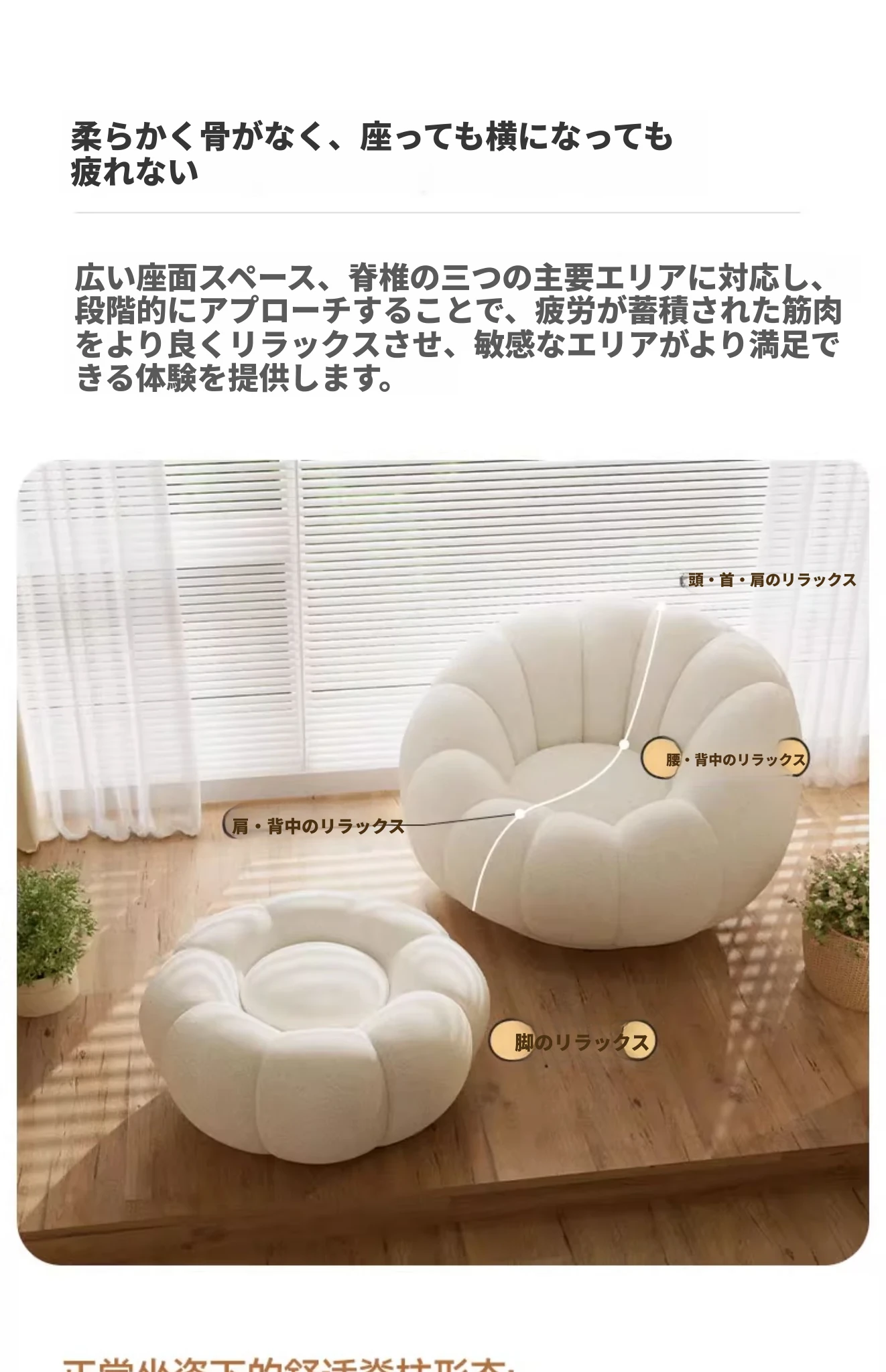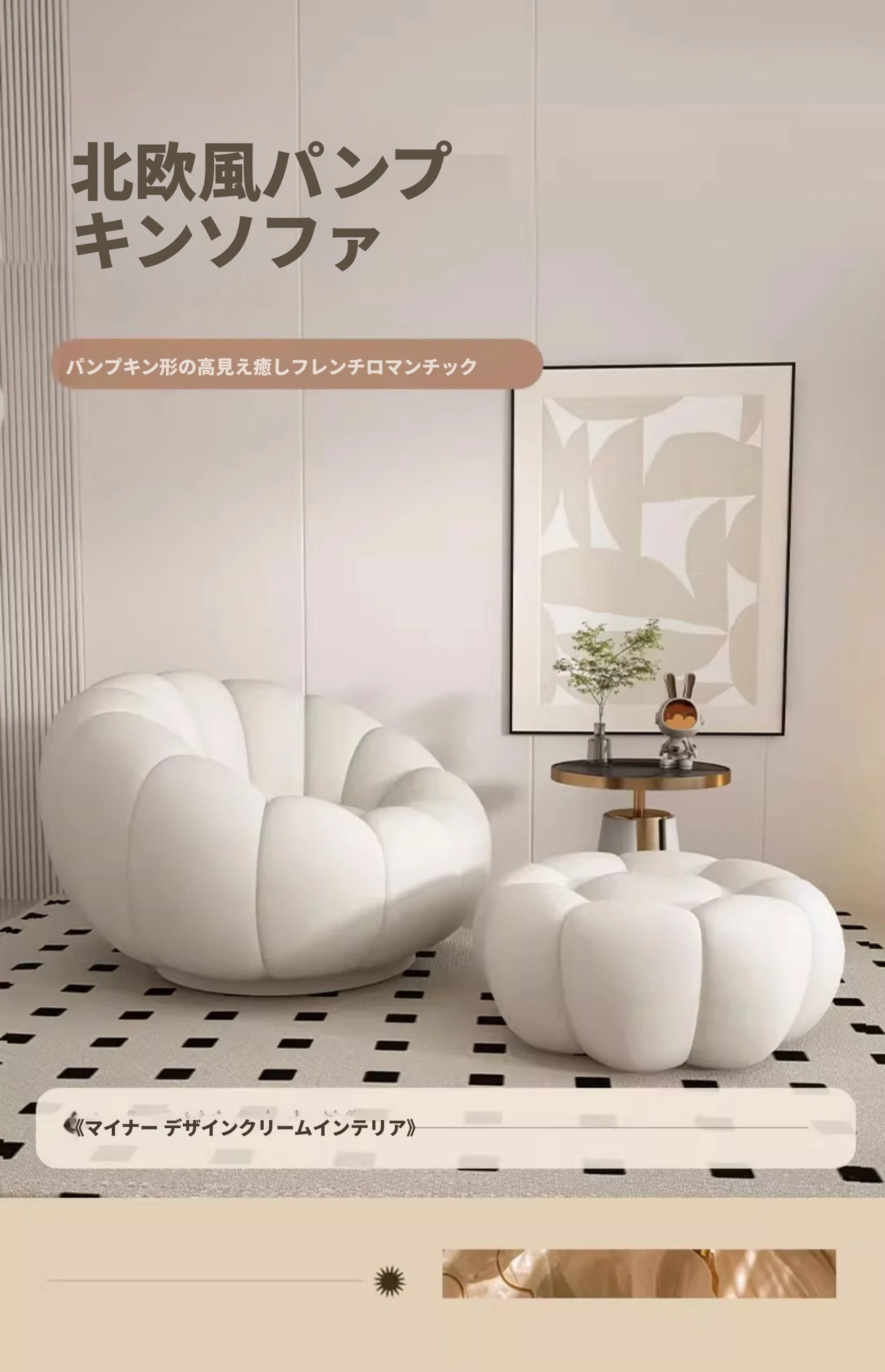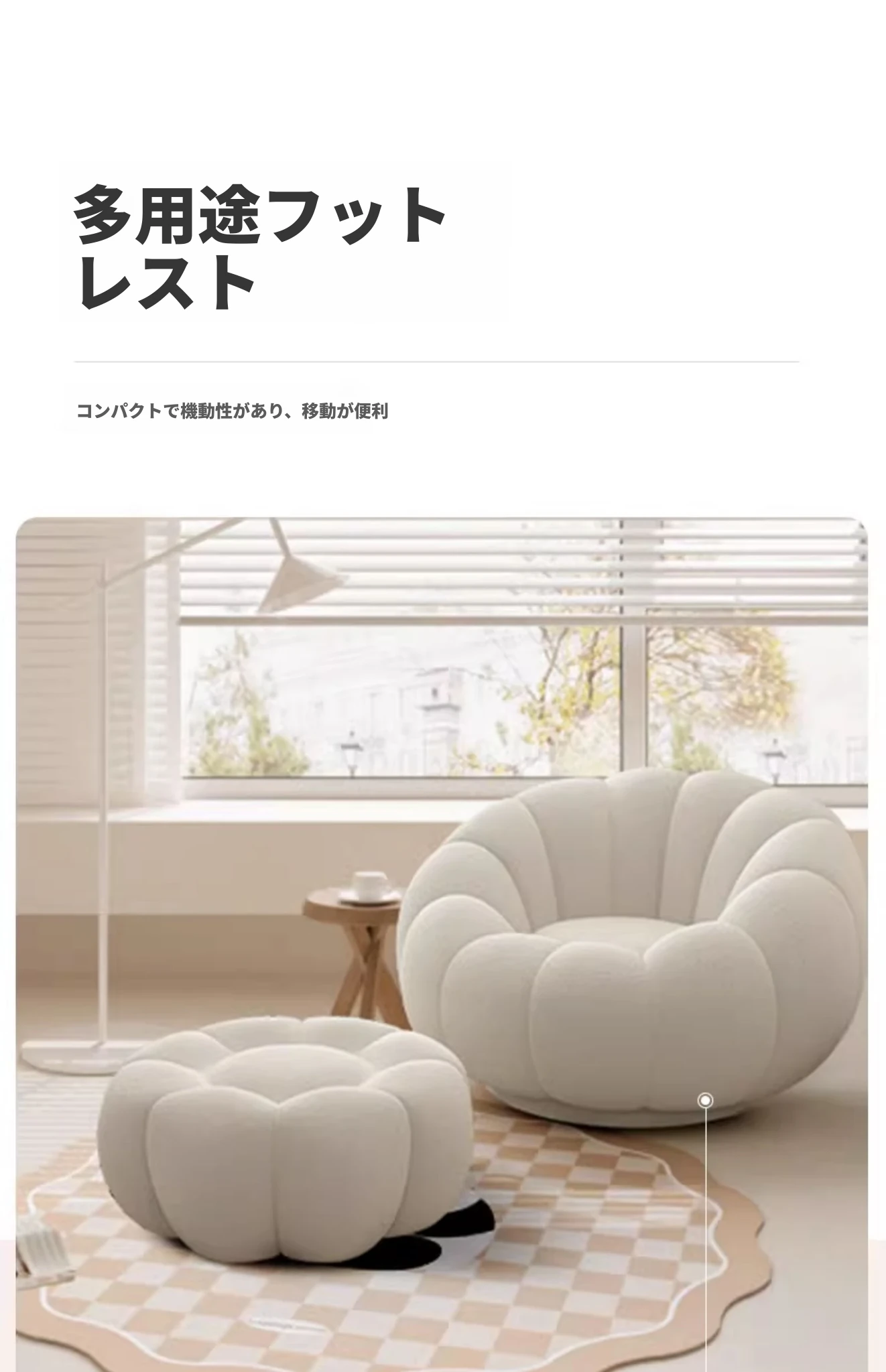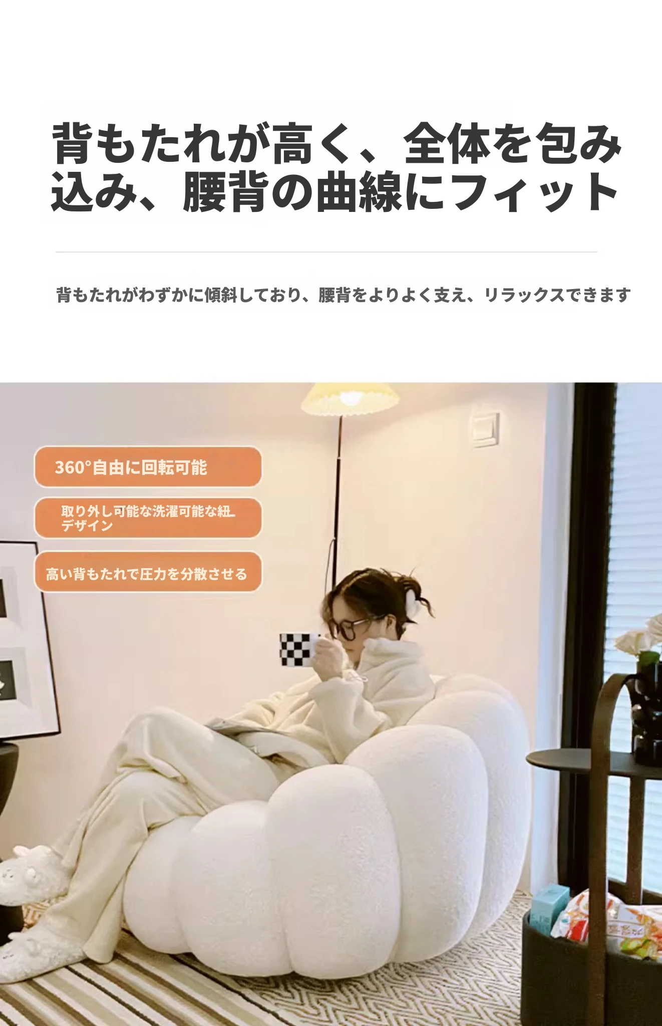 リラックスできる南瓜型ソファ【小型住宅向け】一人用・バルコニーや寝室に最適なクリーム風デザインのカジュアルチェア!快適なひとときをお届けします。
