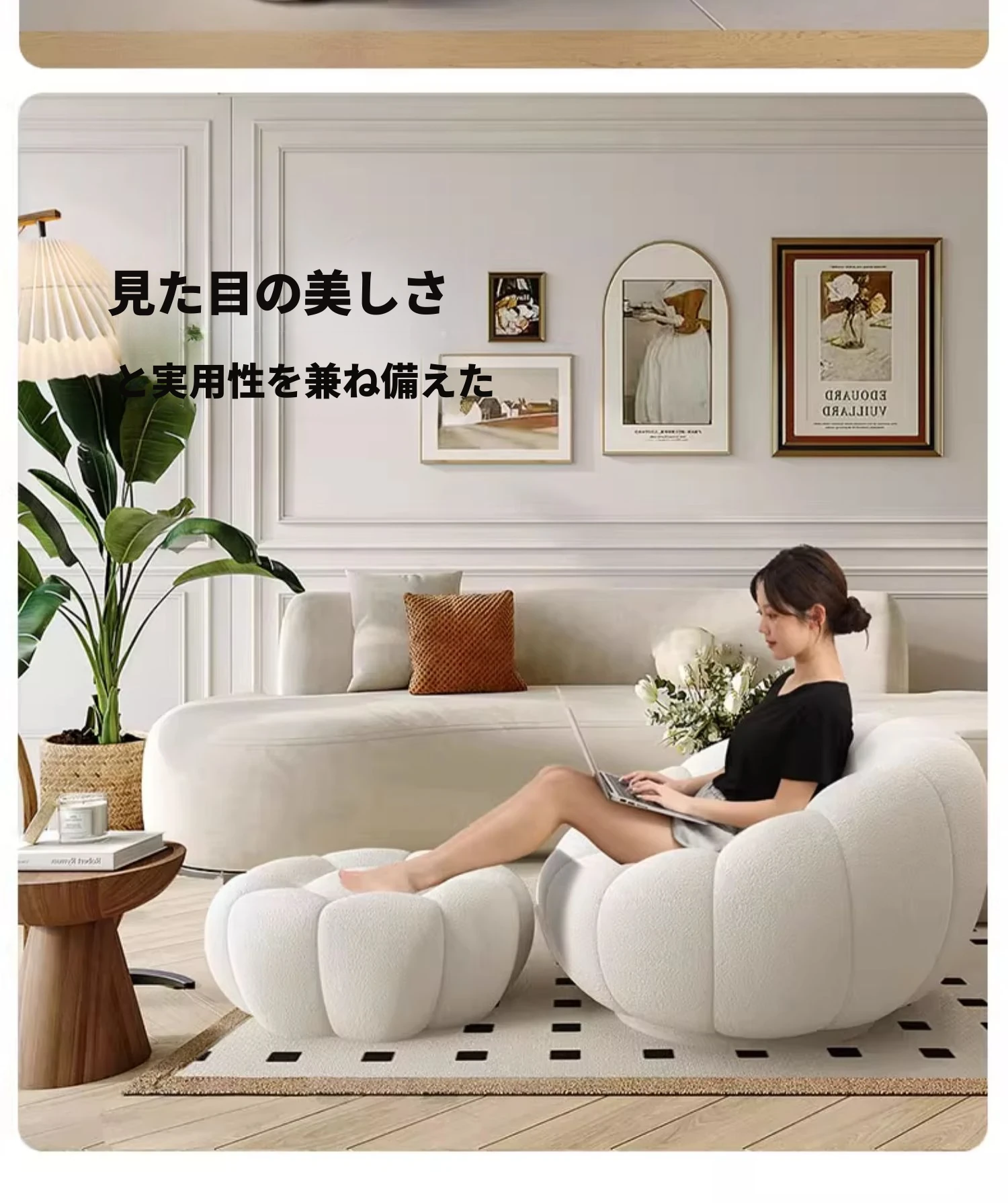 【ラムフリース】クリームホワイト+フットレスト(360°回転ベース)