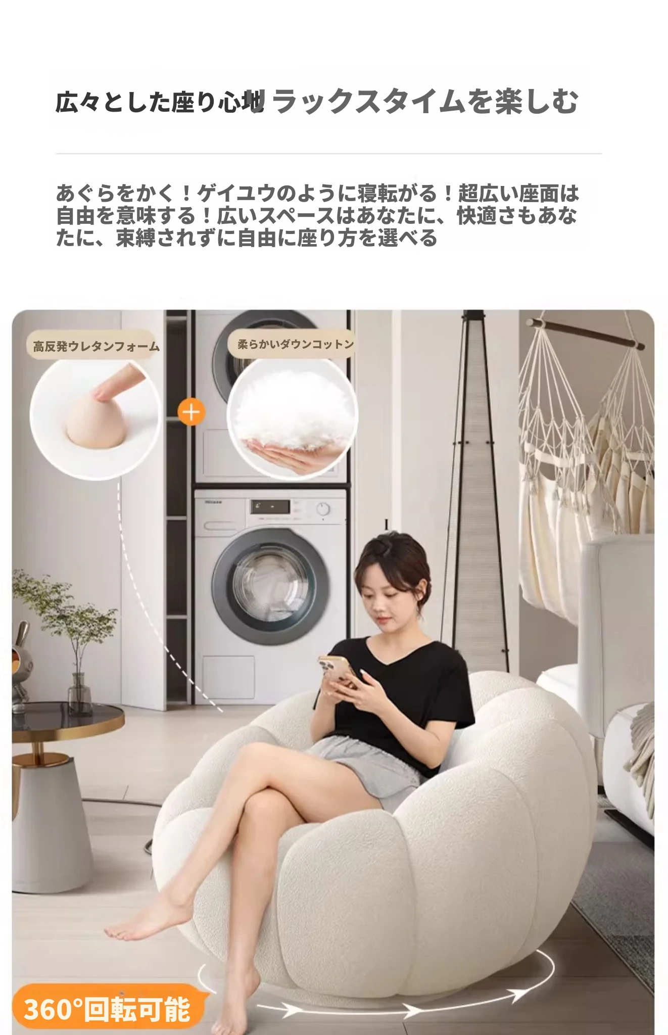 【フリースタイプ】アイボリー+フットレスト(360°回転ベース)