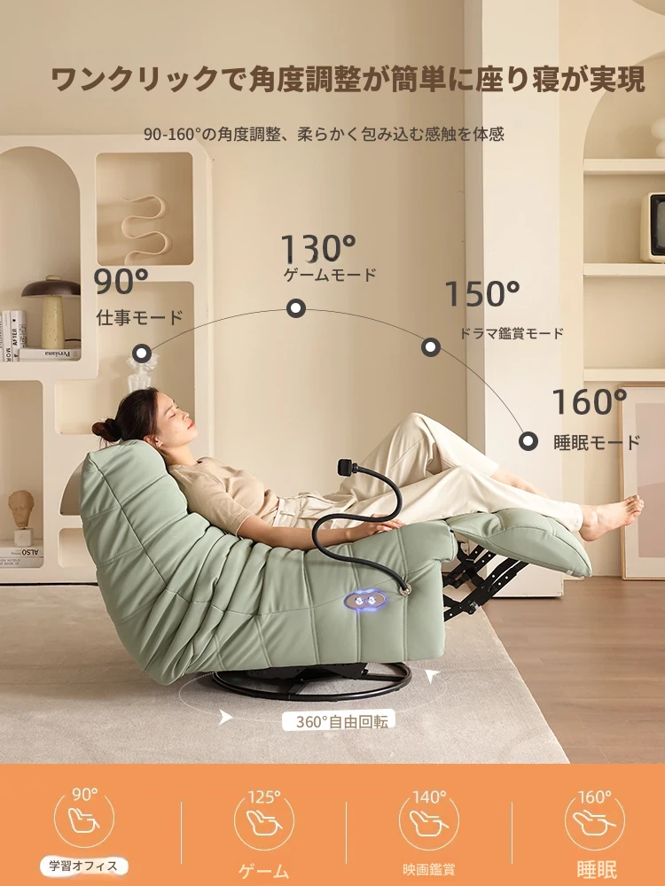 電動多機能カタツムリリクライニングチェア!ゆったりとした座り心地で、リラックスできる最高の一人用ソファ。話題のデザインで、どんなインテリアにもぴったり!自宅でのくつろぎの時間を贅沢に楽しもう!