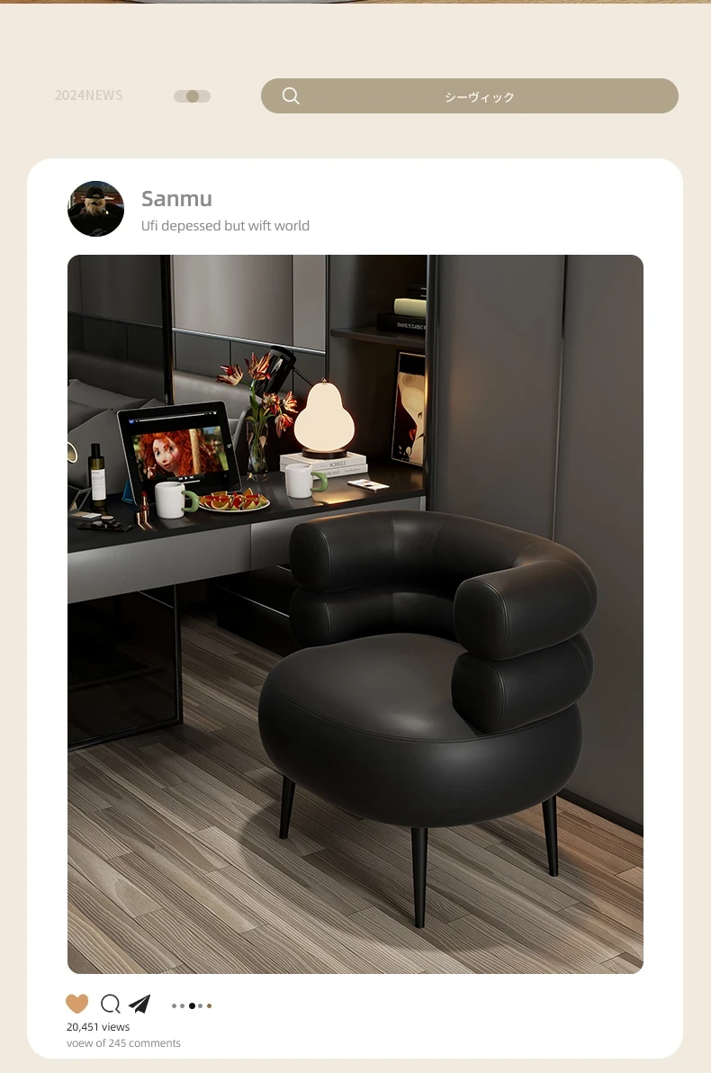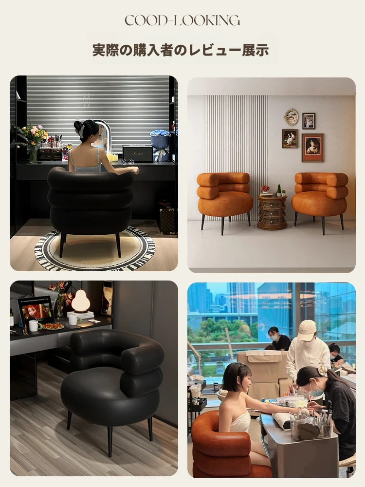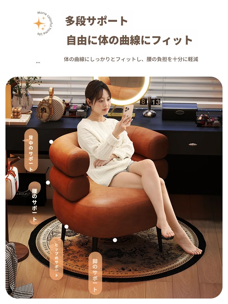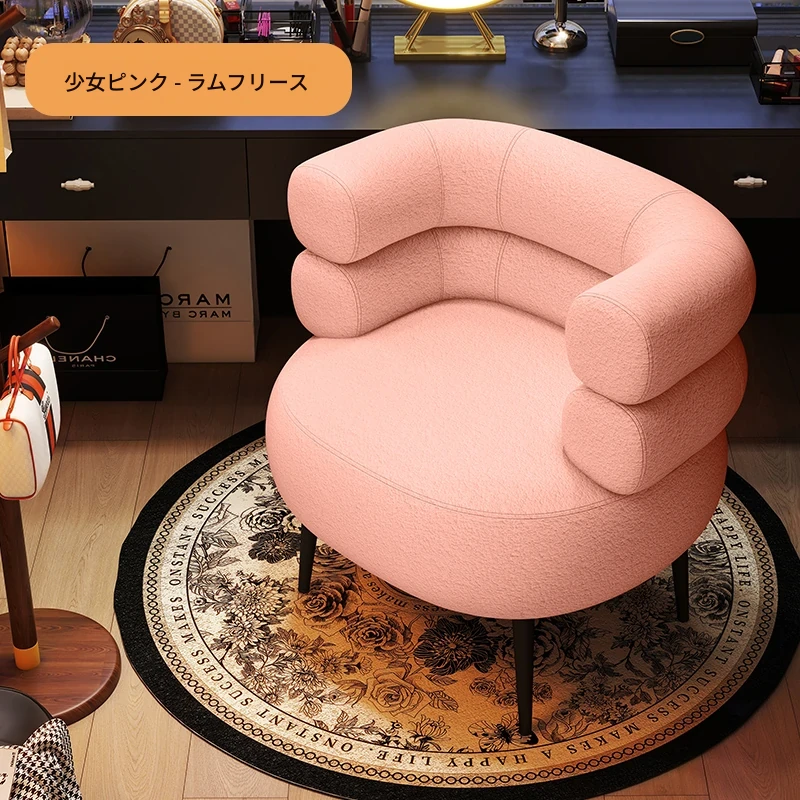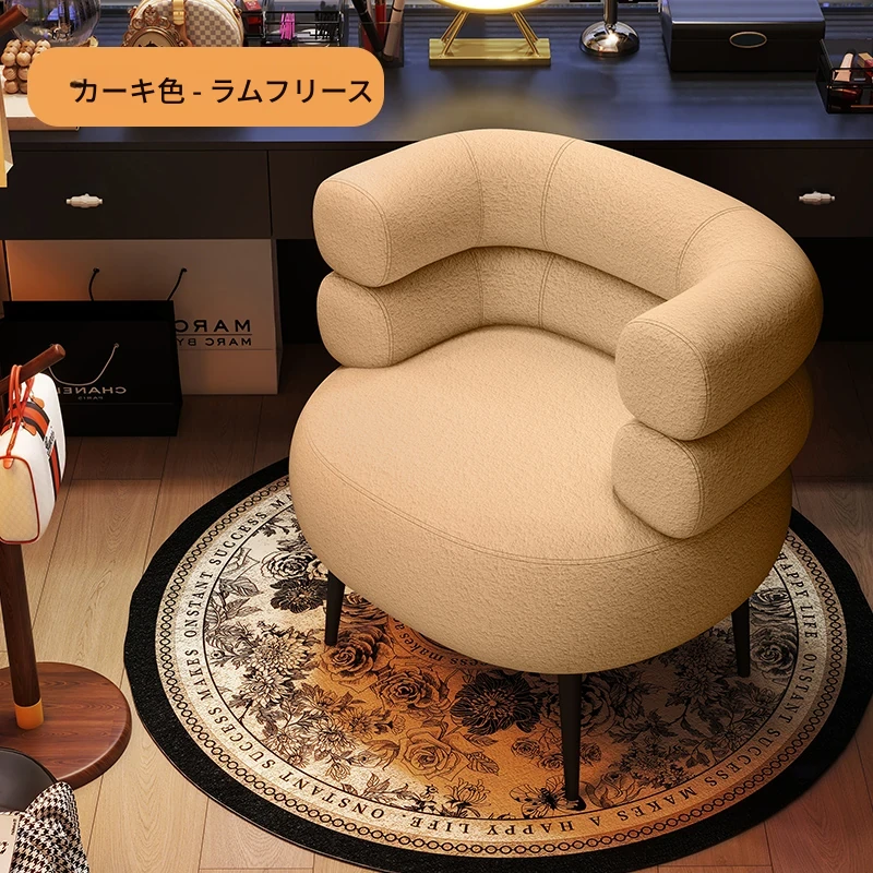 寝室のラグジュアリー化粧椅子 - 高級感溢れるドレッシングテーブル用チェア、快適な背もたれ付き、スタイリッシュなデザインで自宅のメイクアップルームにぴったり!一人用ソファやネイルチェアとしても最適!