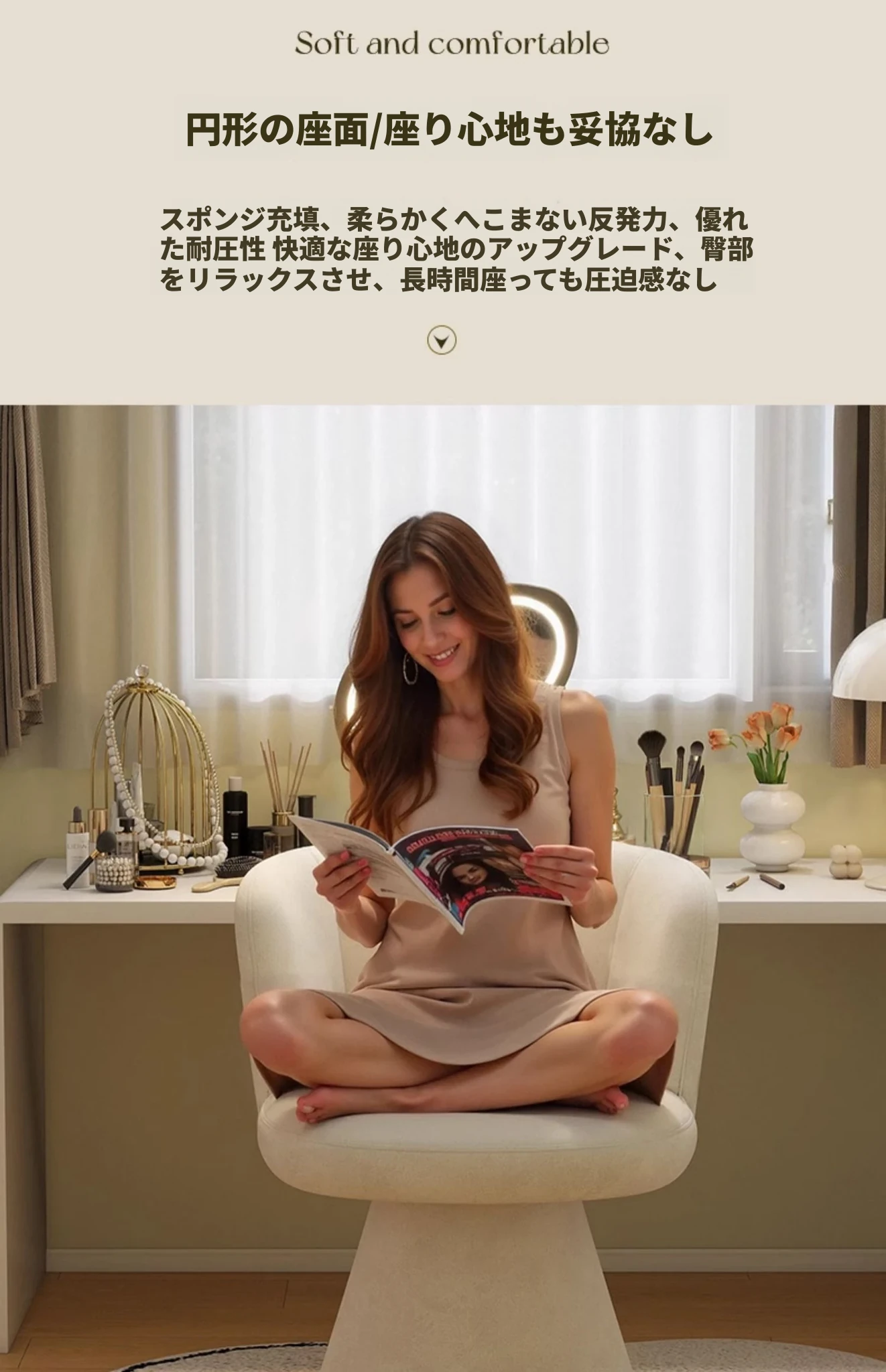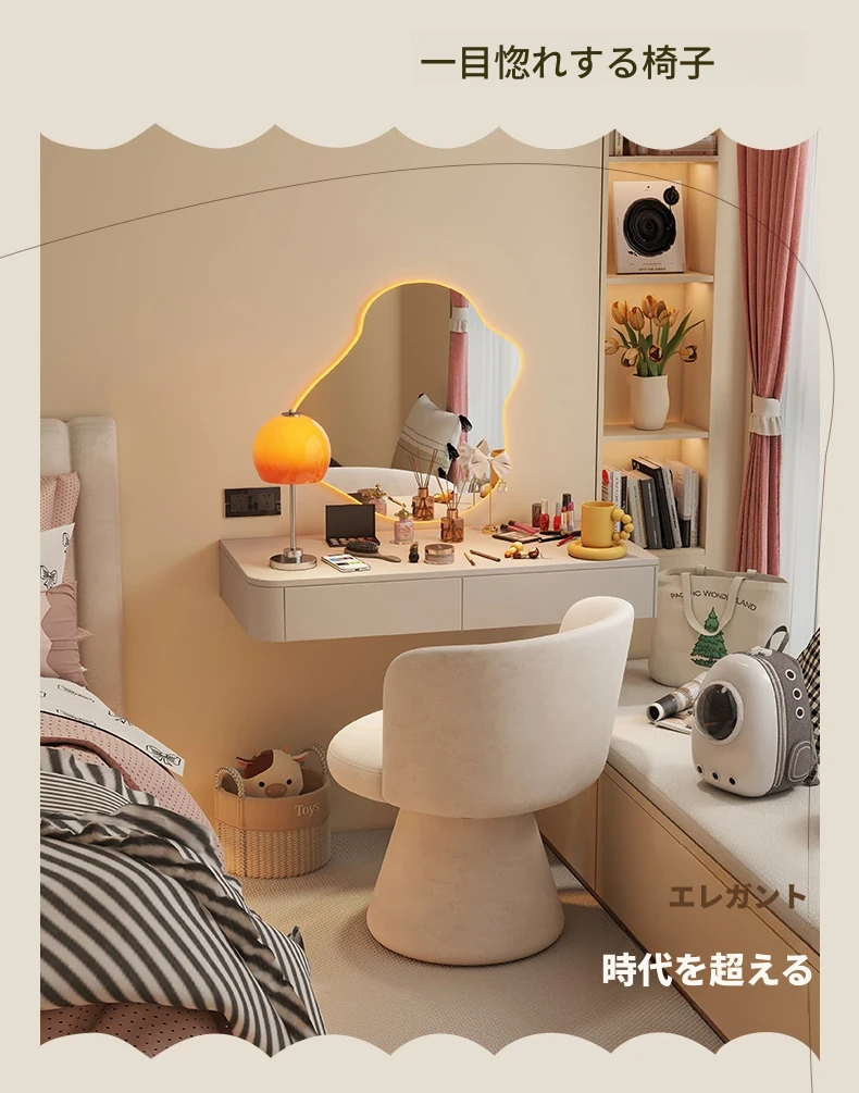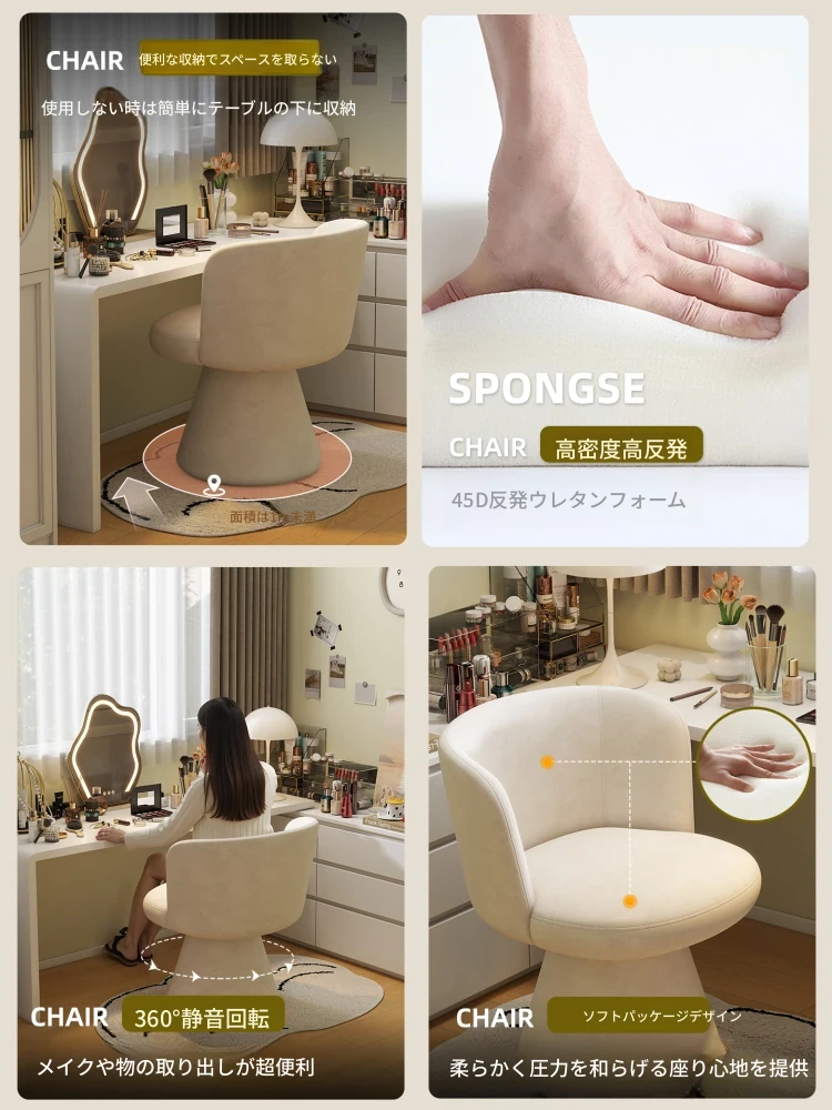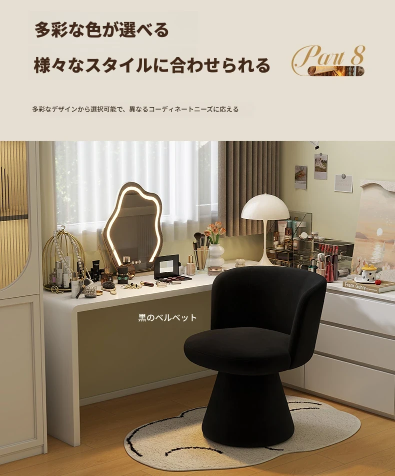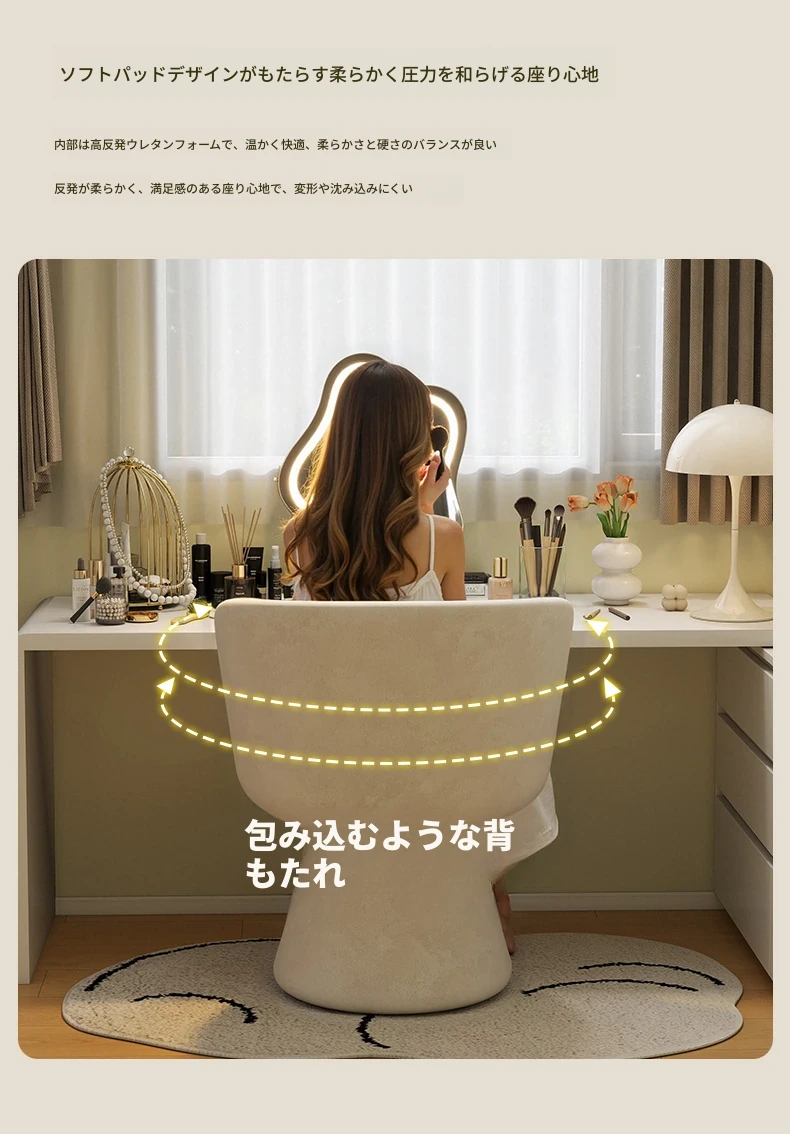 高級感溢れる家用寝室用化粧椅子|エレガントな衣装部屋のドレッサー用|背もたれ付きで快適な一人掛けソファ|ネイルサロンにも最適!