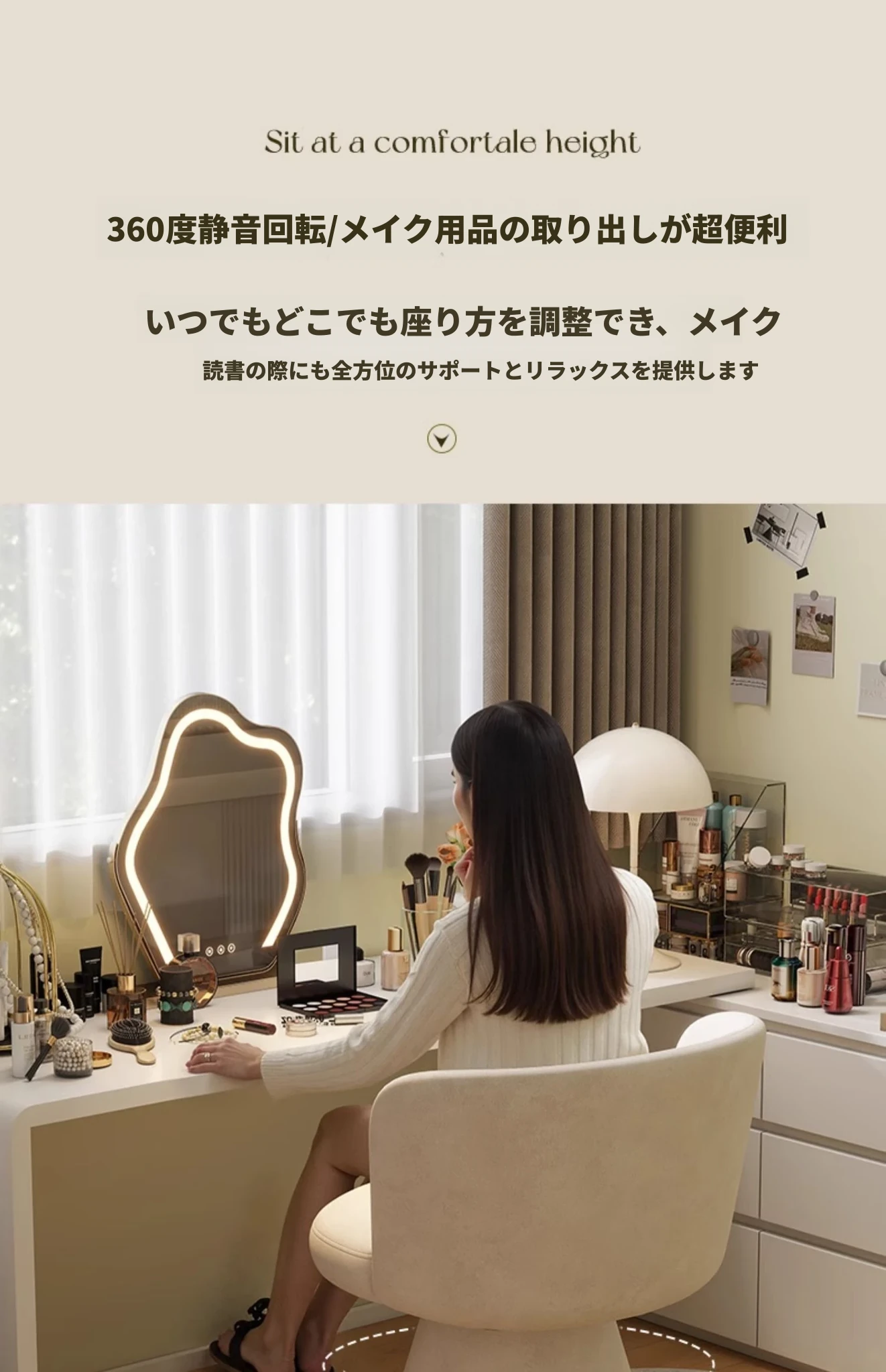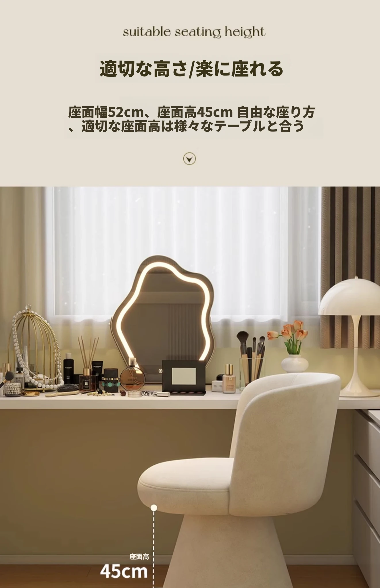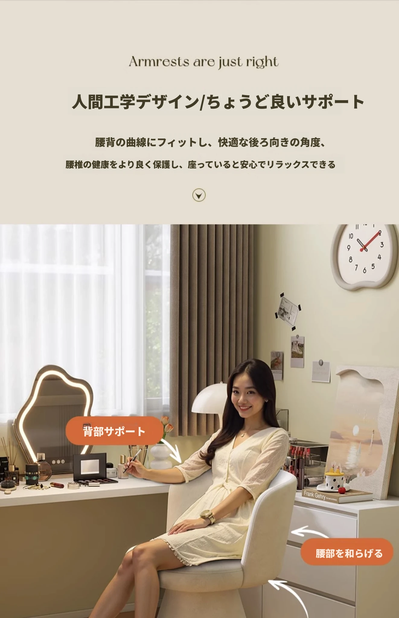 高級感溢れる家用寝室用化粧椅子|エレガントな衣装部屋のドレッサー用|背もたれ付きで快適な一人掛けソファ|ネイルサロンにも最適!