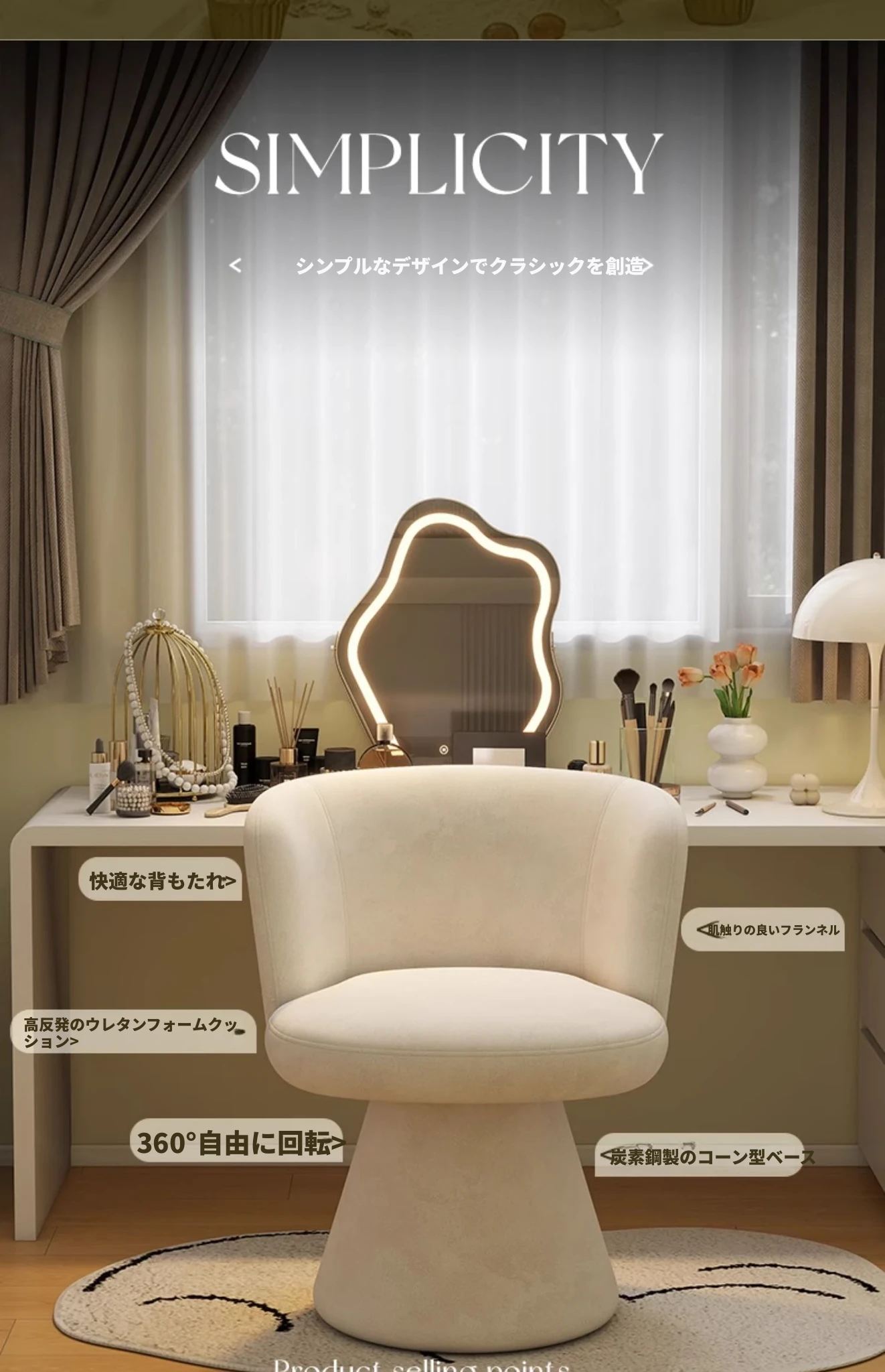 アイボリー/360°回転/二重充填【肌触りの良いフランネル】
