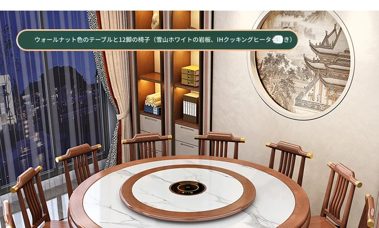 1.8メートルラバーウッドダイニングテーブル+ダイニングチェアx12