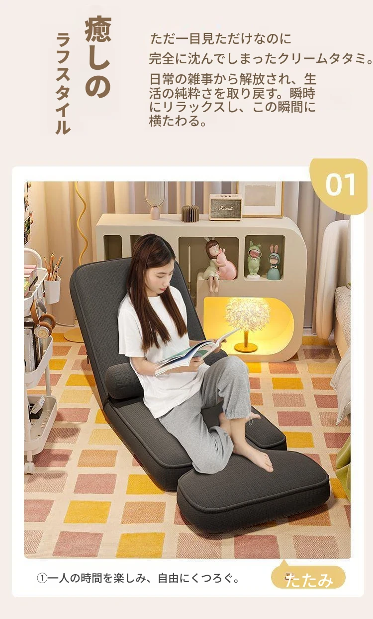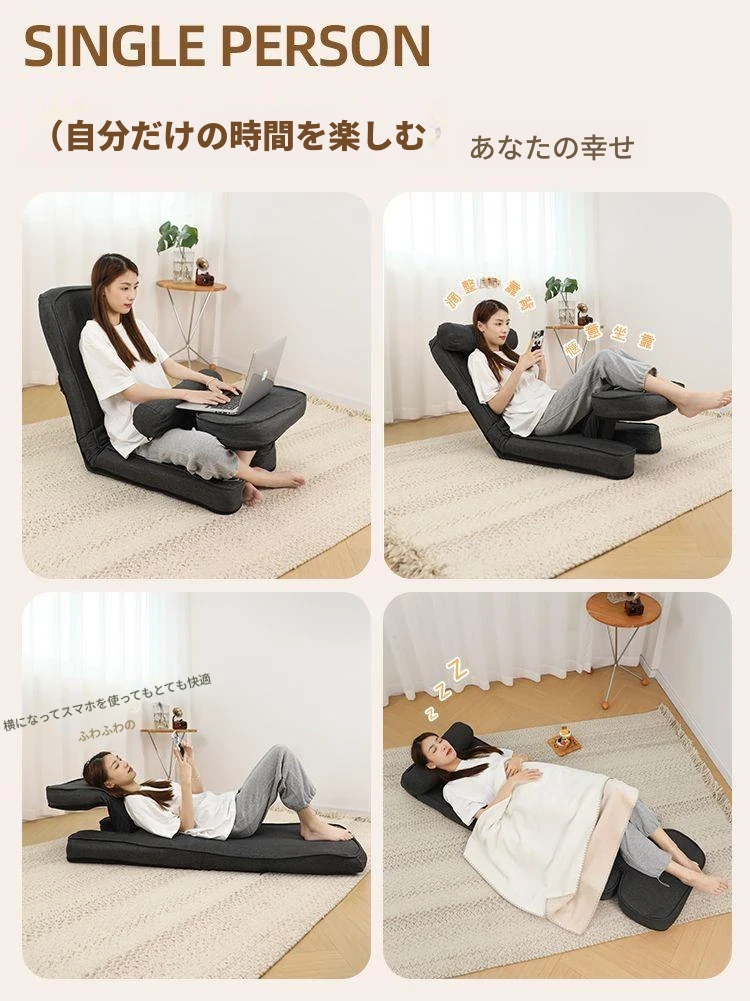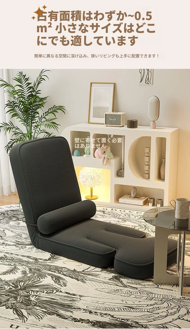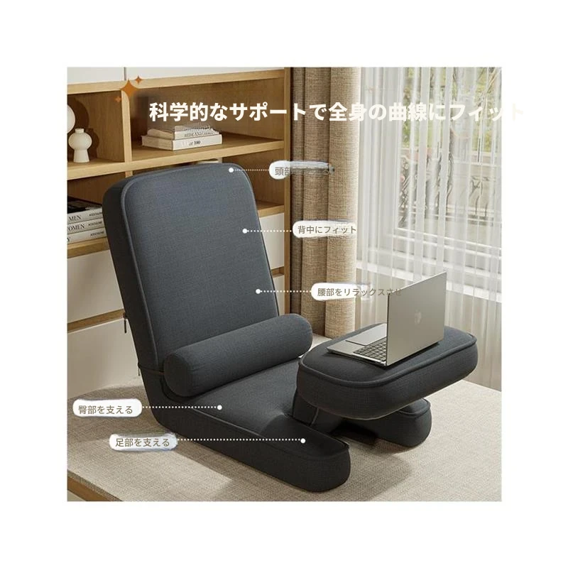 リラックスできる!エルゴノミックデザインのラウンジソファー - パソコン作業や寝室に最適な背もたれ付き座椅子、畳にもぴったり!快適なひとときをお過ごしください。
