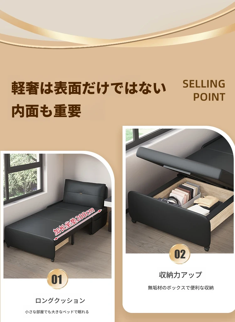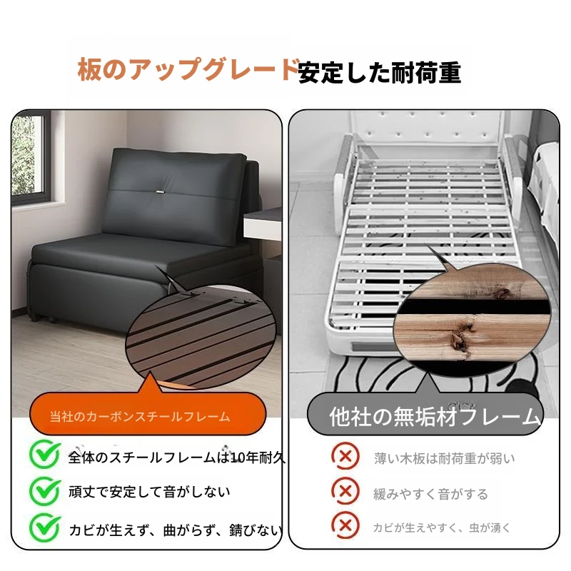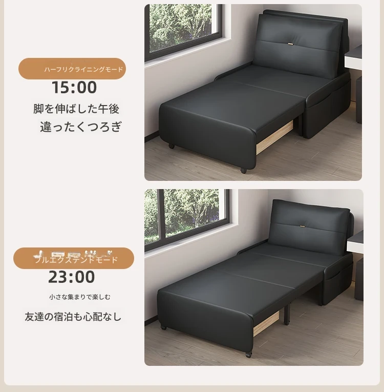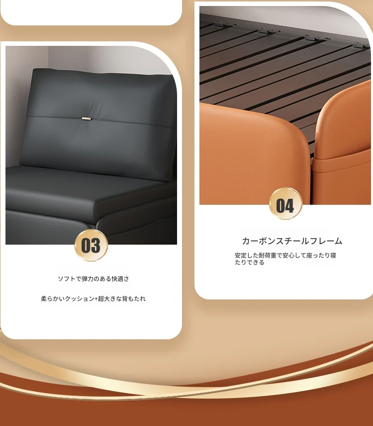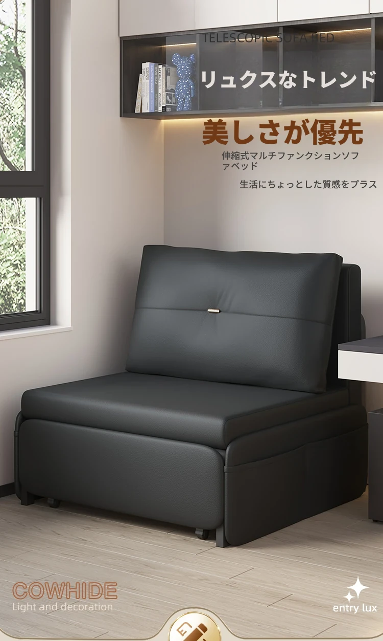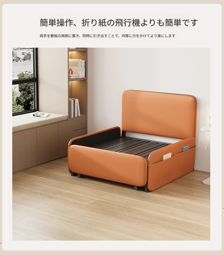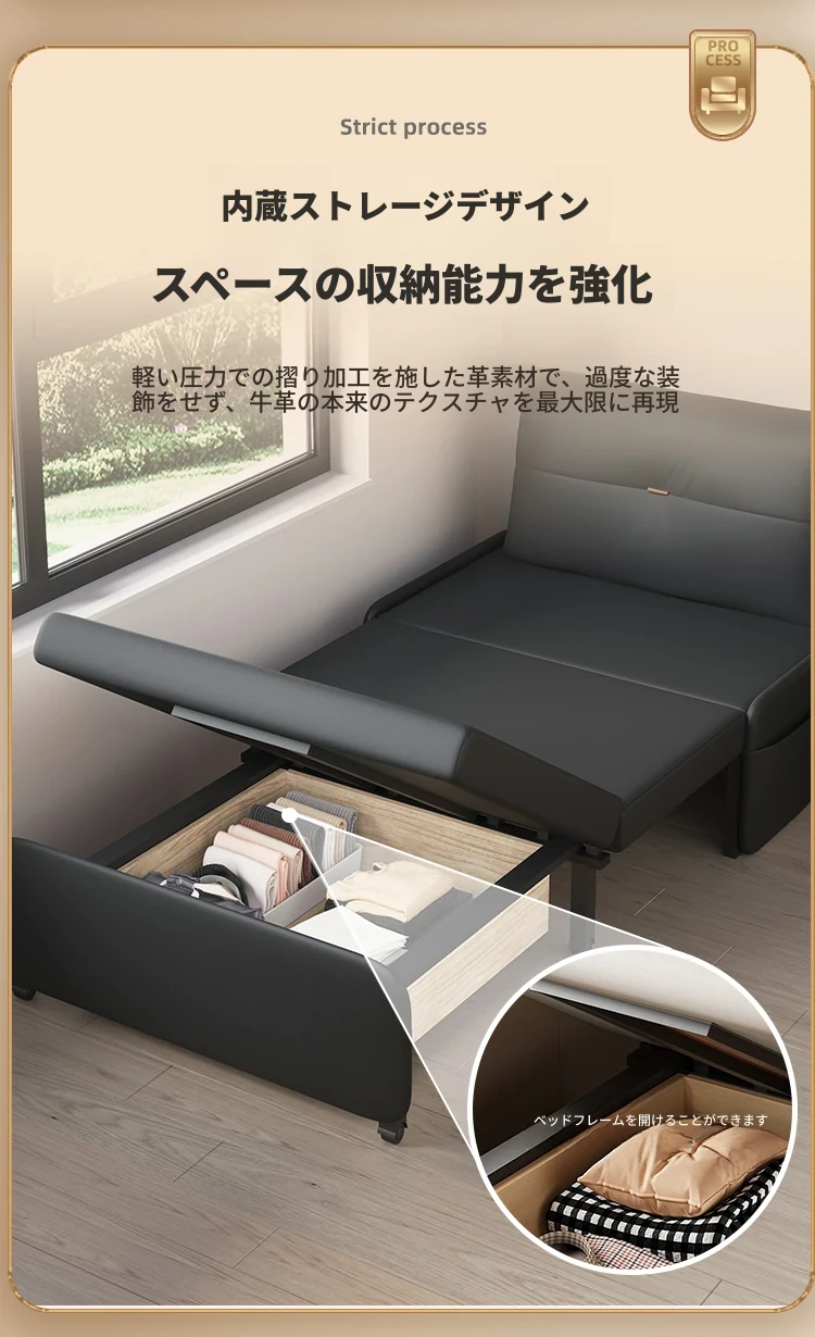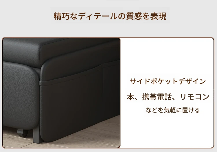 【収納付きココナッツブラウンタイプ】幅0.8メートル猫爪皮ブラック