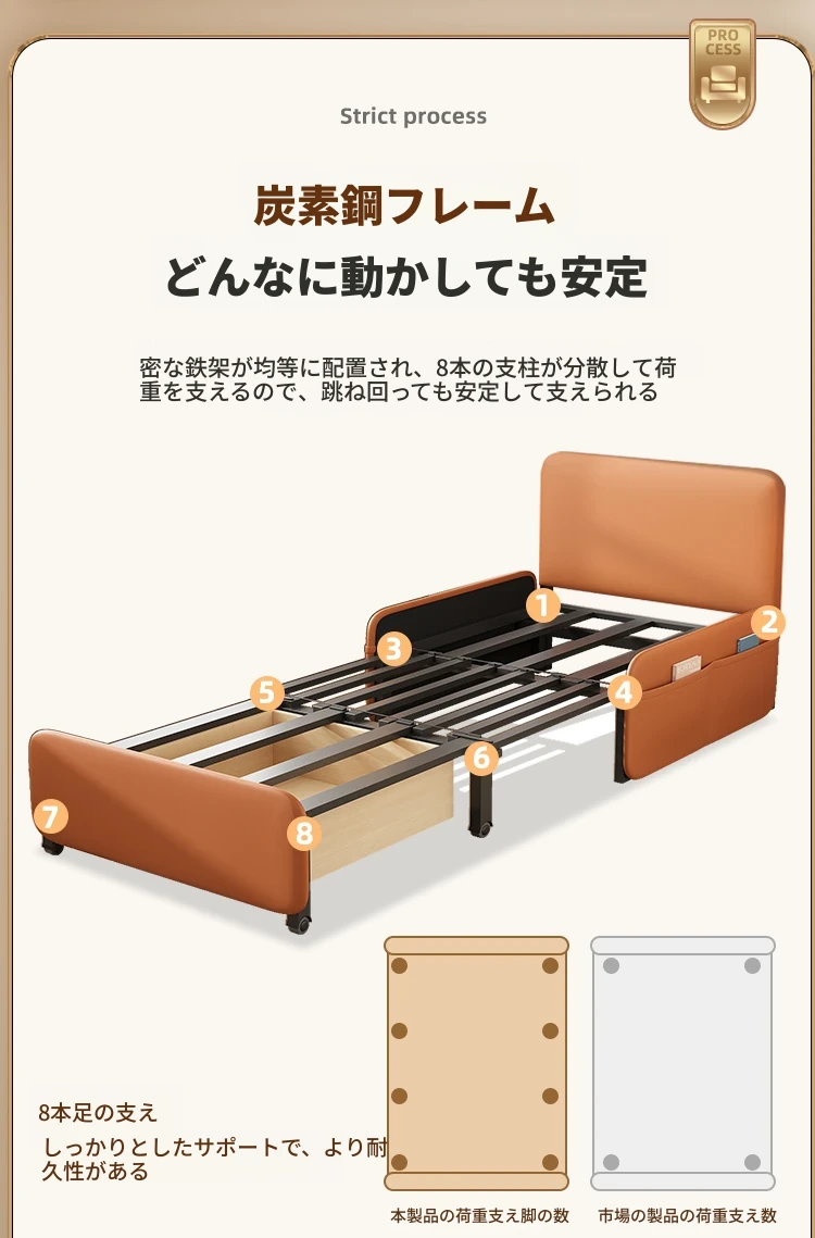 【収納付きラテックスタイプ】幅0.8メートル猫爪皮ブラック