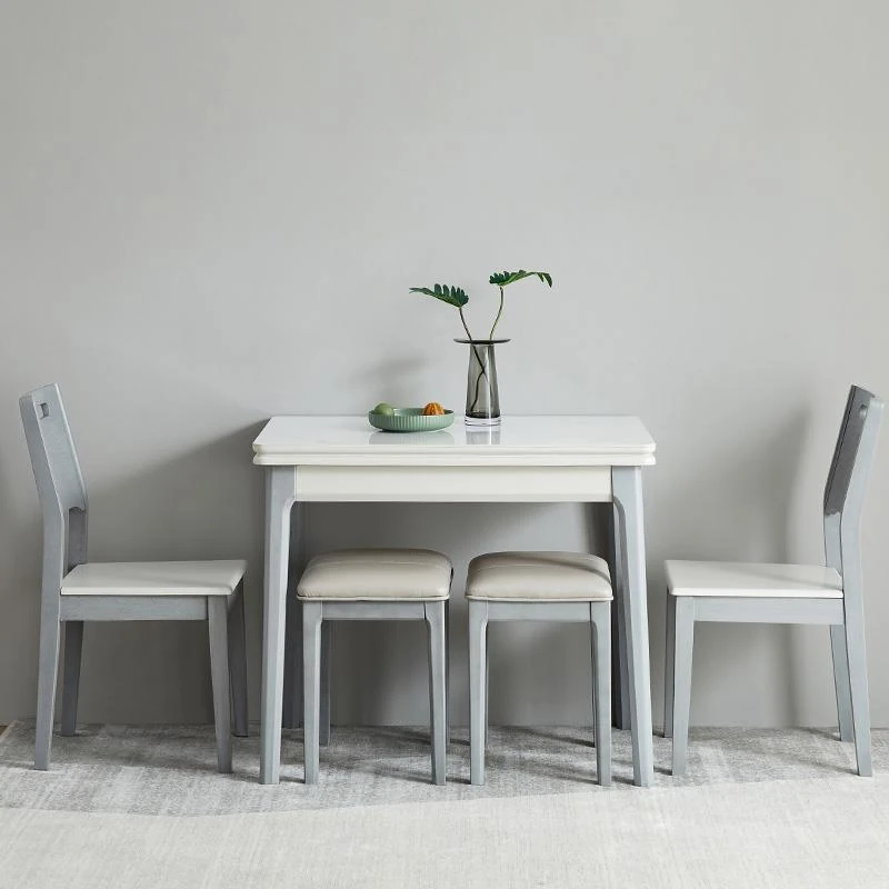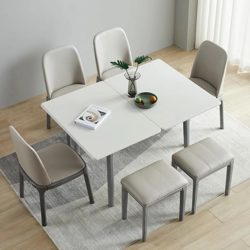 シャイニングホワイト-1テーブル2椅子2スツール【ソフトシート】