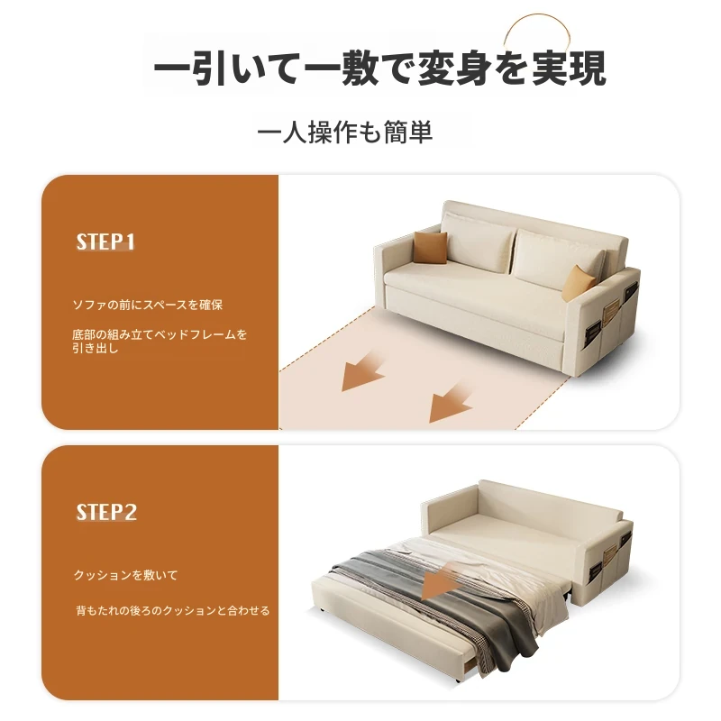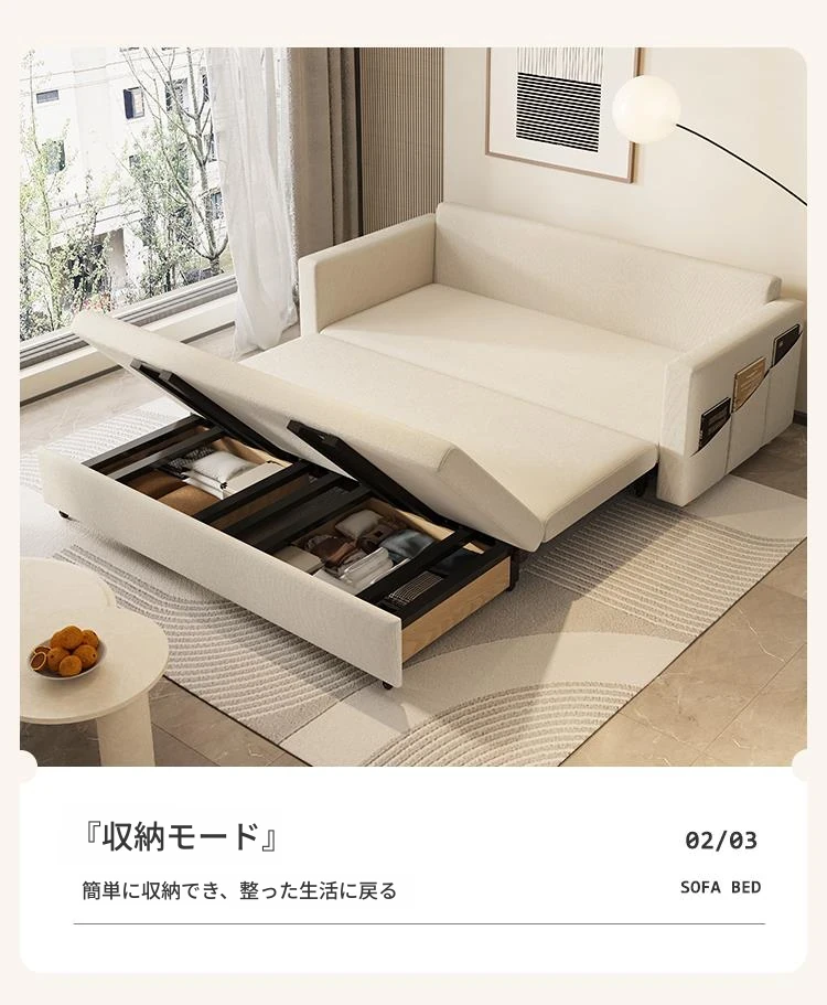 香港送料無料!モダンでシンプルなデザインのソファベッド、コンパクトな小型住宅に最適。収納スペースも充実!プッシュ&プル機能付きで、リビングにぴったりのダブルサイズ。香港への直送で便利!