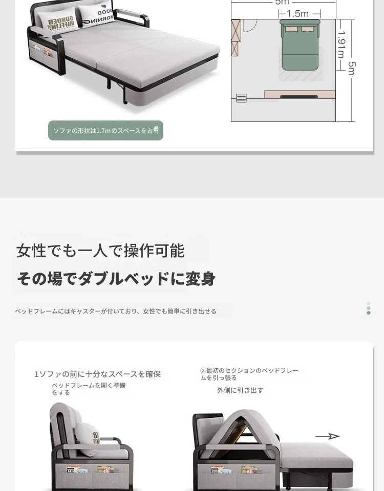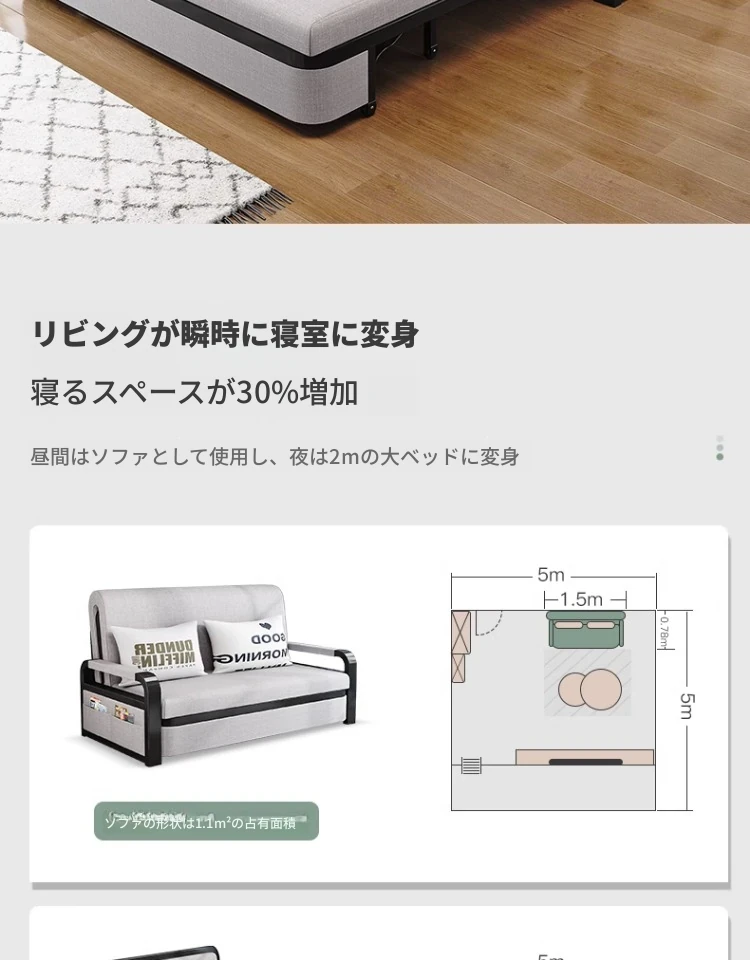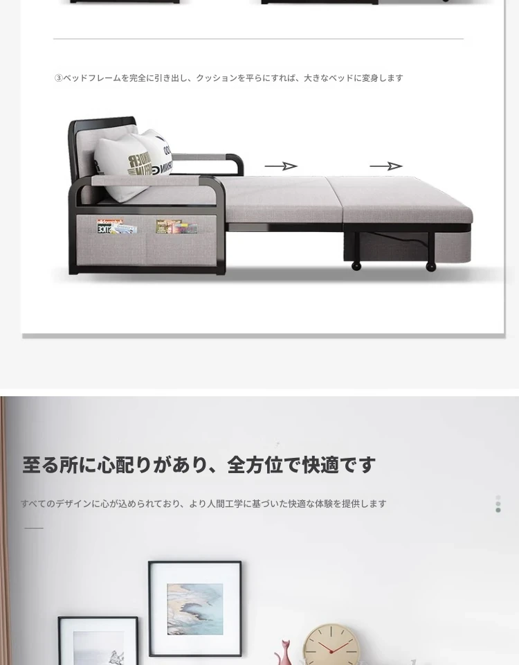 【香港送料無料】折りたたみソファベッド 小型リビングに最適!二人用のリクライニング機能付き、昼寝にも最適な多機能ベッド!スペースを有効活用し、快適な居住空間を実現します!