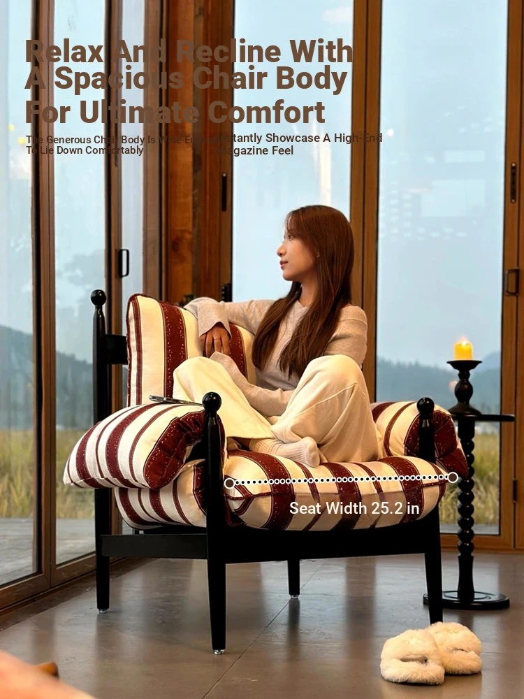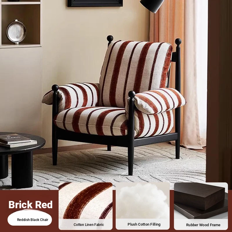 French Vintage Red Wicker Chair - Designer Accent Armchair for Living Room & Balcony, Retro Style Leisure Lounge Chair, Perfect for Cozy Relaxation