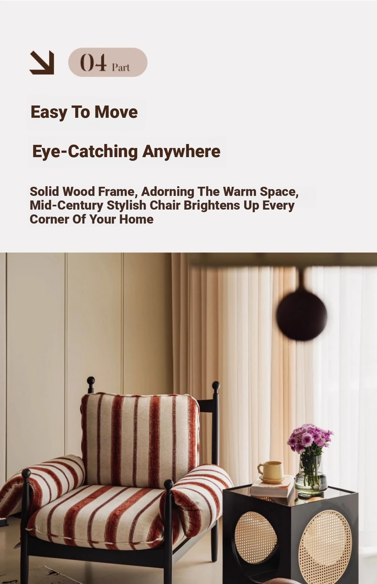 Brick red Stripes [rubber wood frame] removable and washable