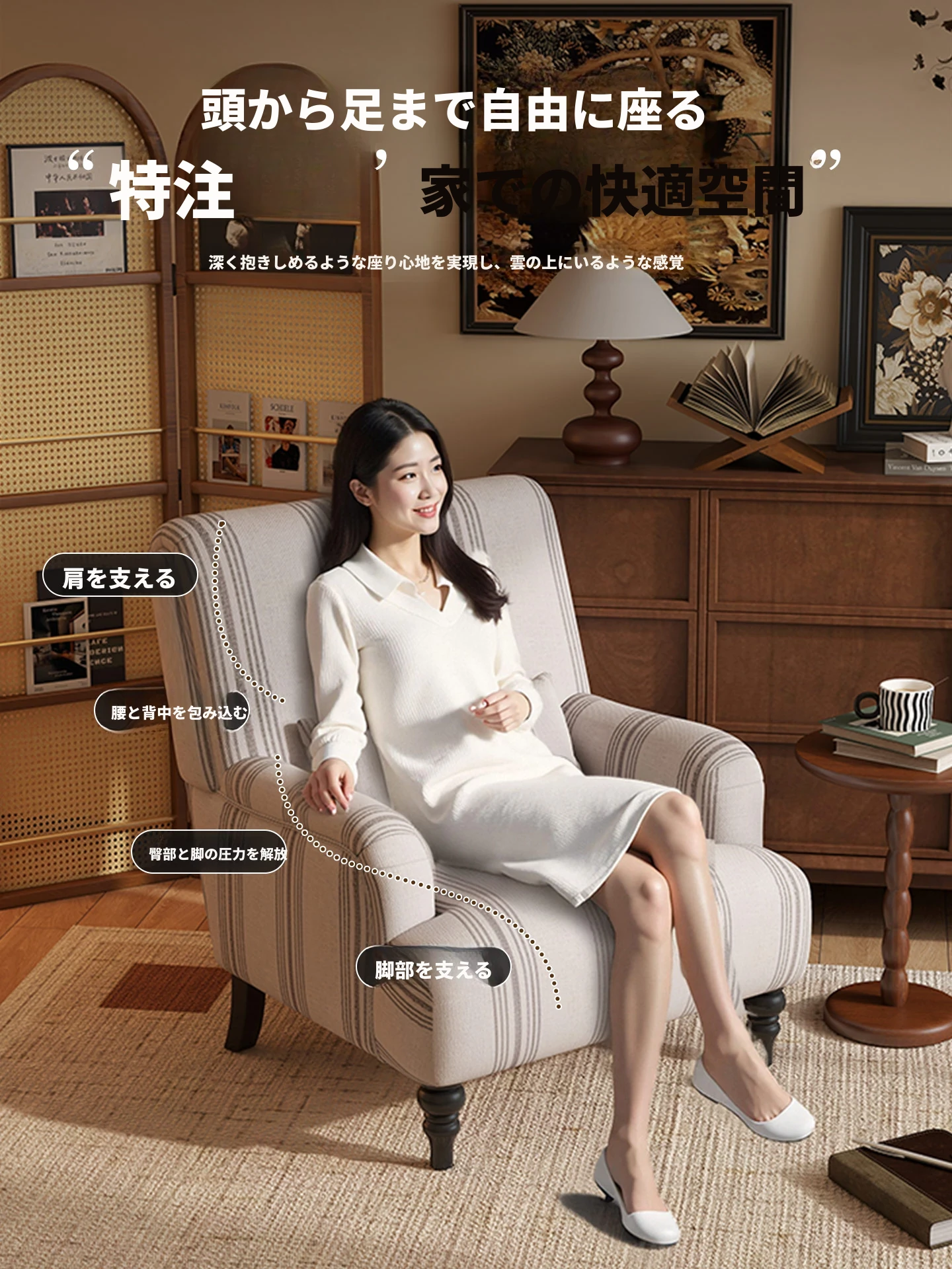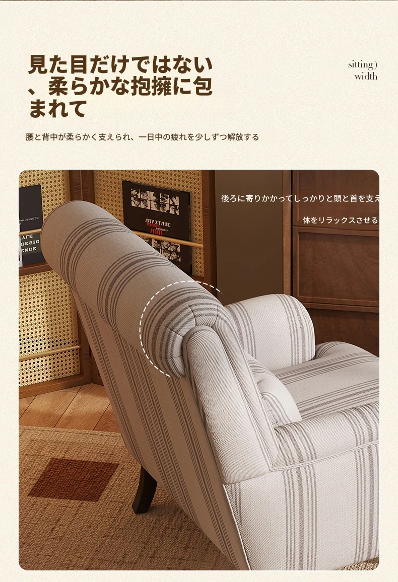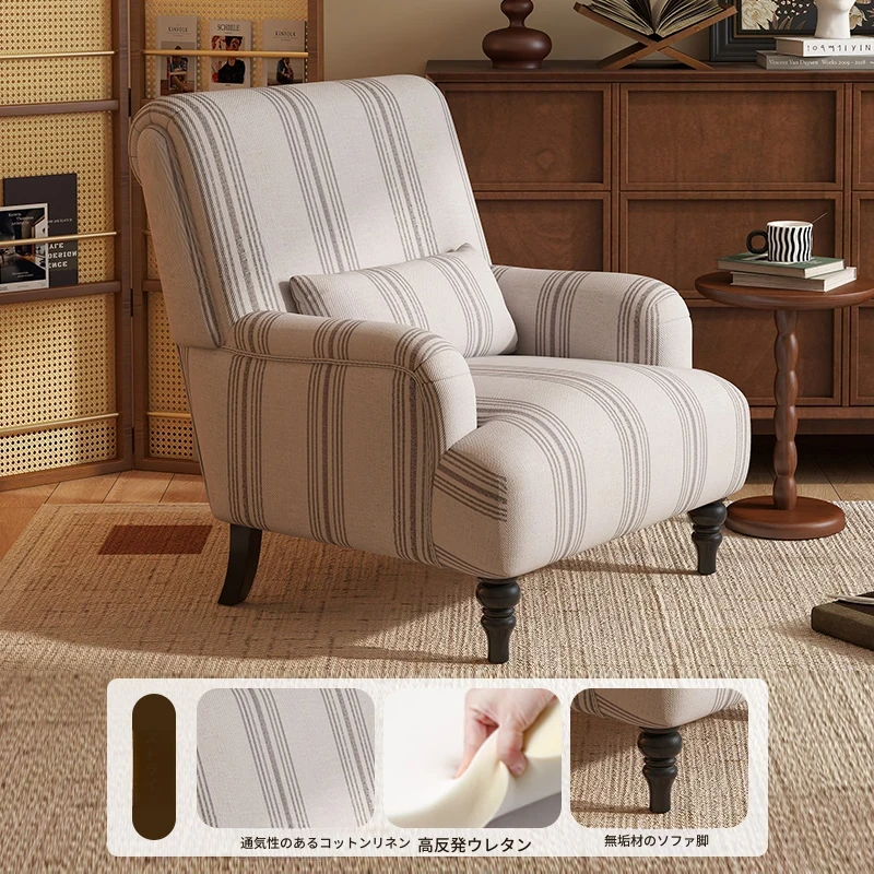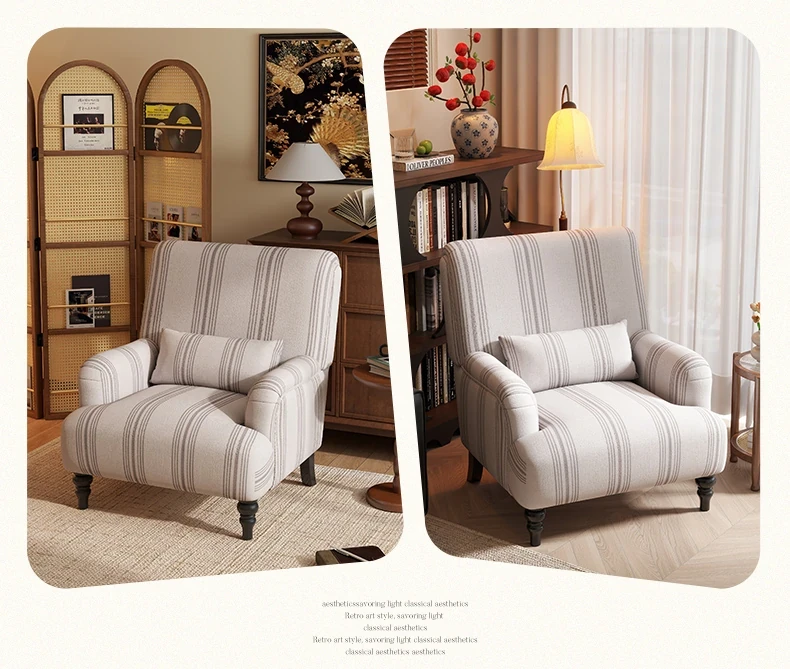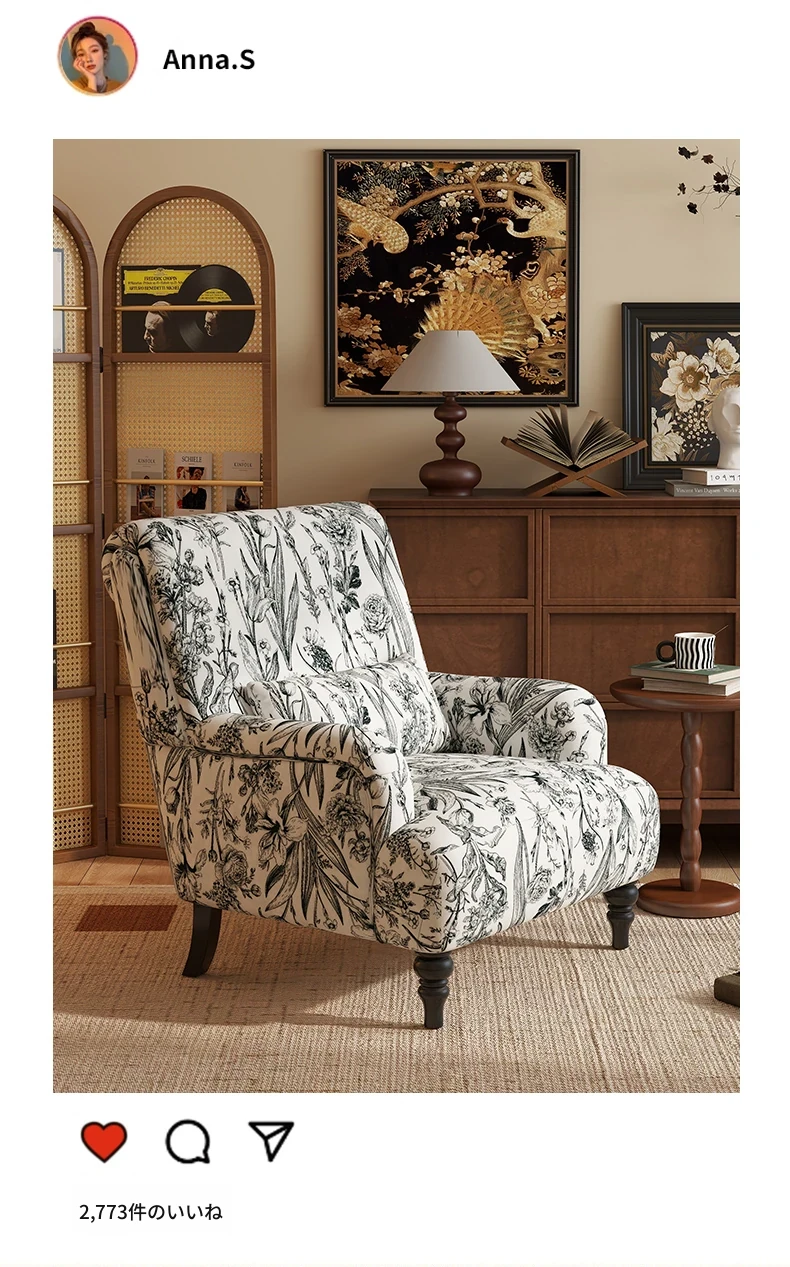 フレンチビンテージ一人掛けソファ、洗練されたデザインでリビングやバルコニー、寝室に最適。高級感あふれる虎柄で、くつろぎのひとときを演出するリラックスチェア。