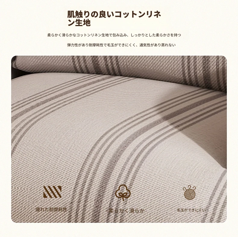 【通気性のあるコットンリネン】グレーとホワイトのストライプ + ウエストピロー