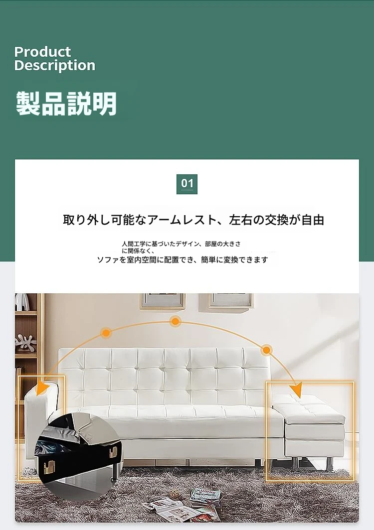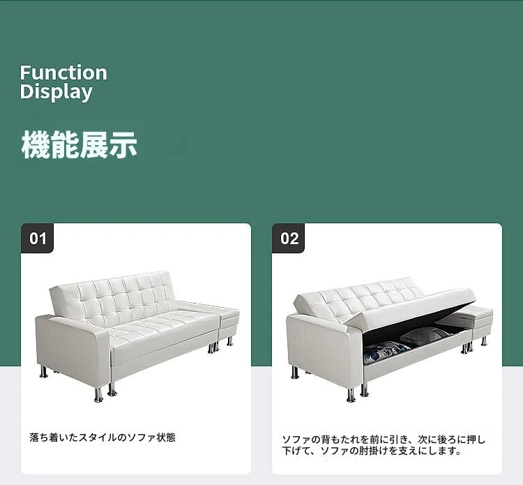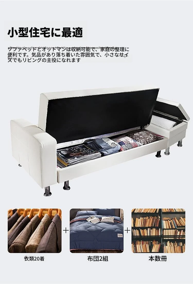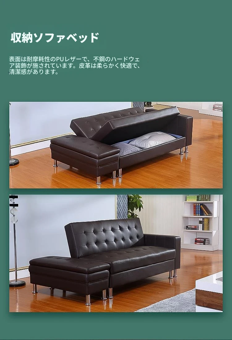香港送料無料!小型スペースに最適なレザー調収納付きソファ。多機能な二人用折りたたみ式リビング&書斎用カウチベッドで、居心地の良い空間を演出します。