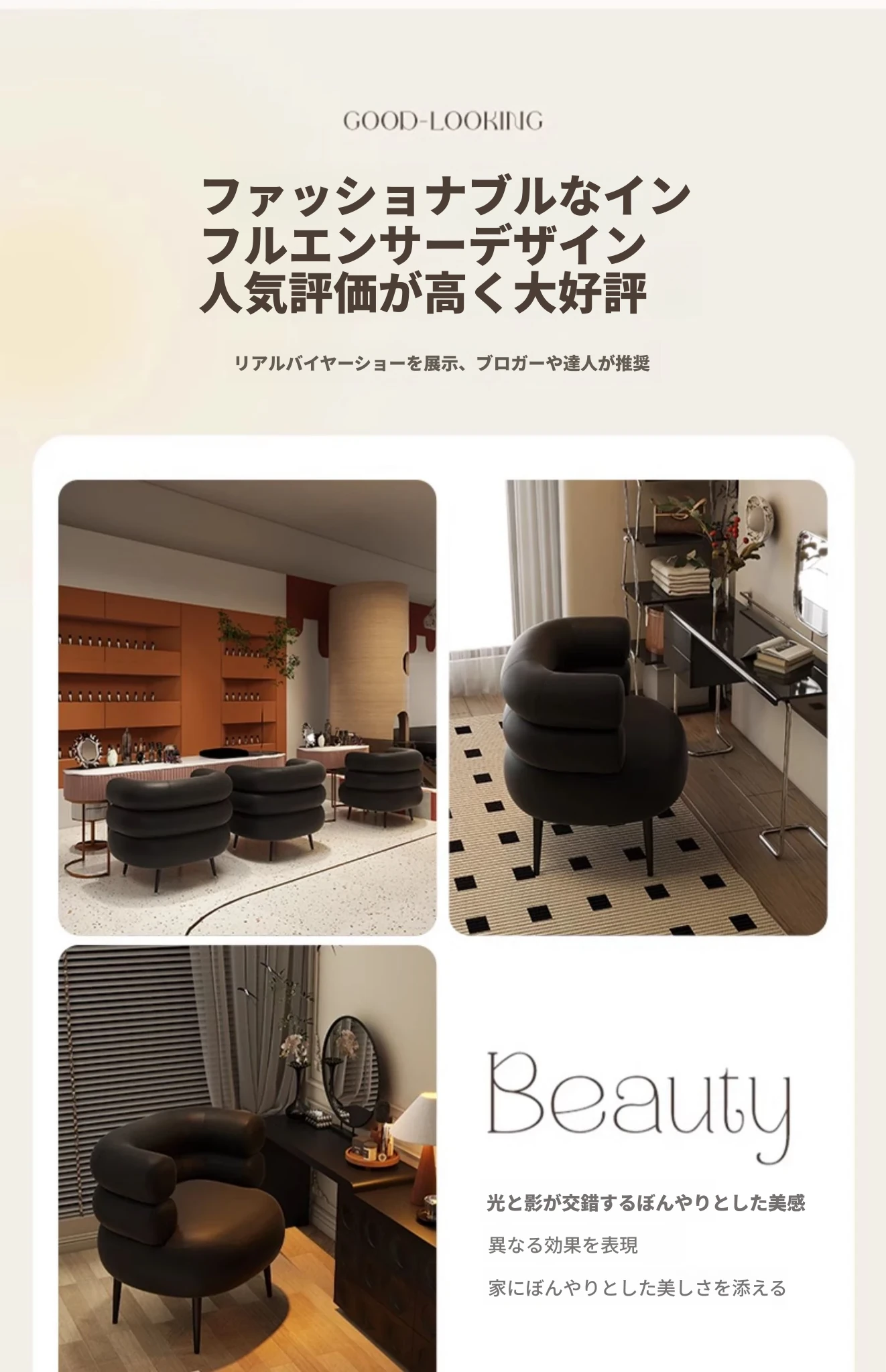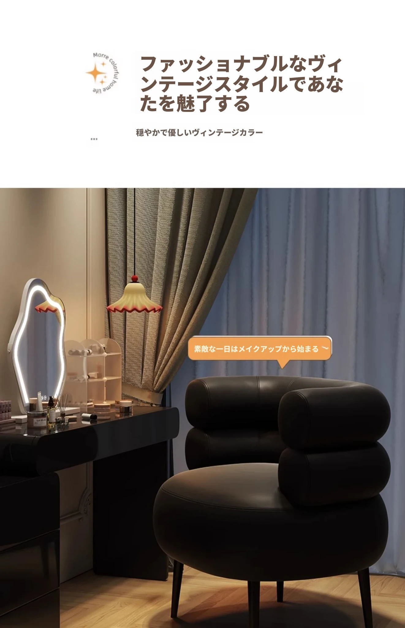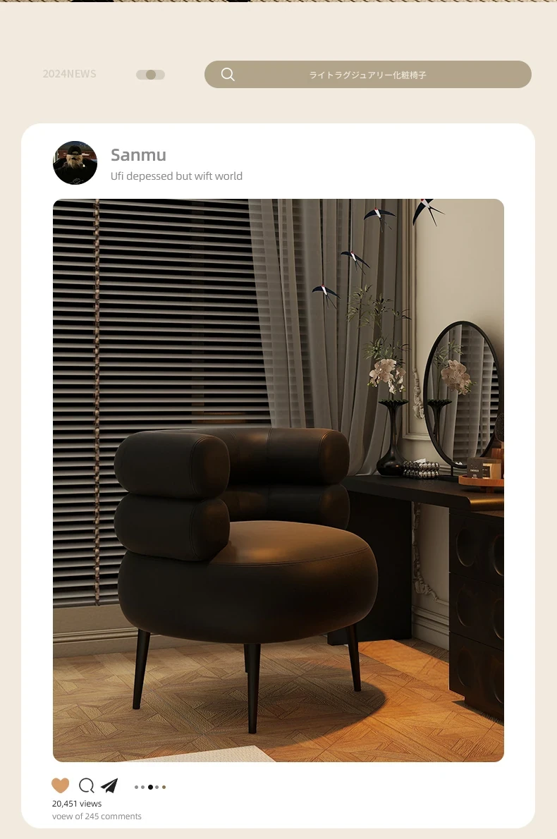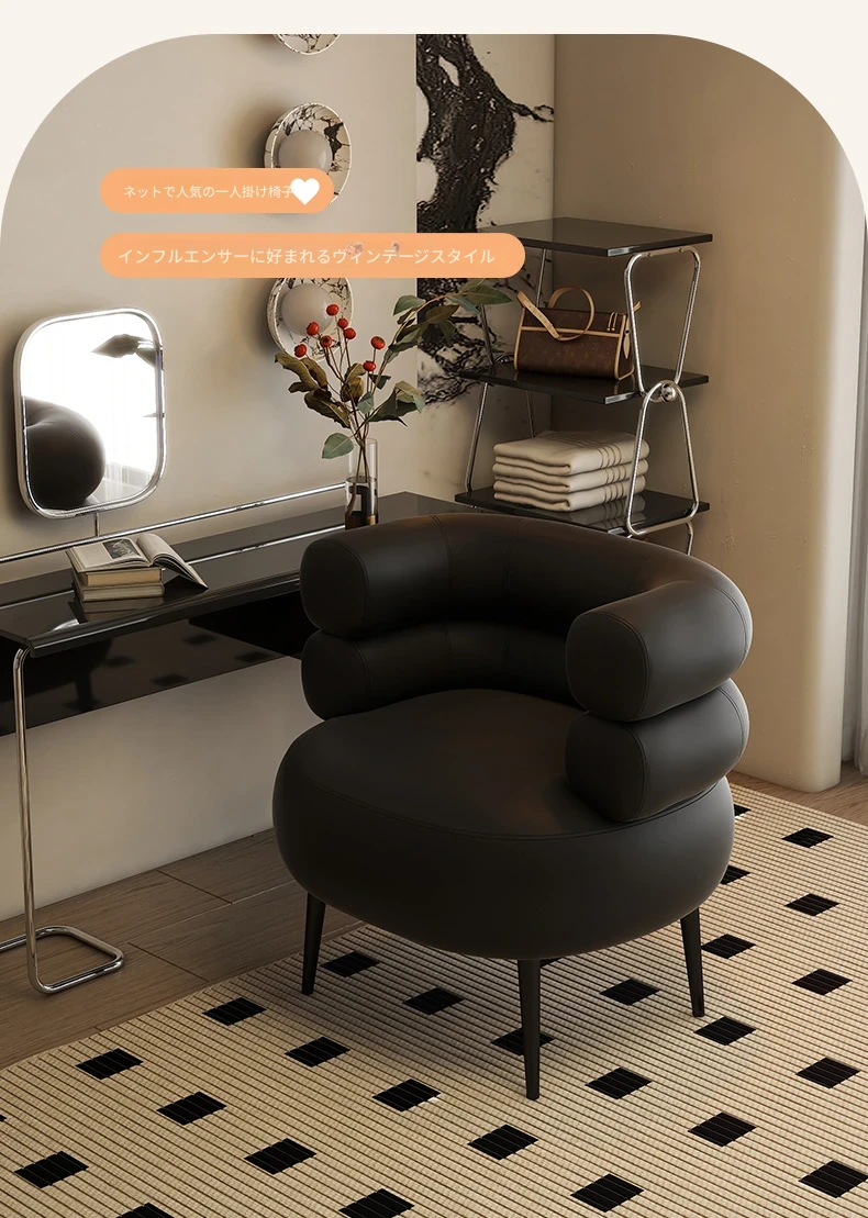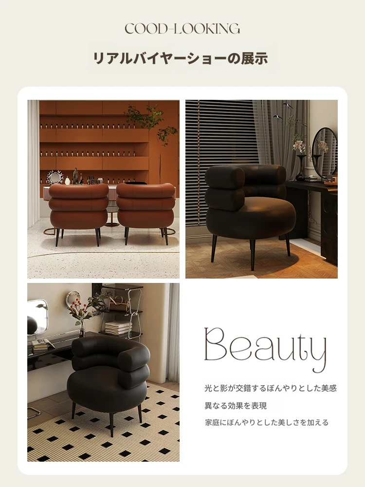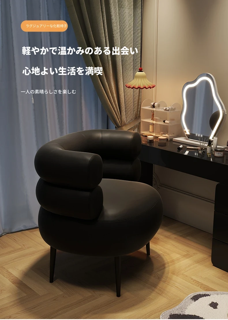 高級感溢れる!家用寝室にぴったりのシンプルデザイン化粧椅子。衣服の整理にも使える優雅なドレッサー用椅子。美甲やリラックスタイムにも最適な一人掛けソファ!