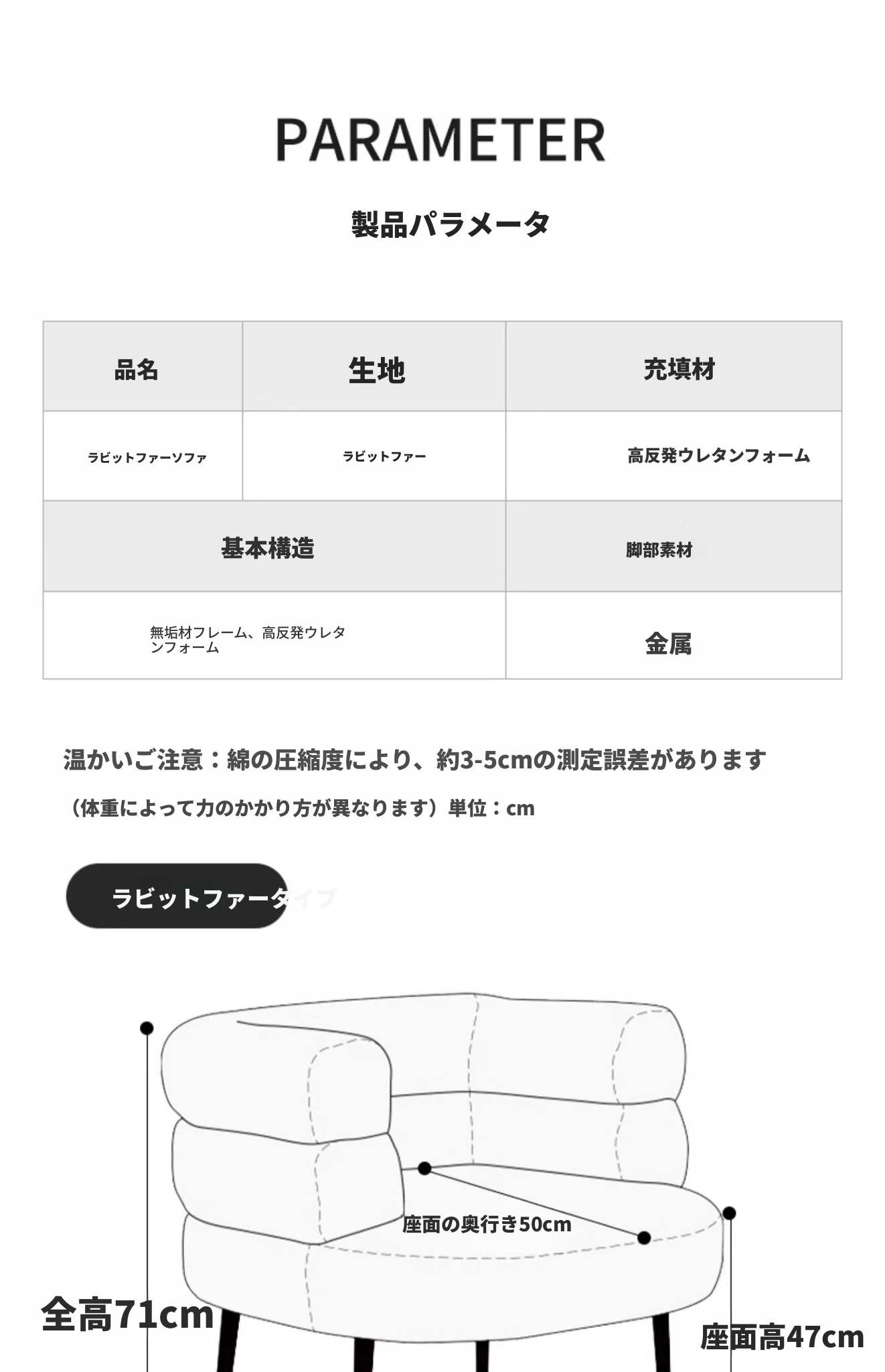 【ラムウール】クリームホワイト【高反発スポンジ/宅配便】