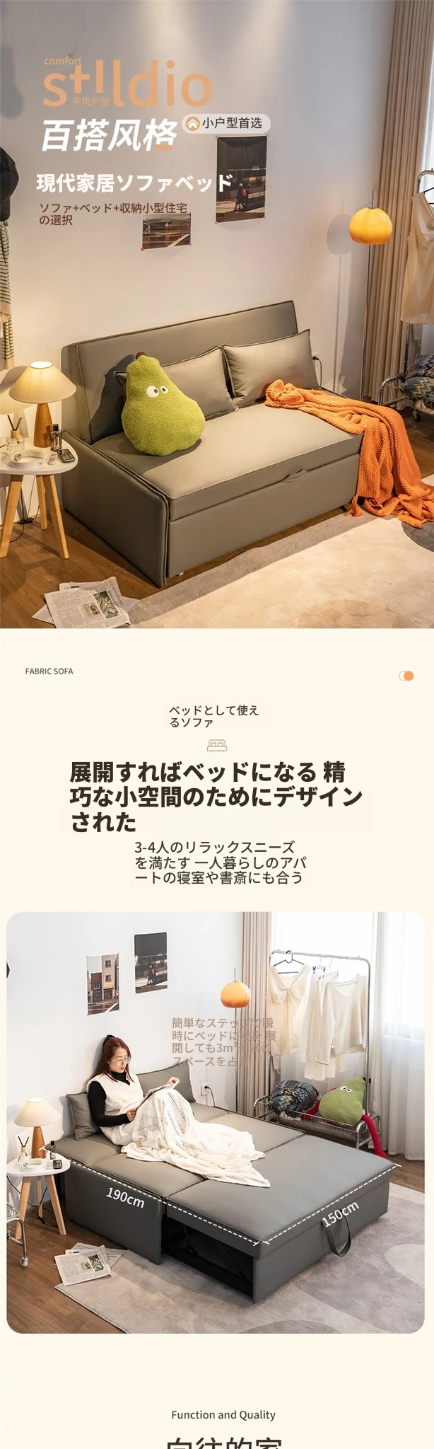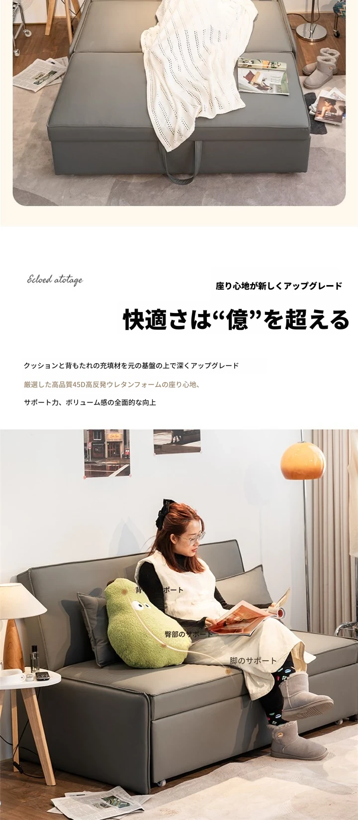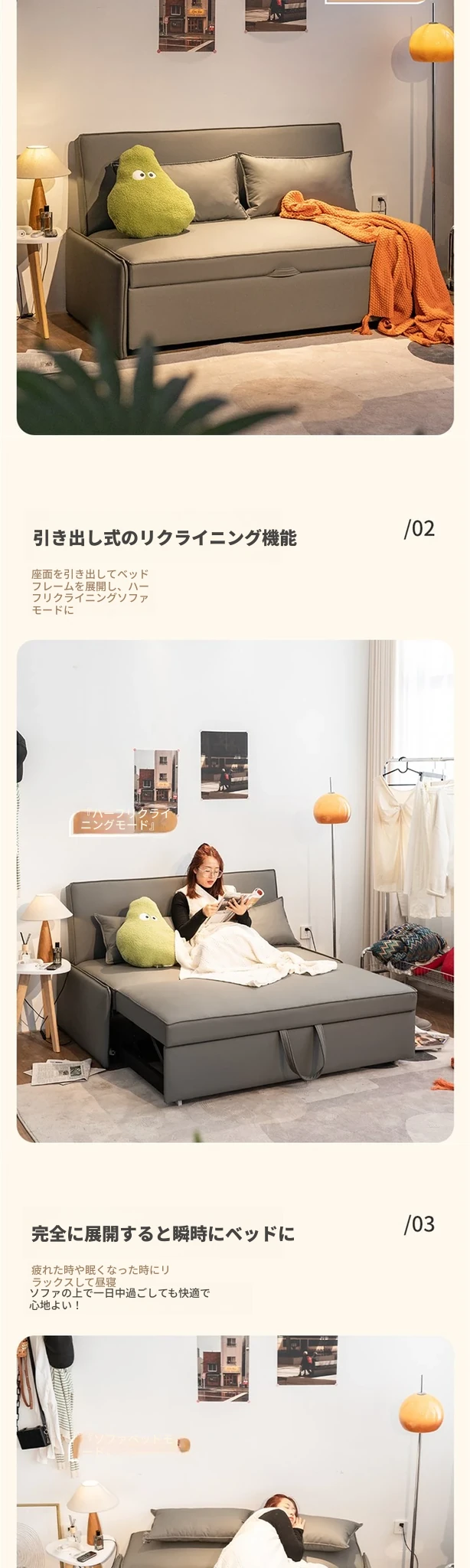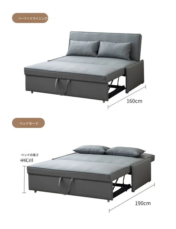 2392グレーソファベッド1.5メートル猫爪生地肘掛けなし(2つのクッション付き)