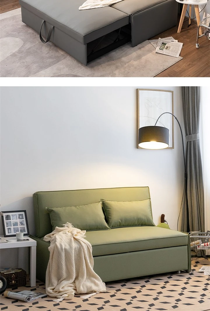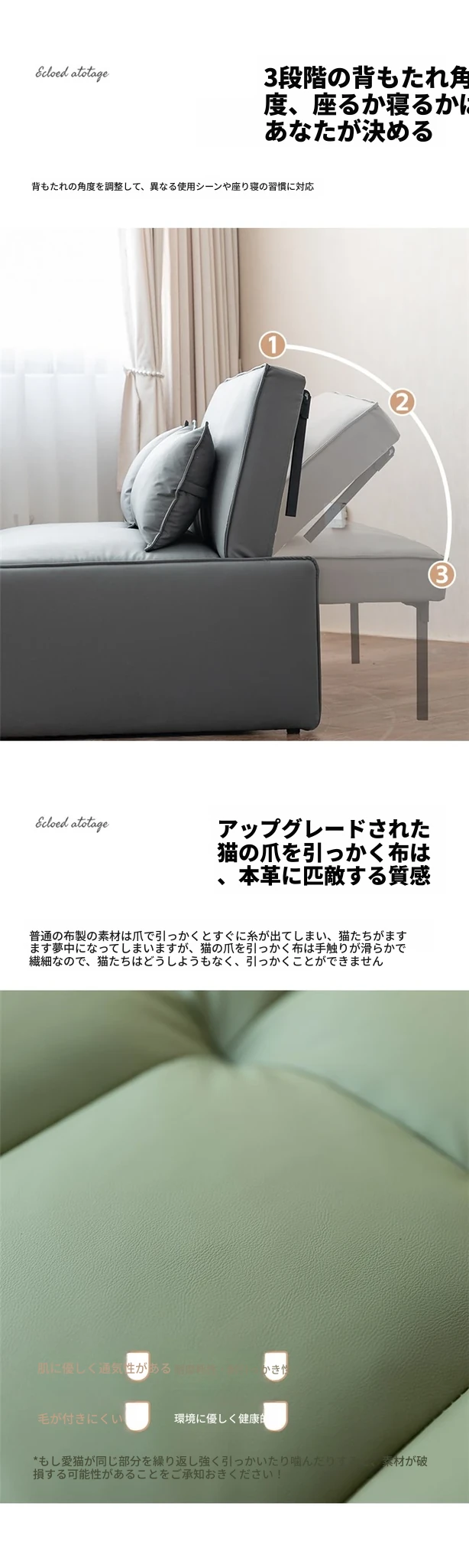 2392豆沙緑ソファベッド1.2メートル猫爪生地肘掛けなし(2つのクッション付き)