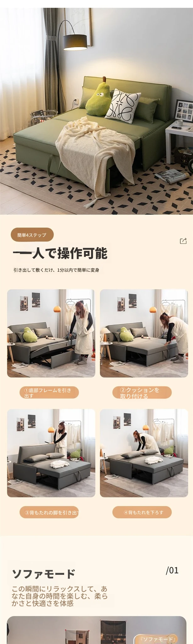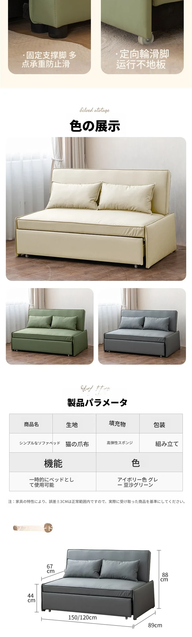 2385豆沙緑固定タイプ1.2メートル(ベッドとして展開できない2つのクッション付き)