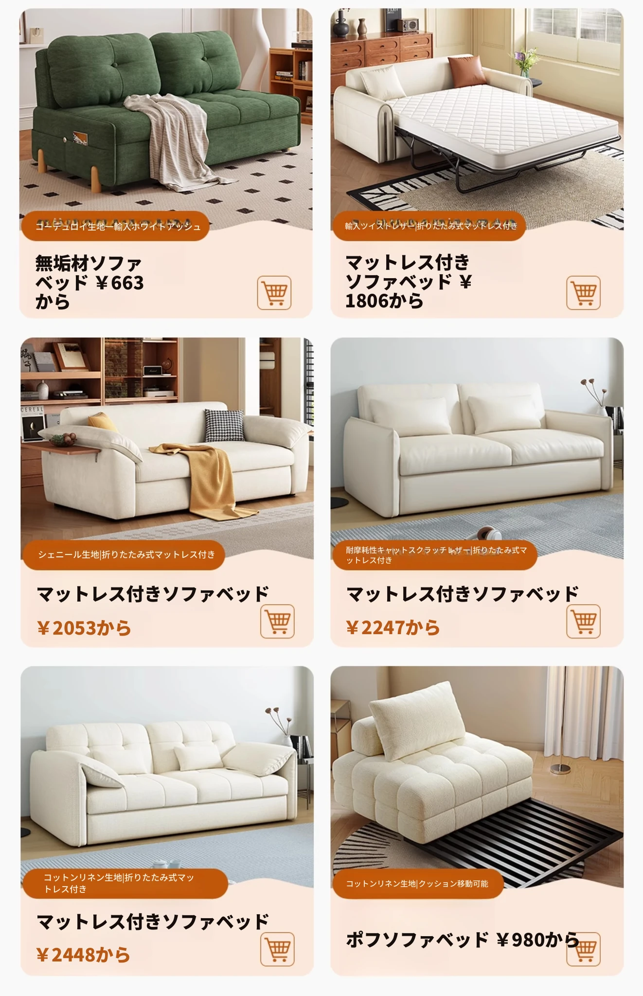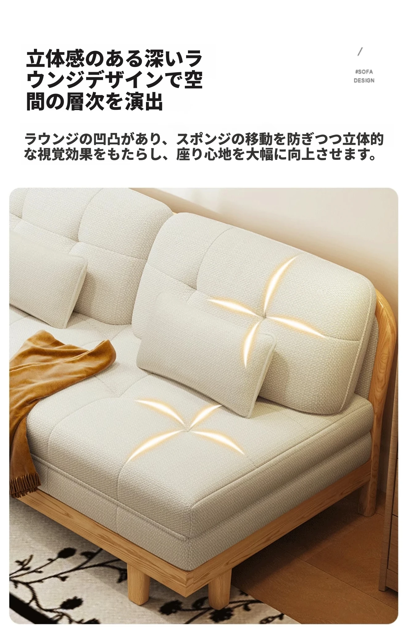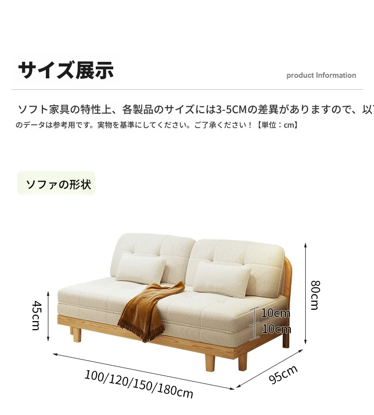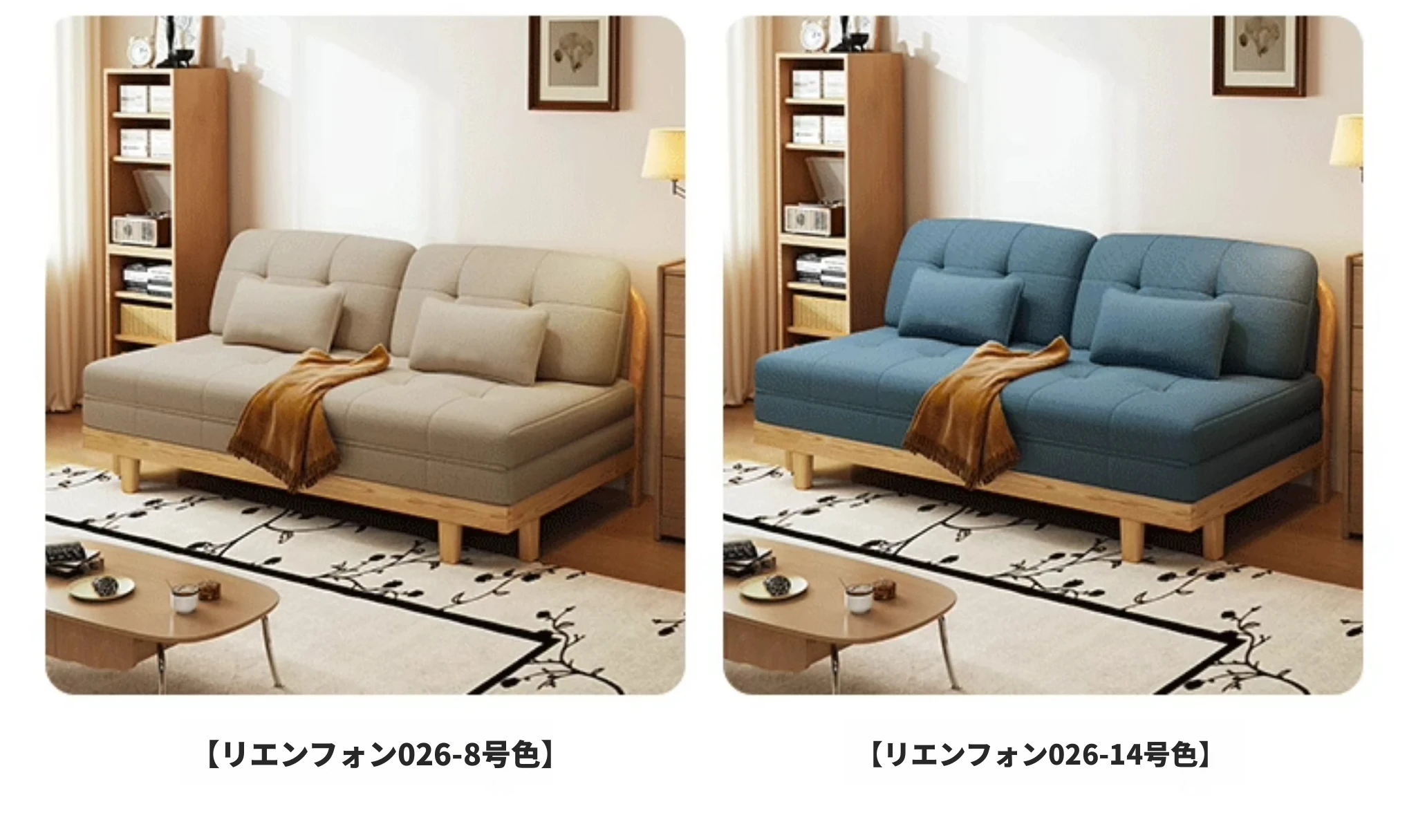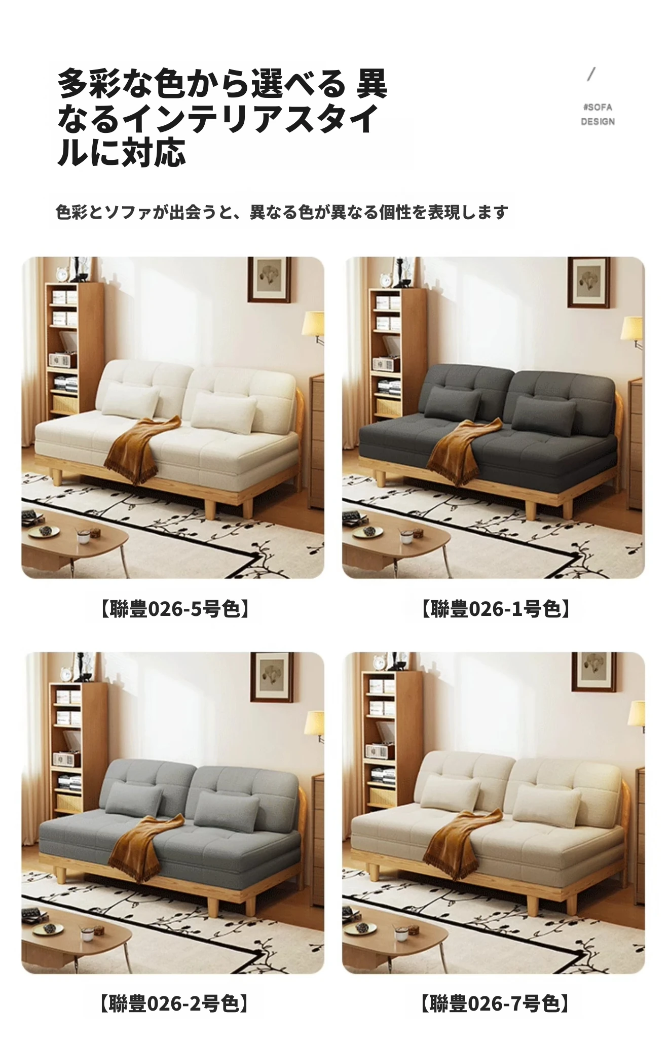 モダンでシンプルなクリームカラーの天然木製折りたたみソファベッド - 小さなバルコニーや書斎、寝室にぴったり!座ることも寝ることもできる多機能デザインで、空間を有効活用しながら快適さを提供します。