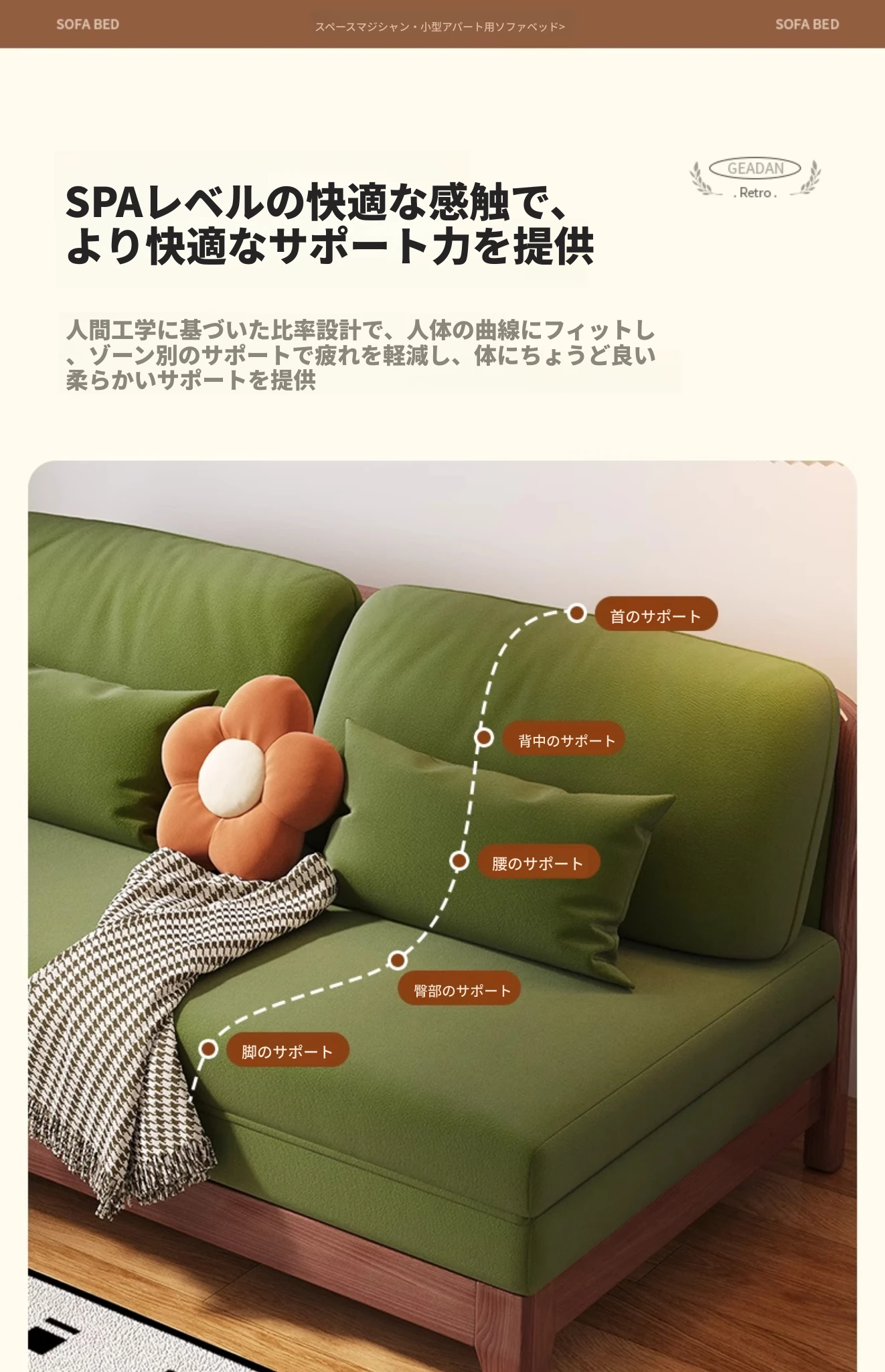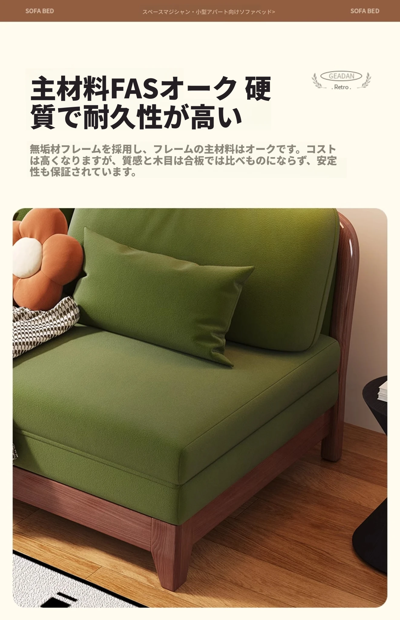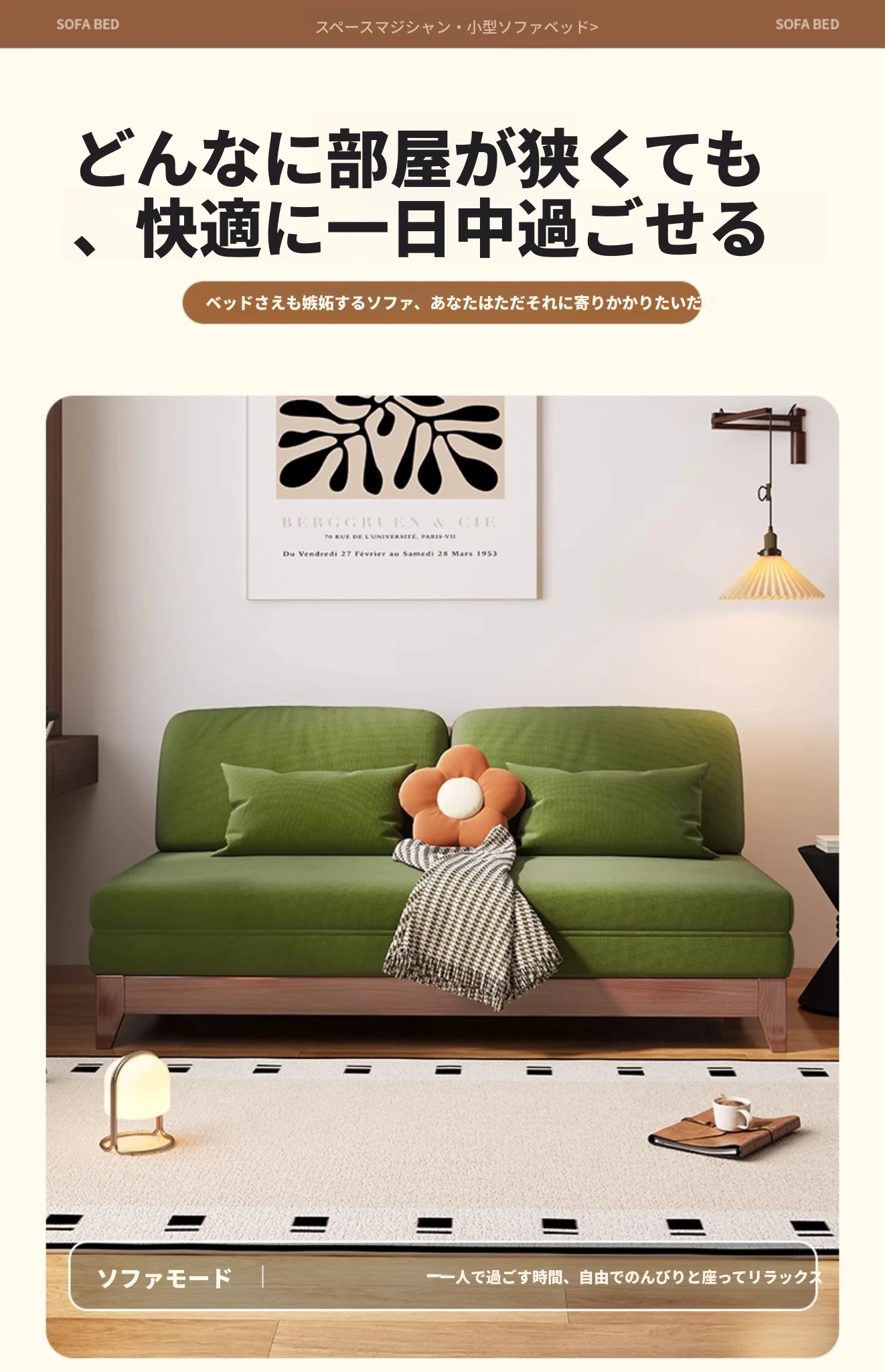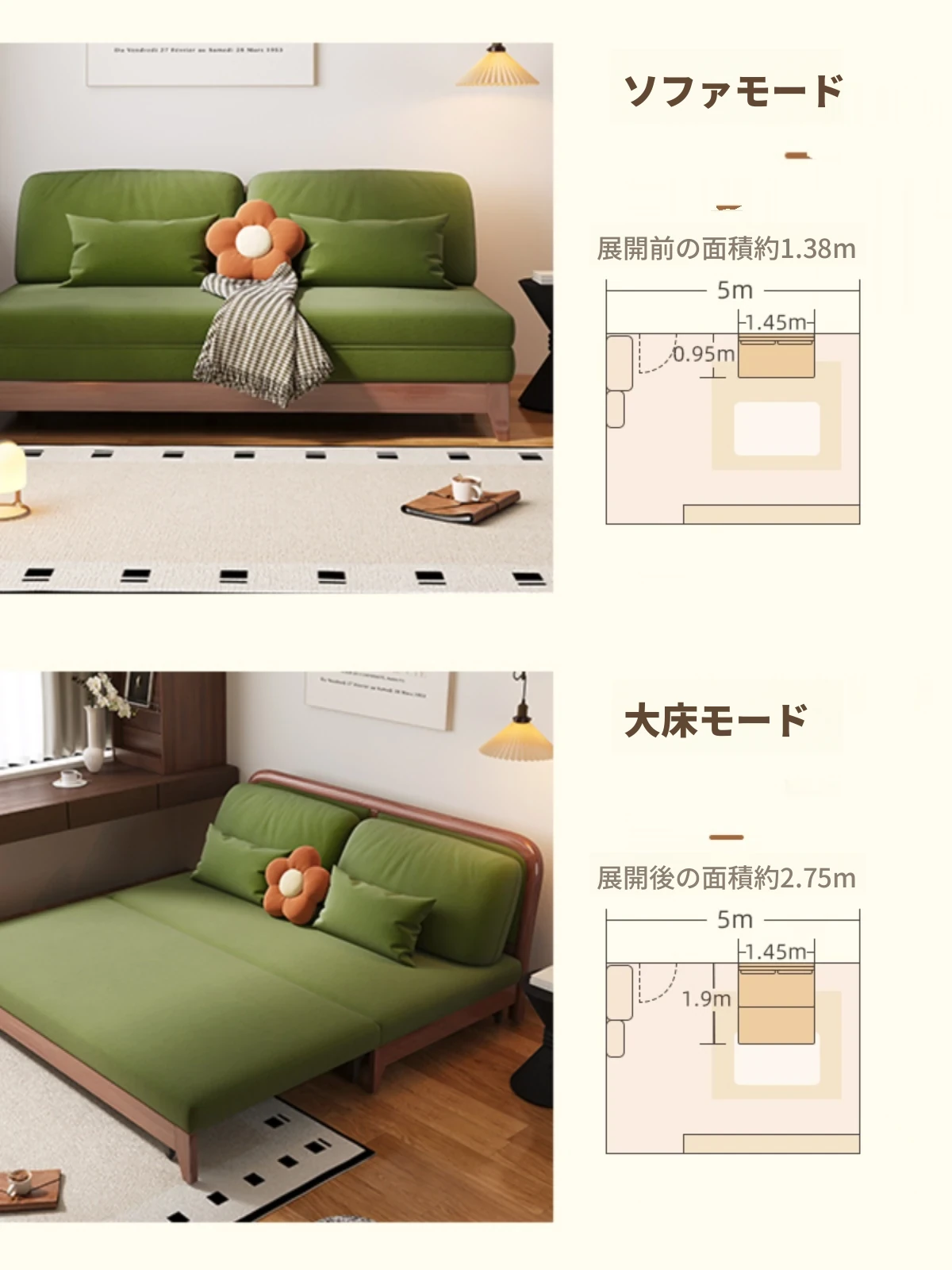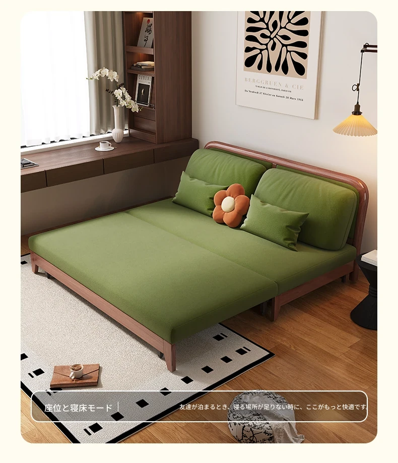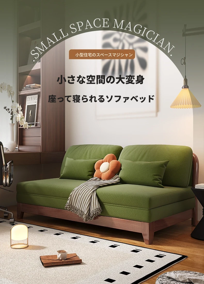 モダンミニマリスト全木製ソファベッド|折りたたみ式・二用途|リビングや小さな部屋にも最適な新デザイン|アームレストなしでスッキリとした印象を演出!