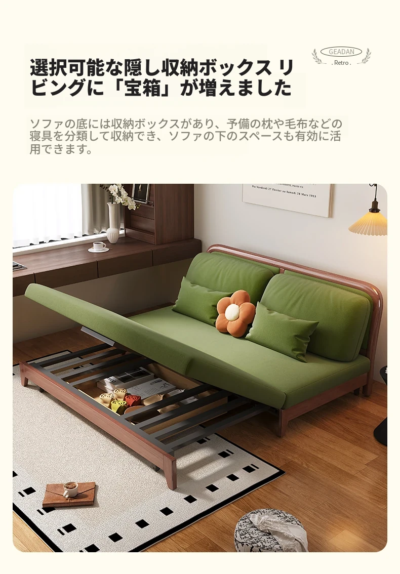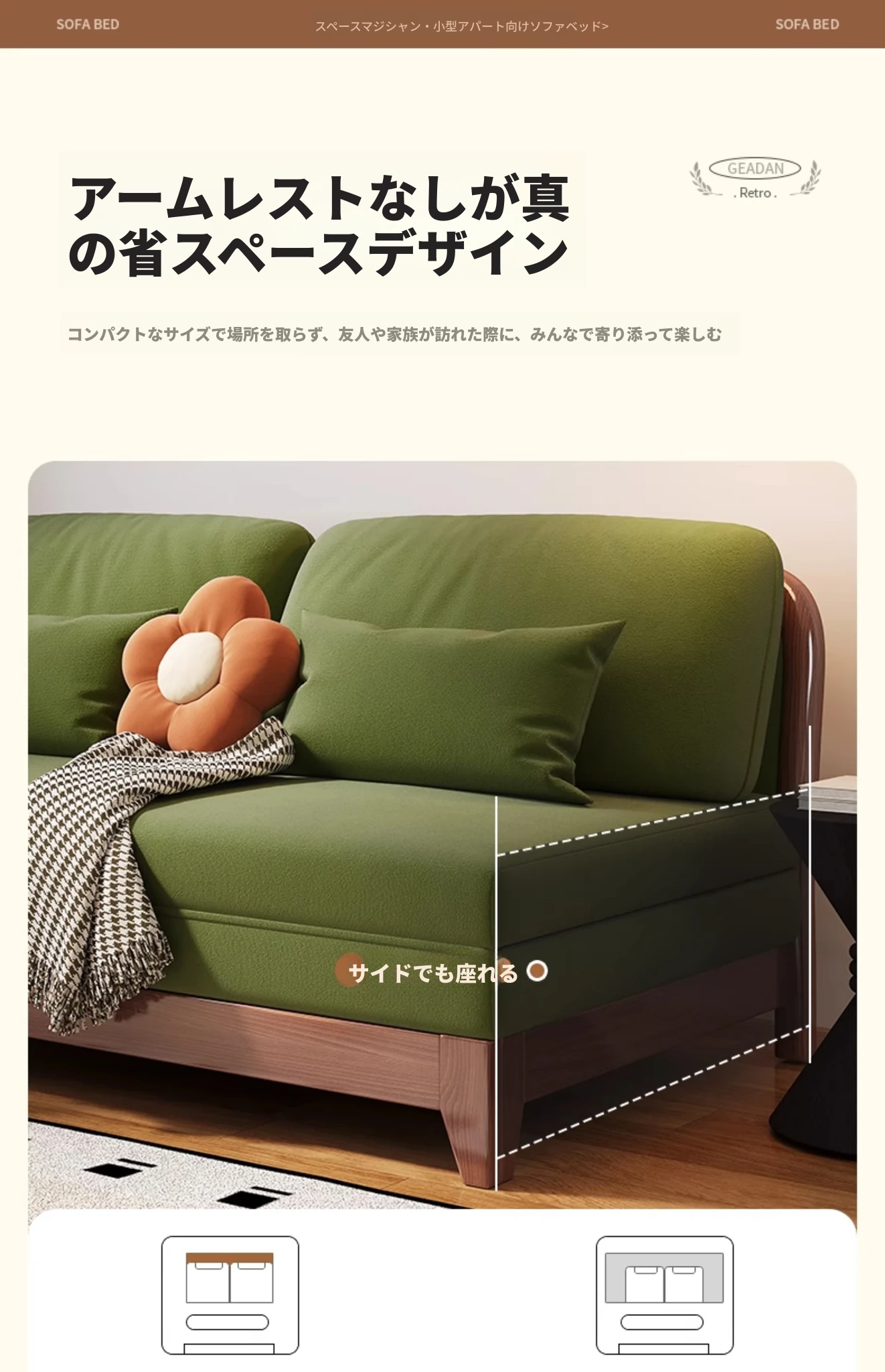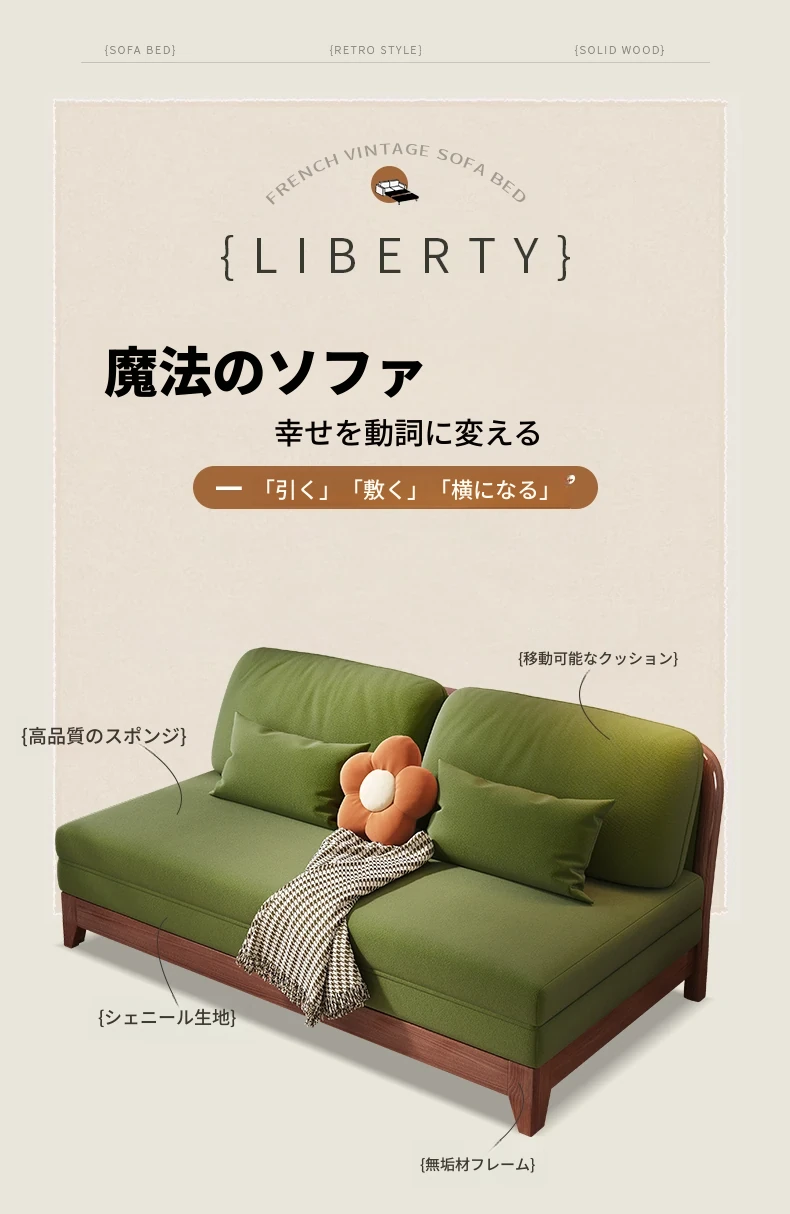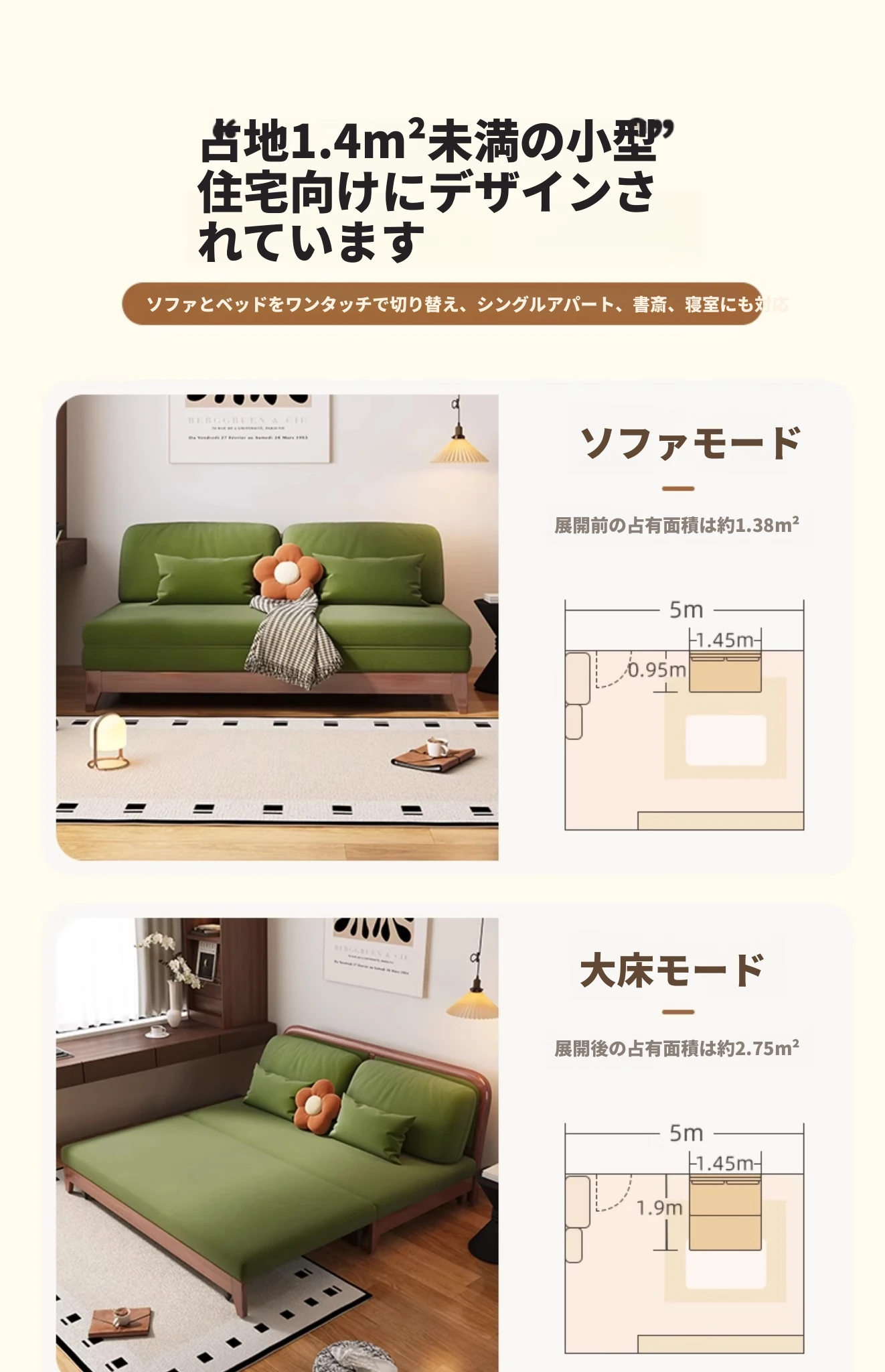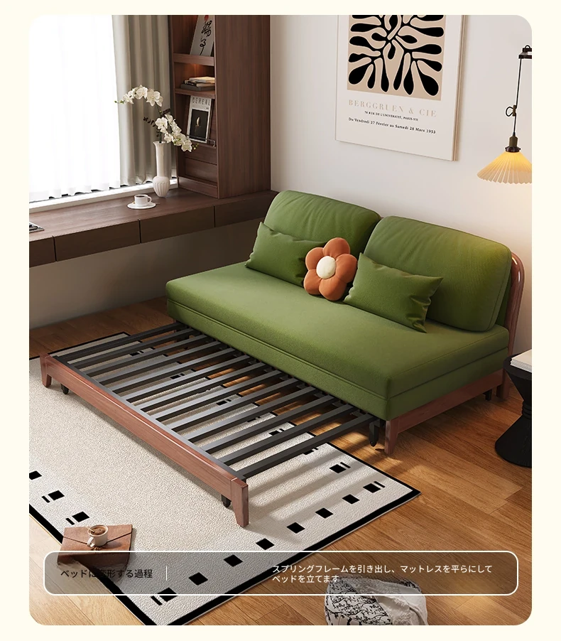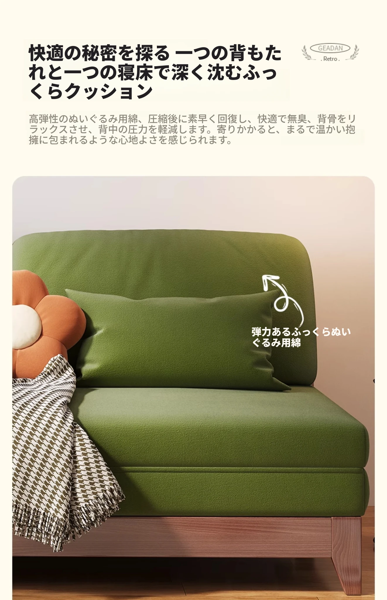 モダンミニマリスト全木製ソファベッド|折りたたみ式・二用途|リビングや小さな部屋にも最適な新デザイン|アームレストなしでスッキリとした印象を演出!