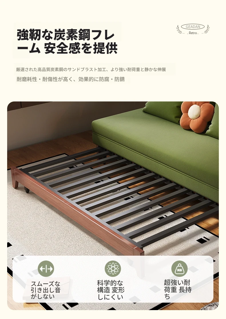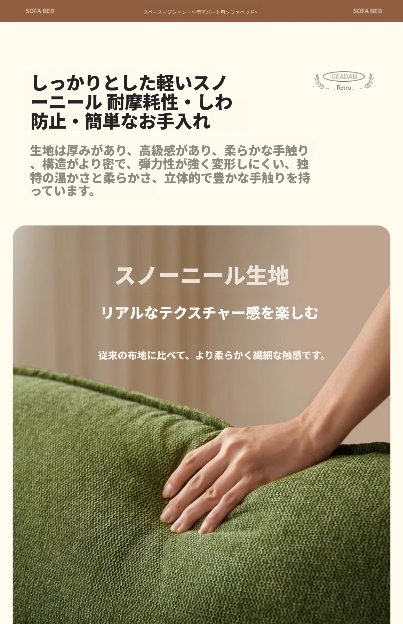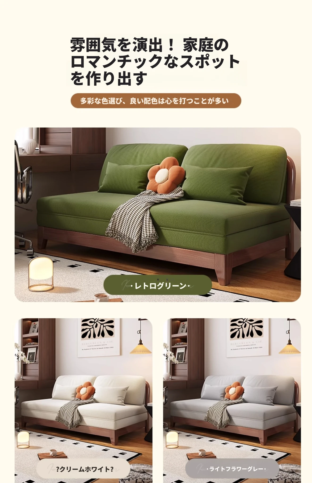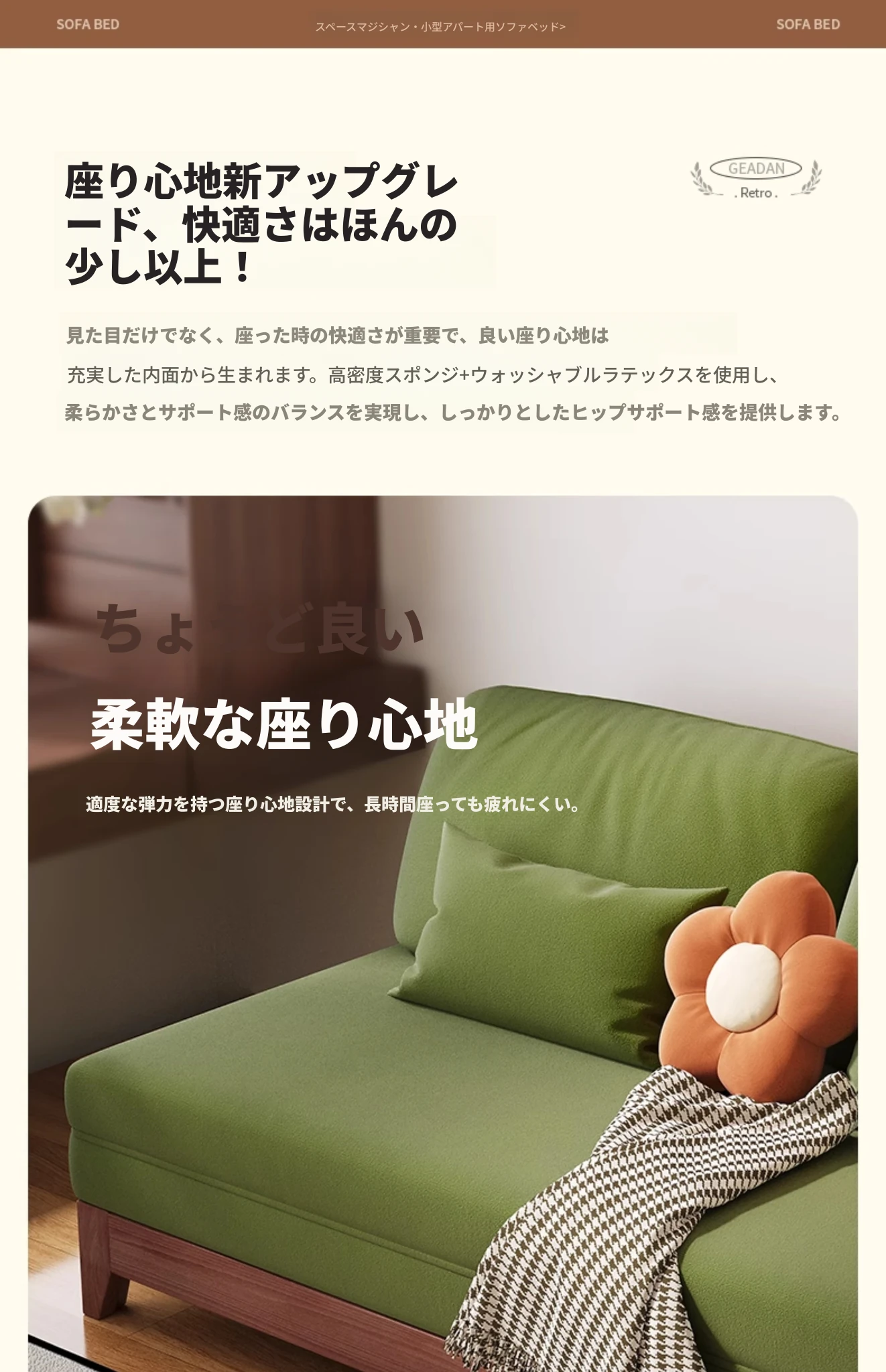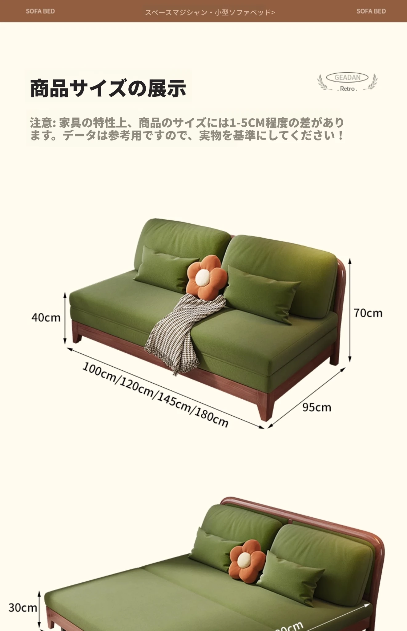 モダンミニマリスト全木製ソファベッド|折りたたみ式・二用途|リビングや小さな部屋にも最適な新デザイン|アームレストなしでスッキリとした印象を演出!