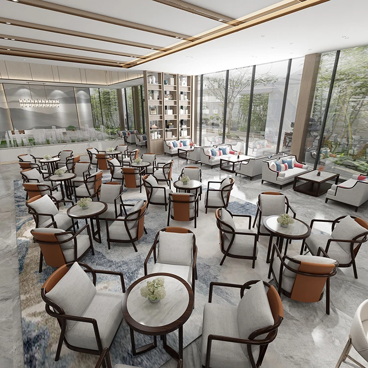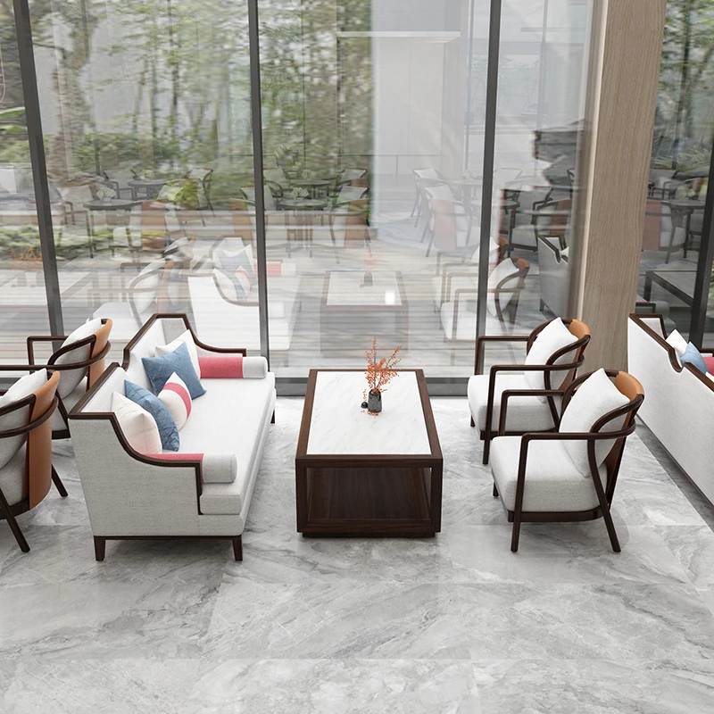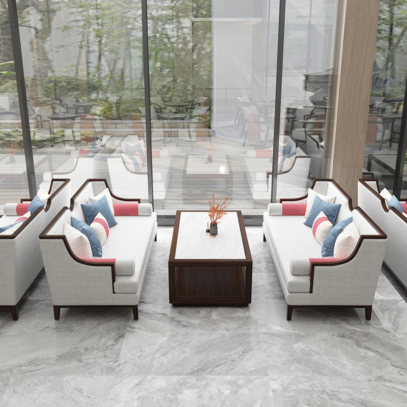 新中式デザインの実木製ソファセット|現代的な販売オフィスやホテル、クラブに最適な双人・三人用レセプションベンチ|快適さとスタイルを兼ね備えた高品質家具