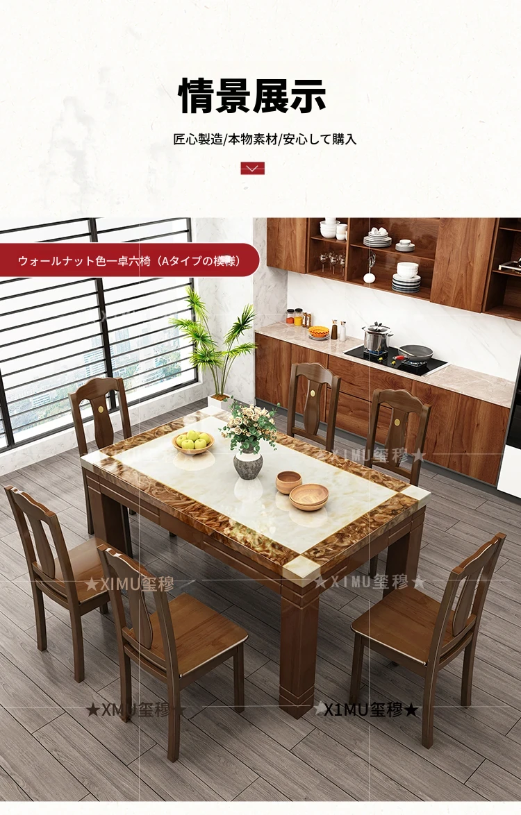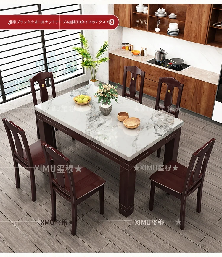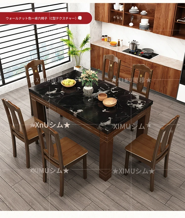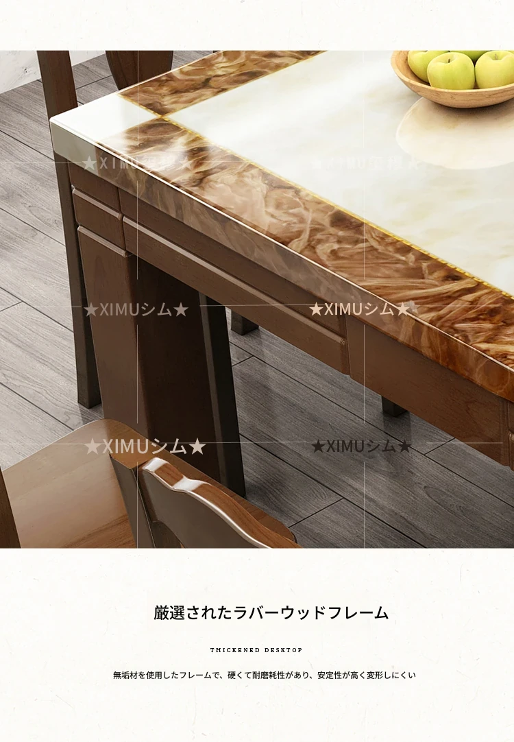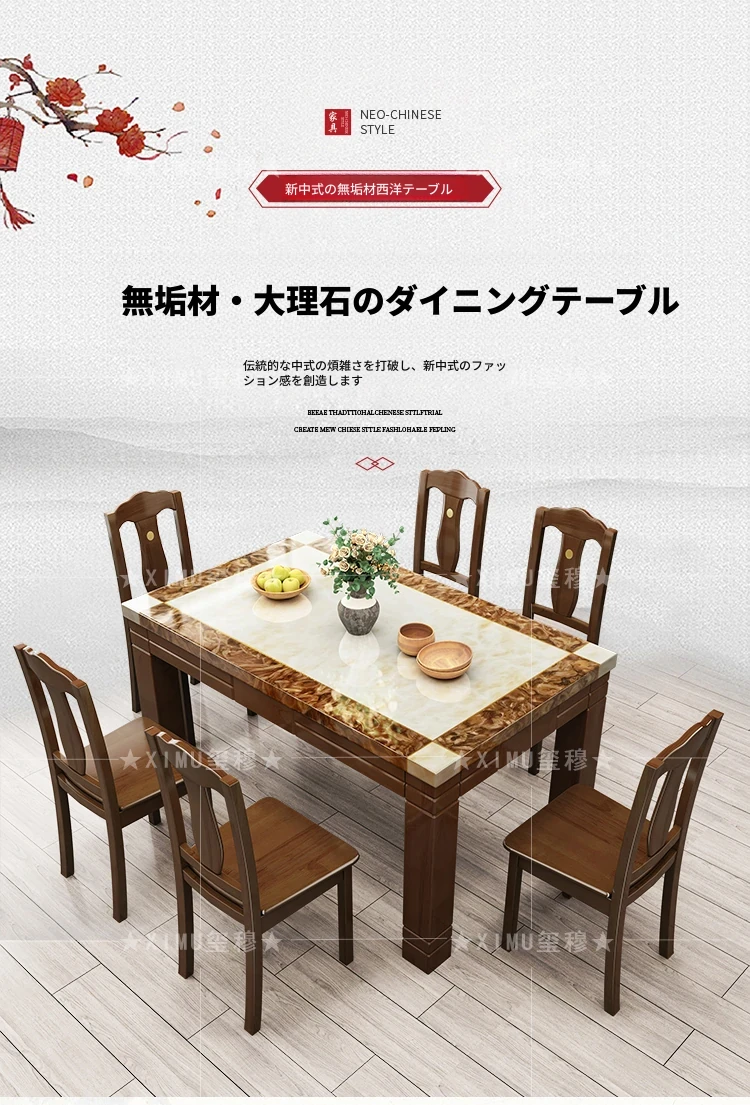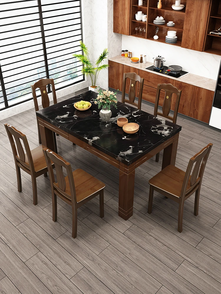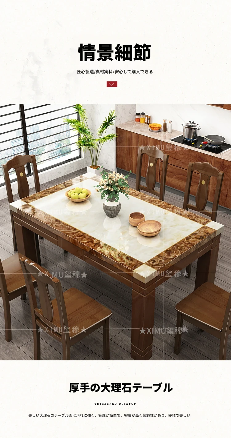 モダンでシンプルな大理石長方形テーブルセット|実木製ダイニングテーブル&チェアコンビ|小さな家にもぴったりの食卓で、家族や友人との楽しいひとときを演出!