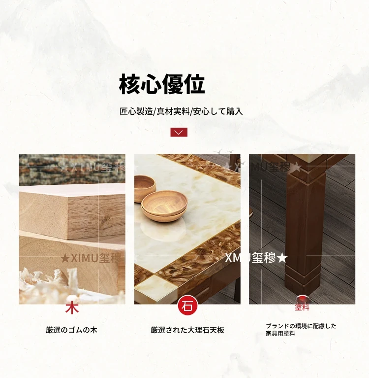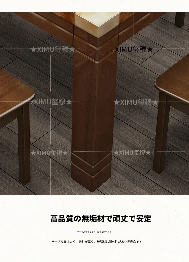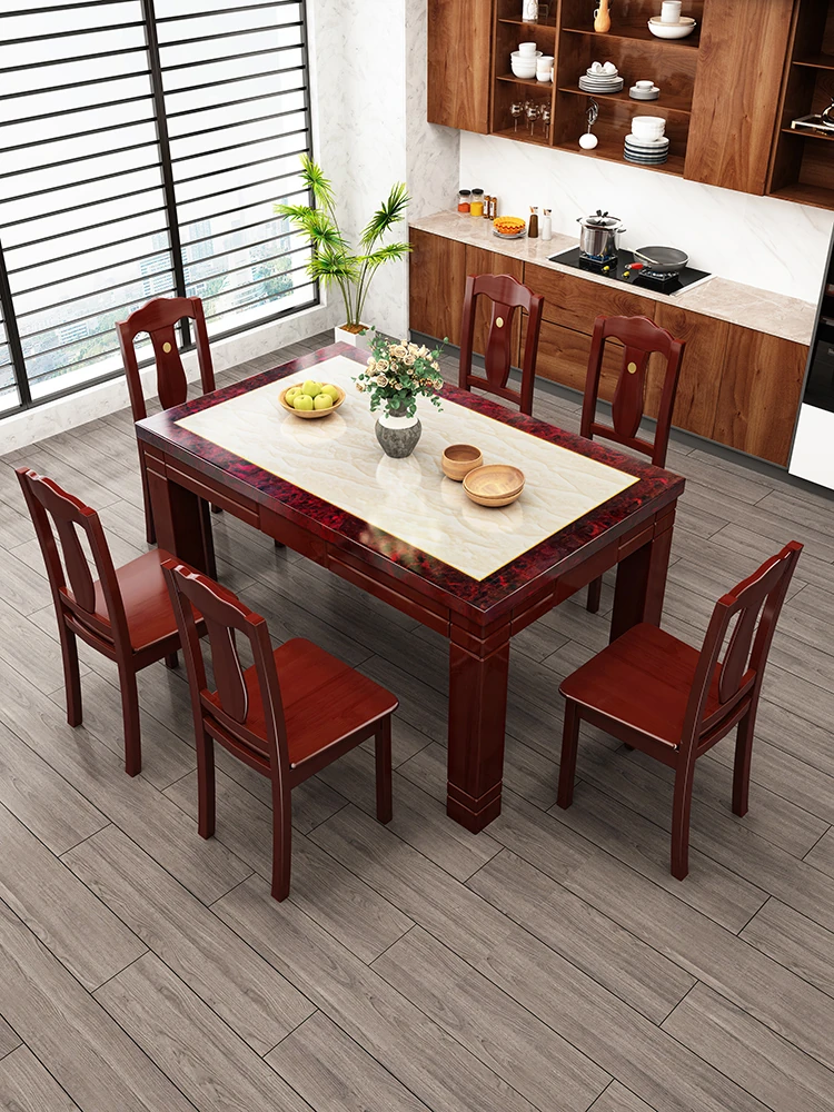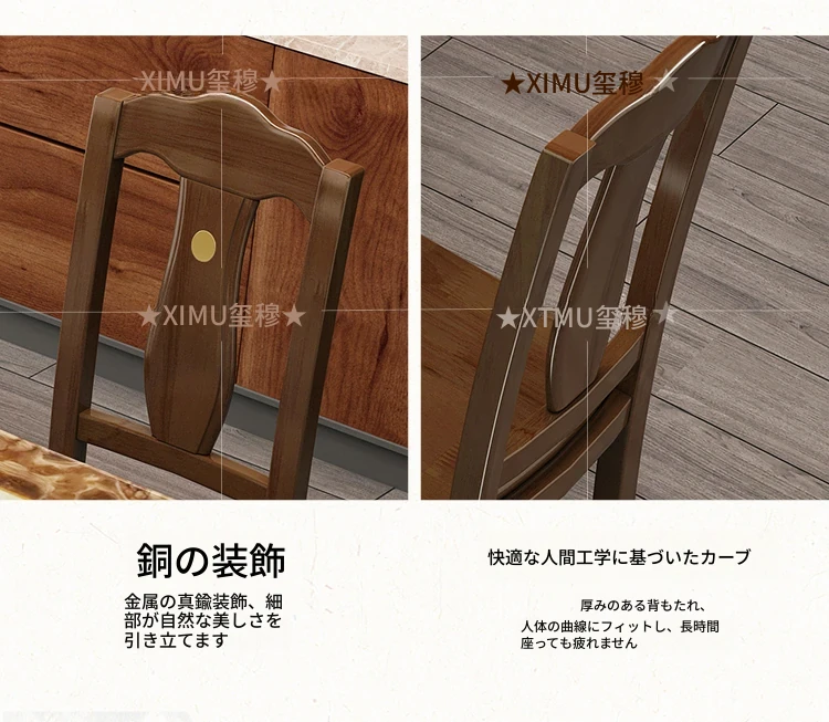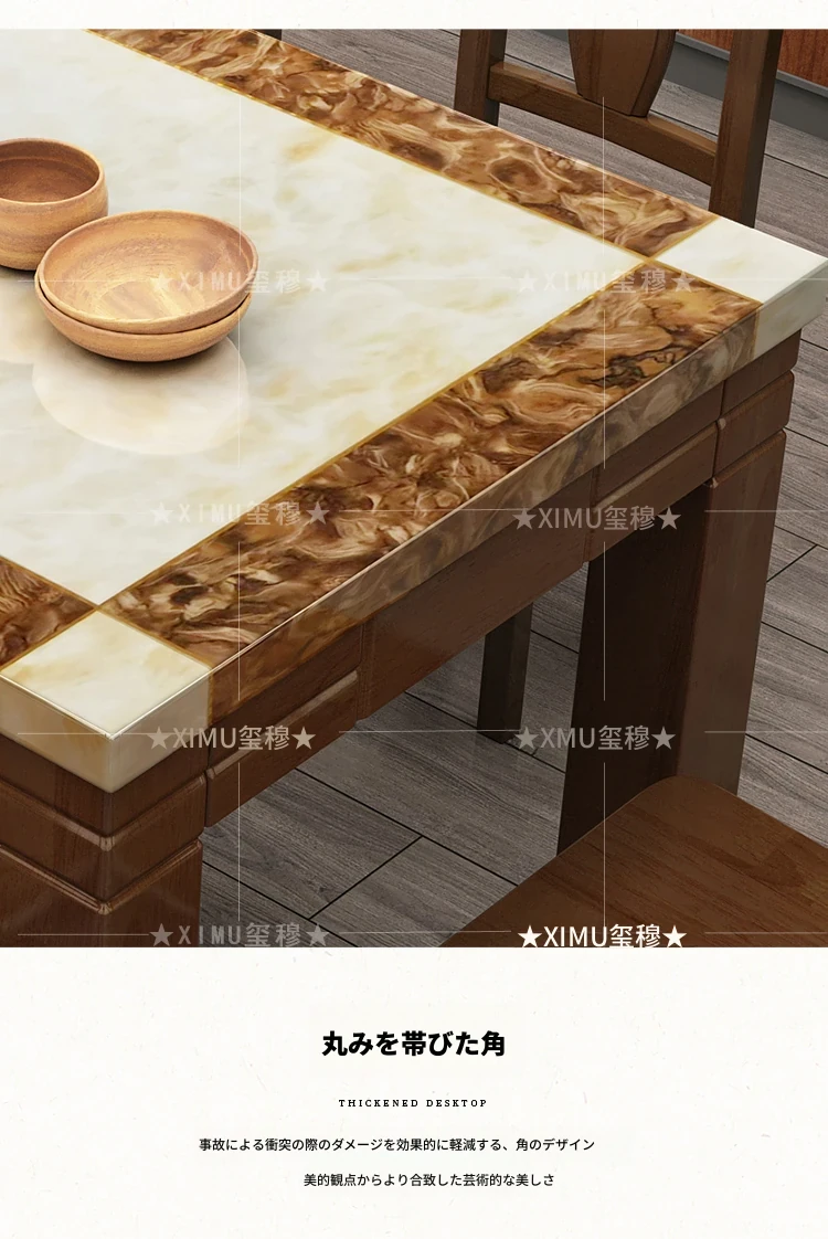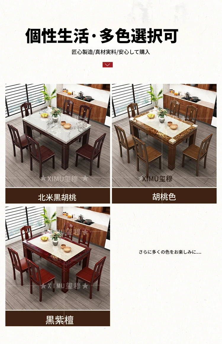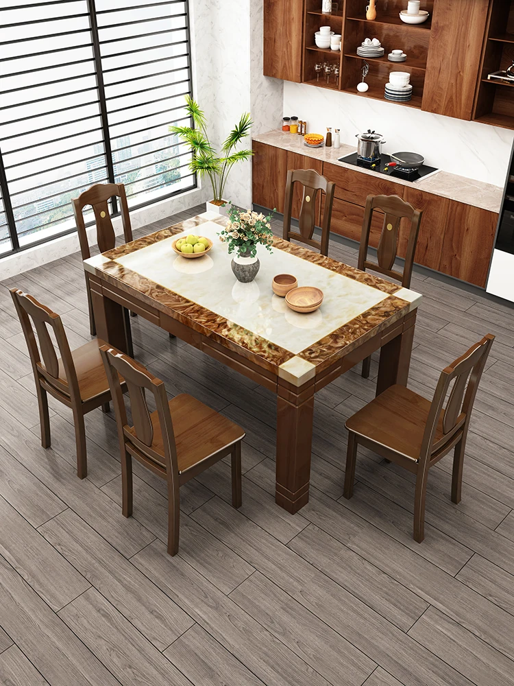 モダンでシンプルな大理石長方形テーブルセット|実木製ダイニングテーブル&チェアコンビ|小さな家にもぴったりの食卓で、家族や友人との楽しいひとときを演出!