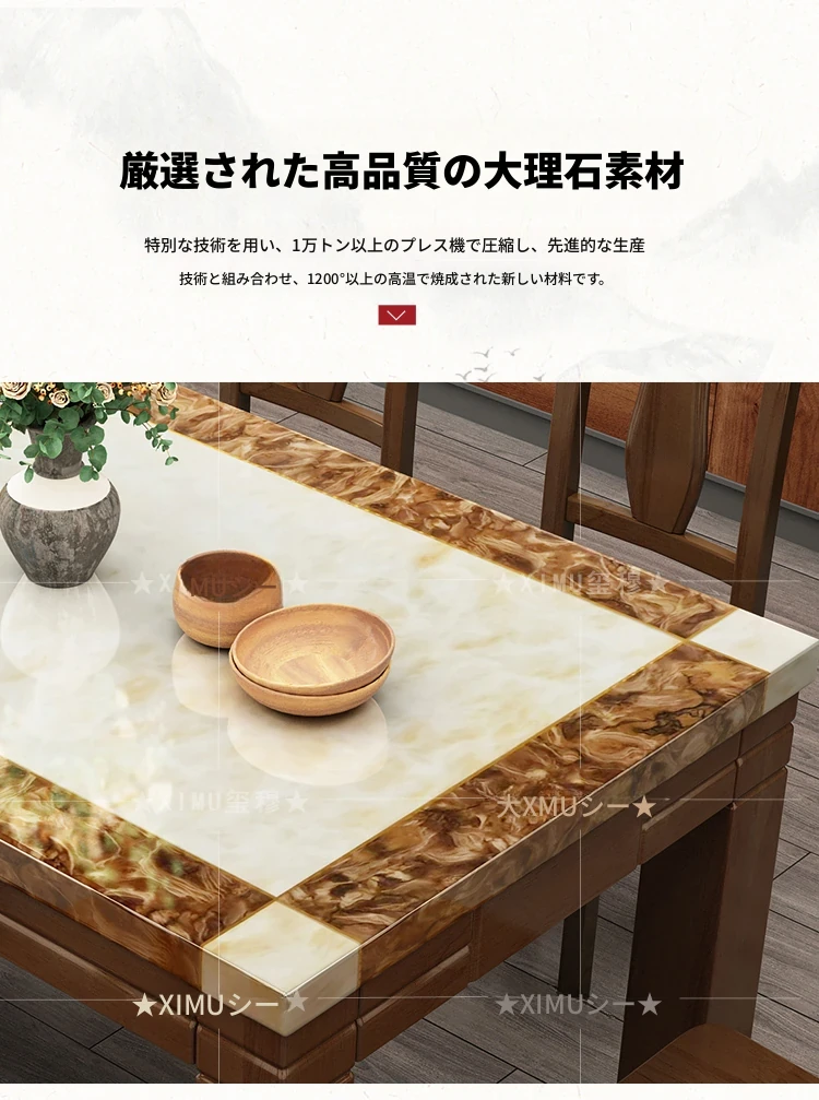大理石1.2メートルダイニングテーブル+6椅子