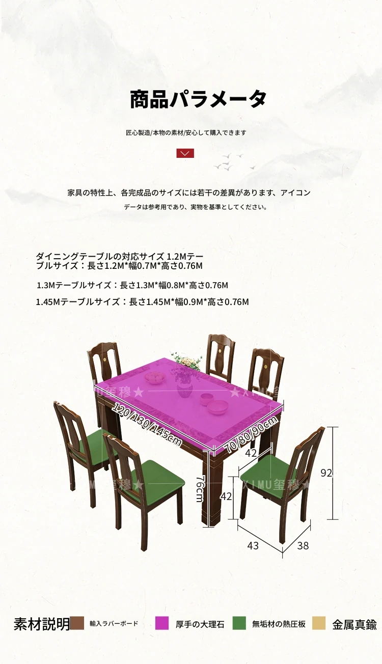 大理石1.3メートルダイニングテーブル+6椅子